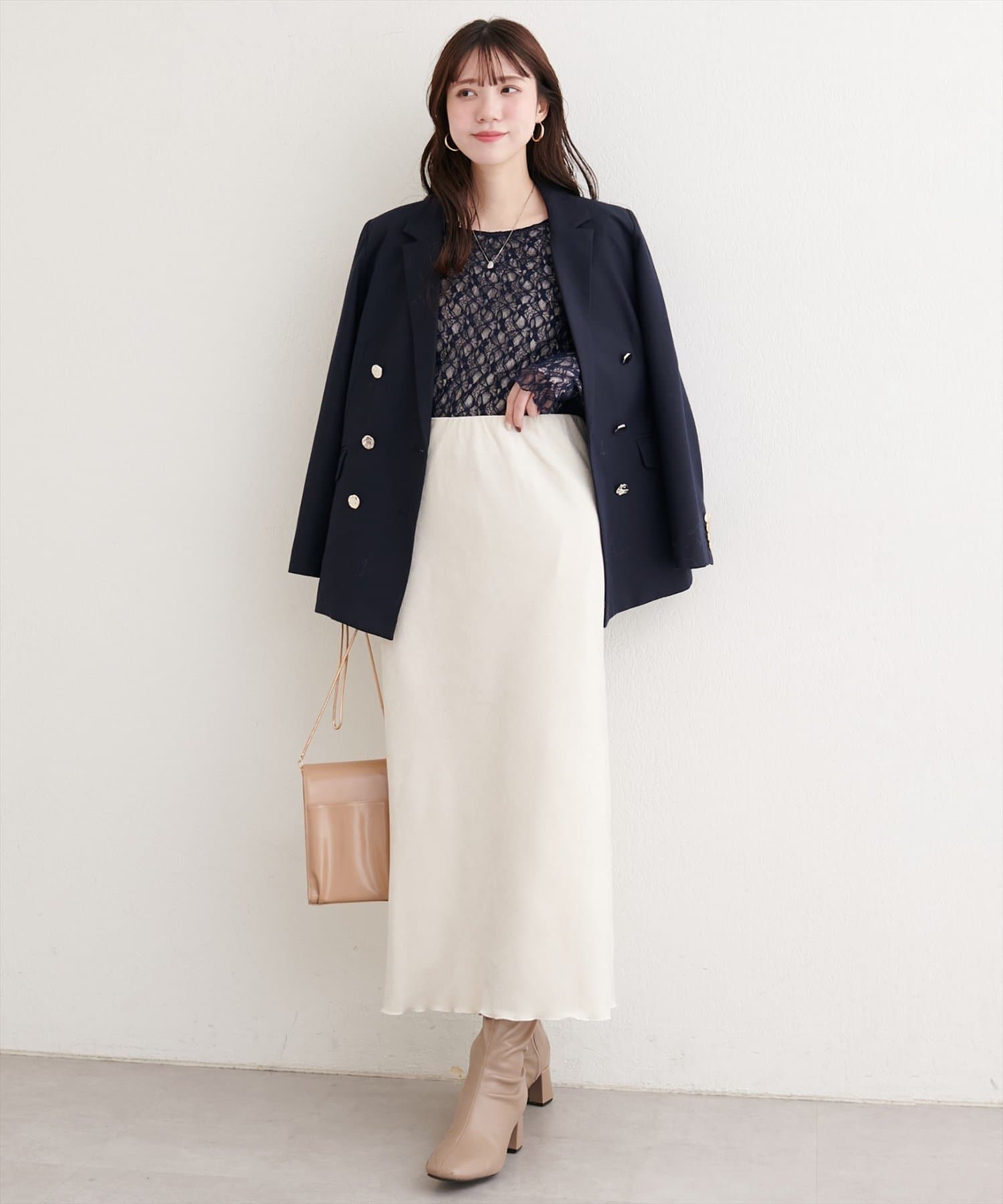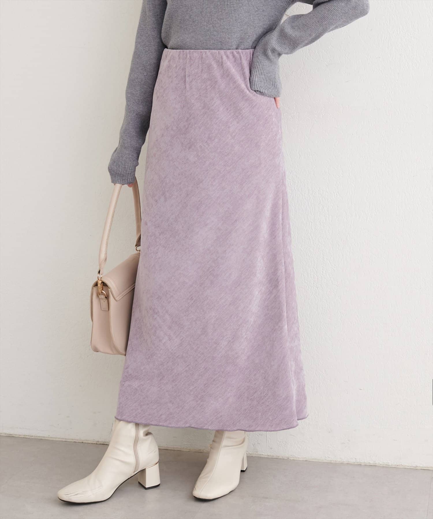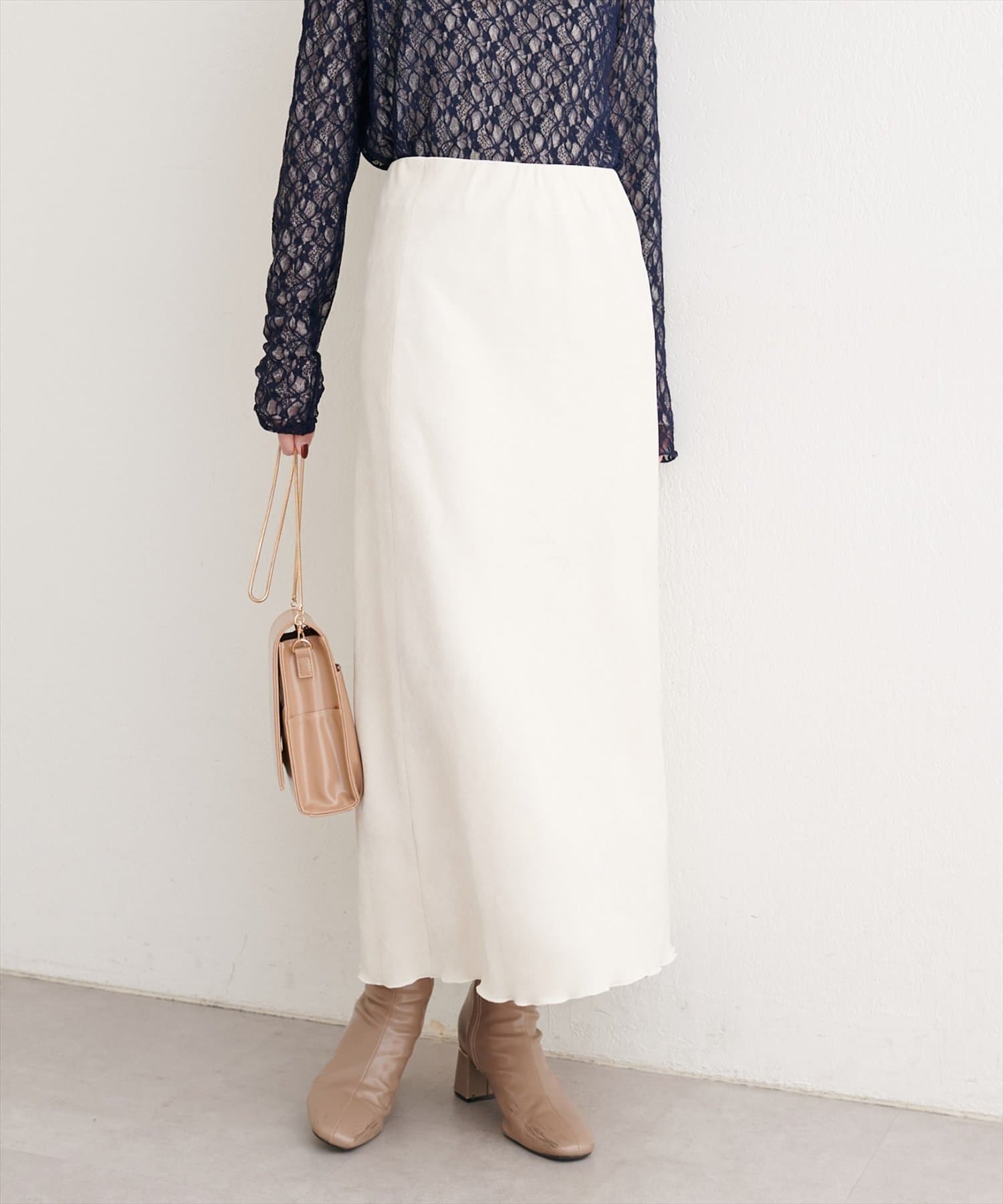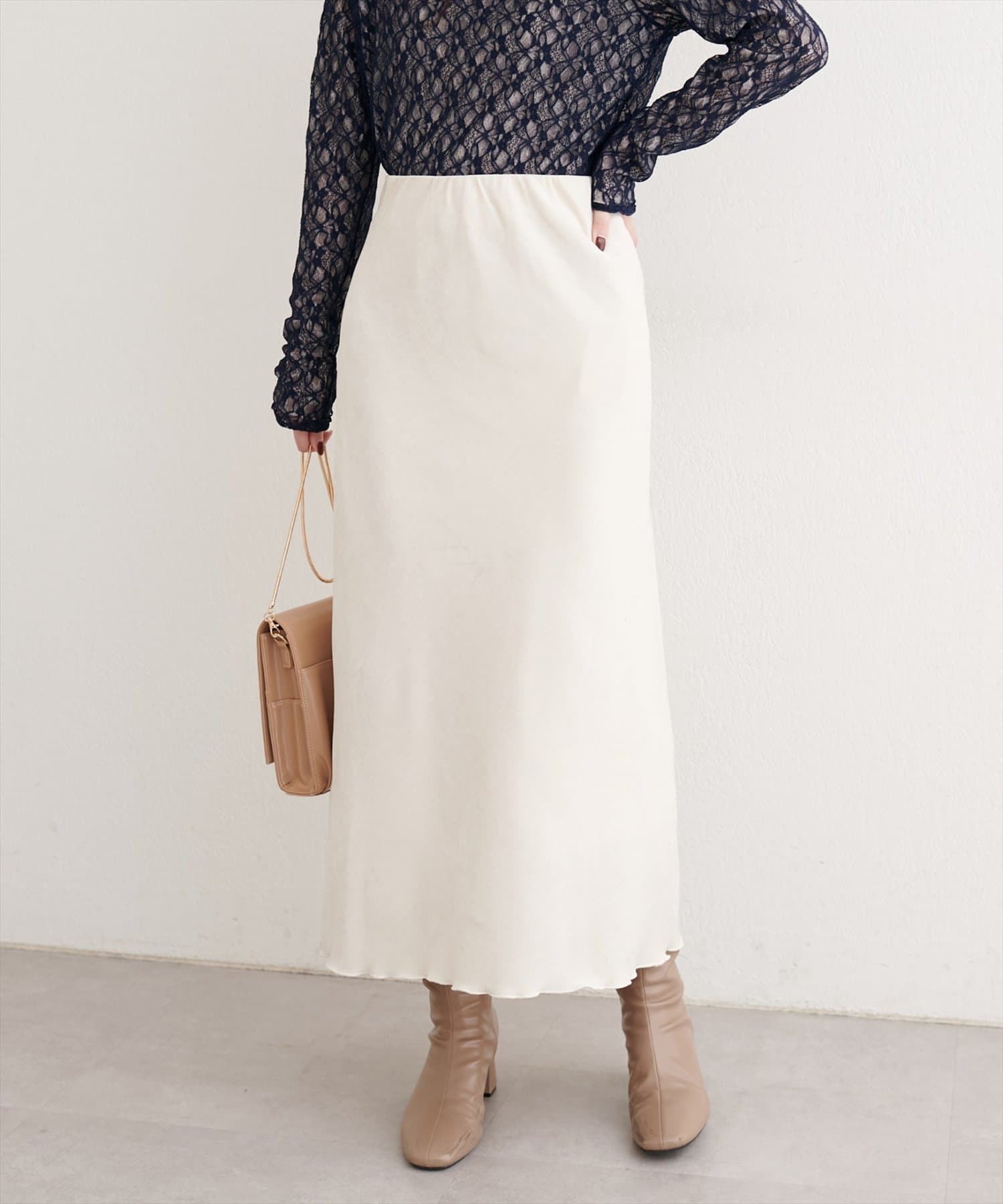 緩やかなカーブを描くAラインシルエットが、女性らしい雰囲気を演出。
