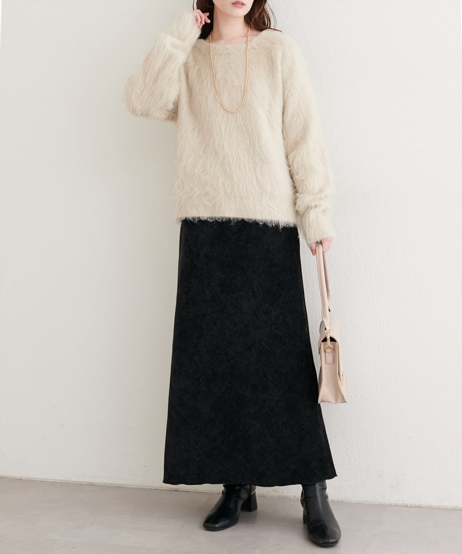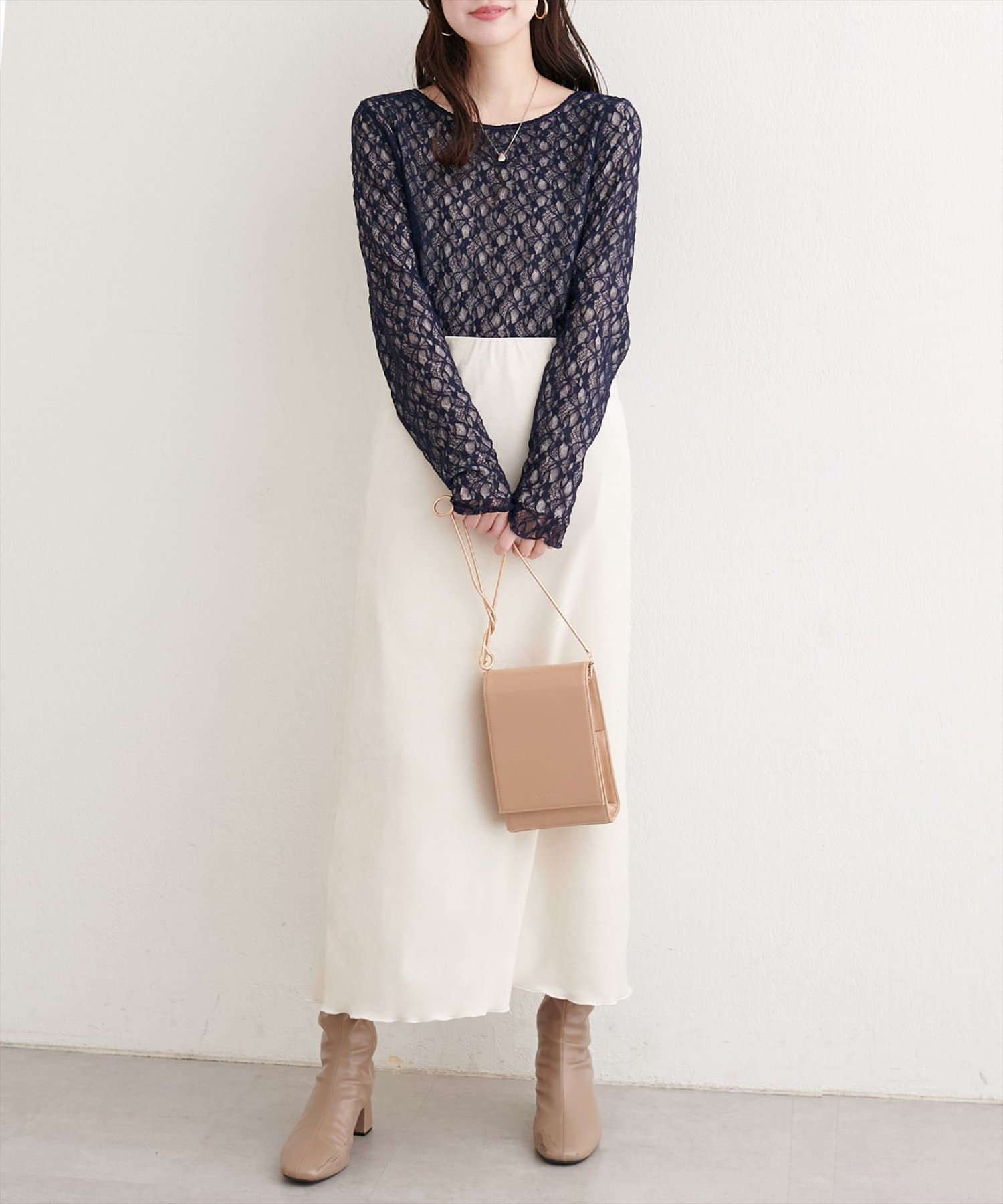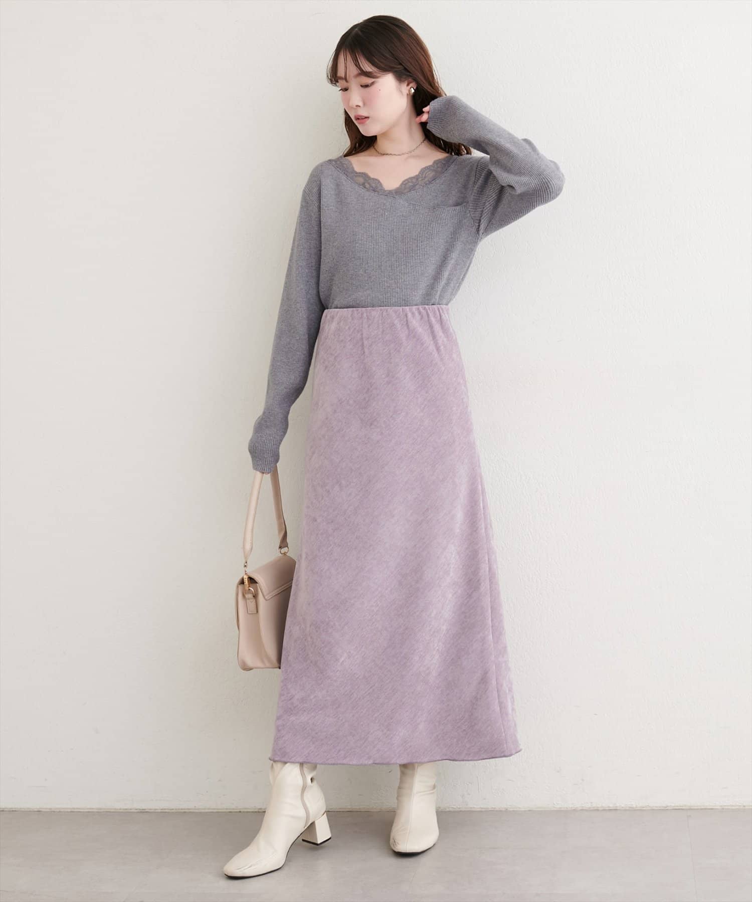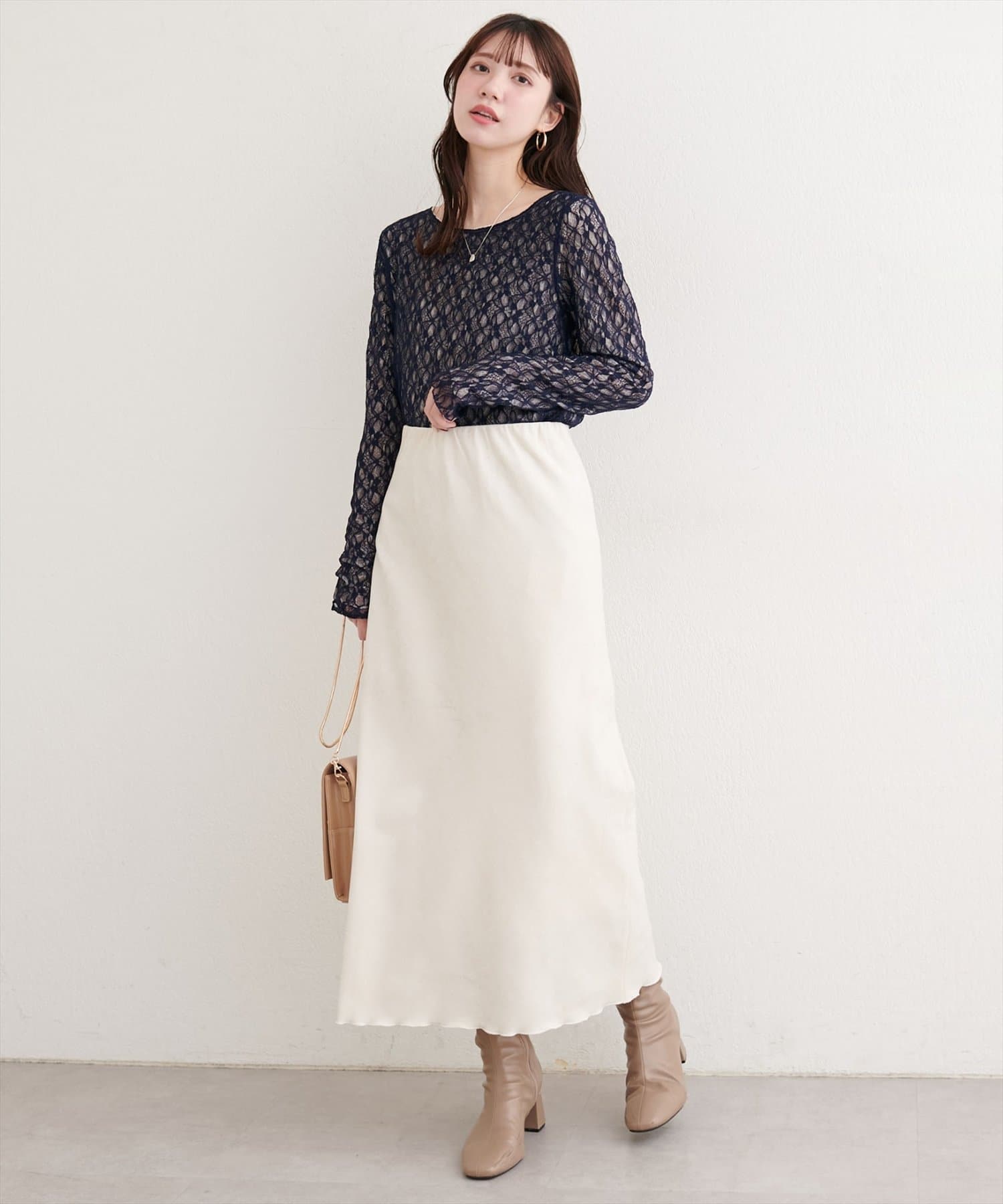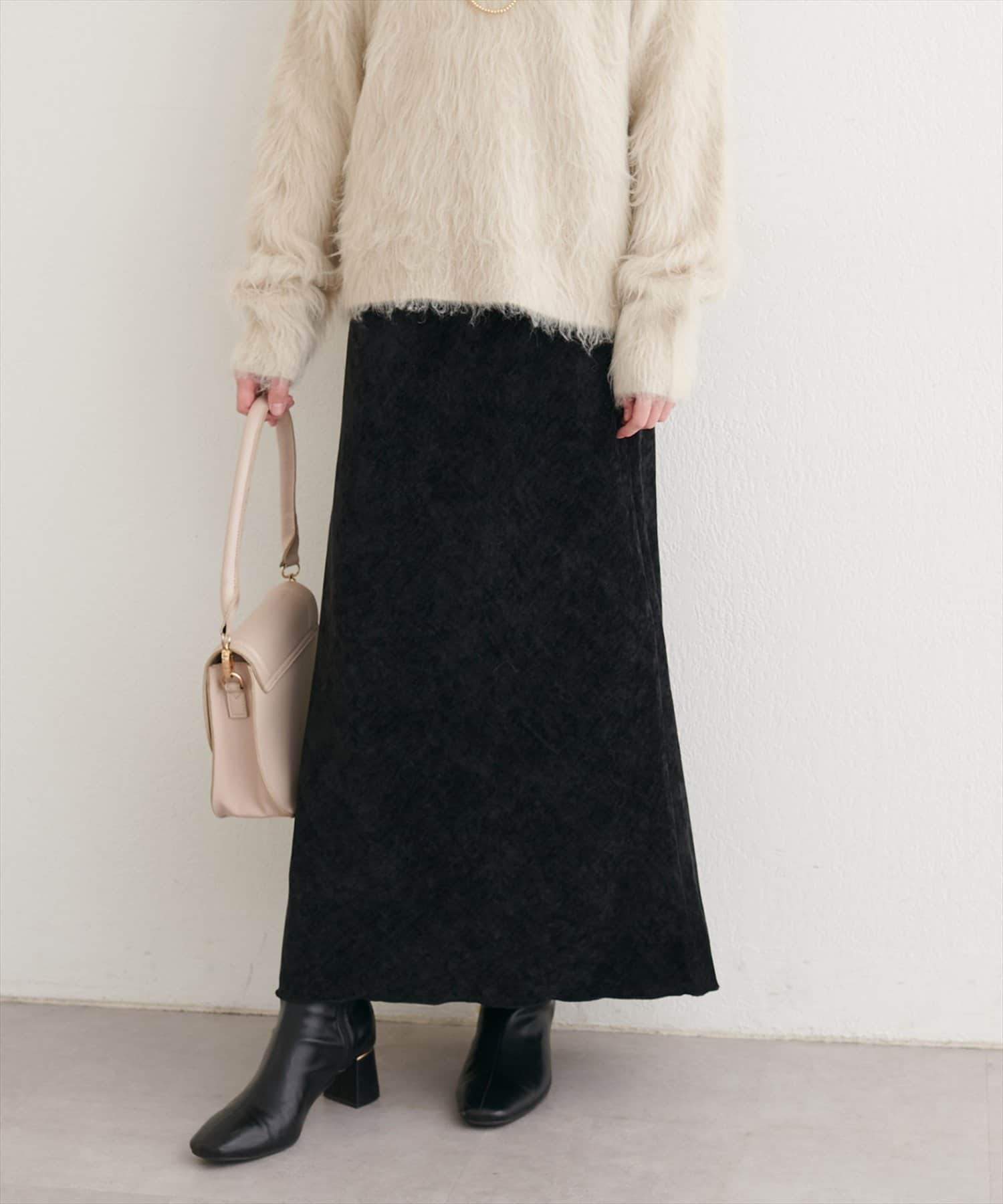 緩やかなカーブを描くAラインシルエットが、女性らしい雰囲気を演出。