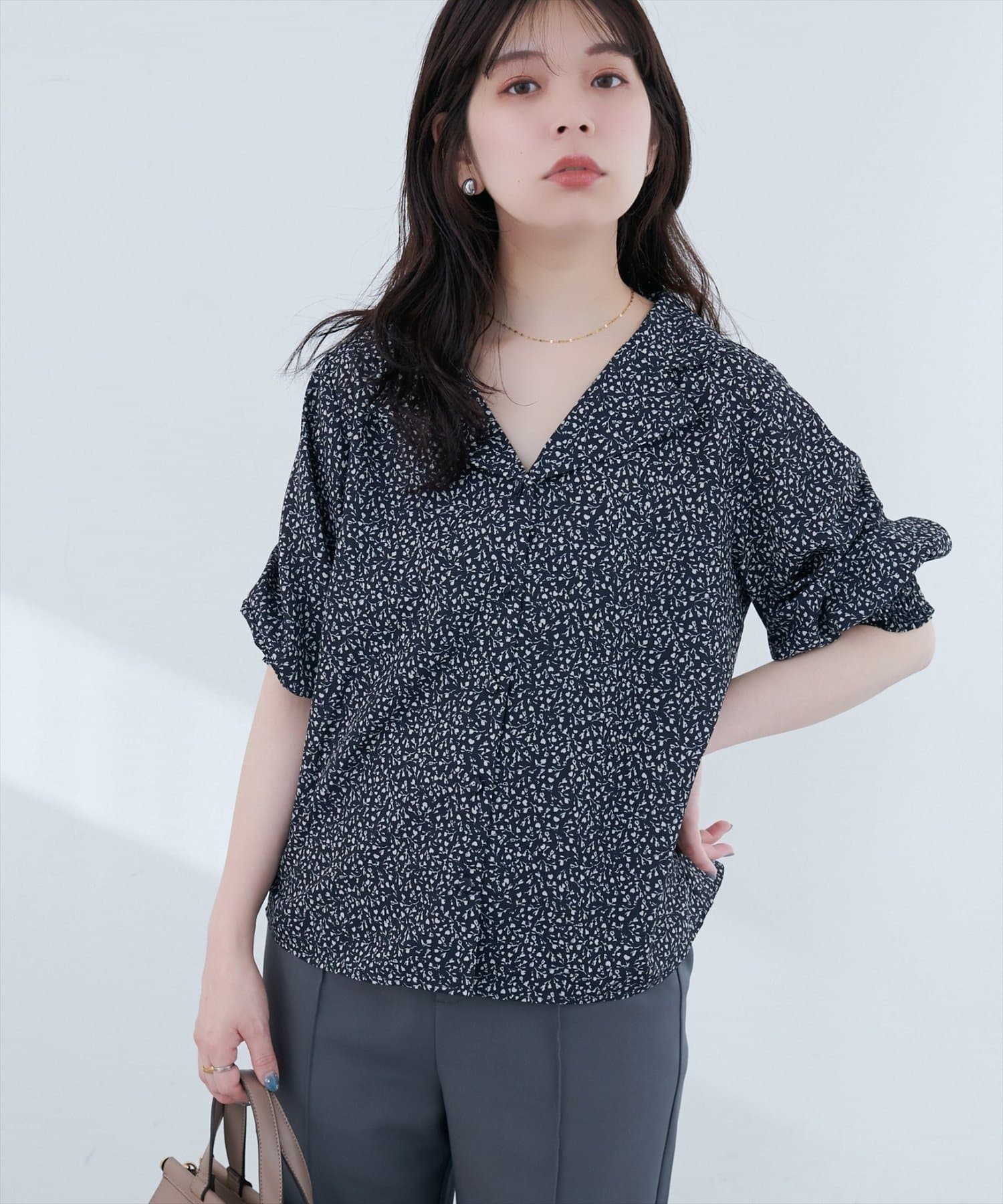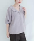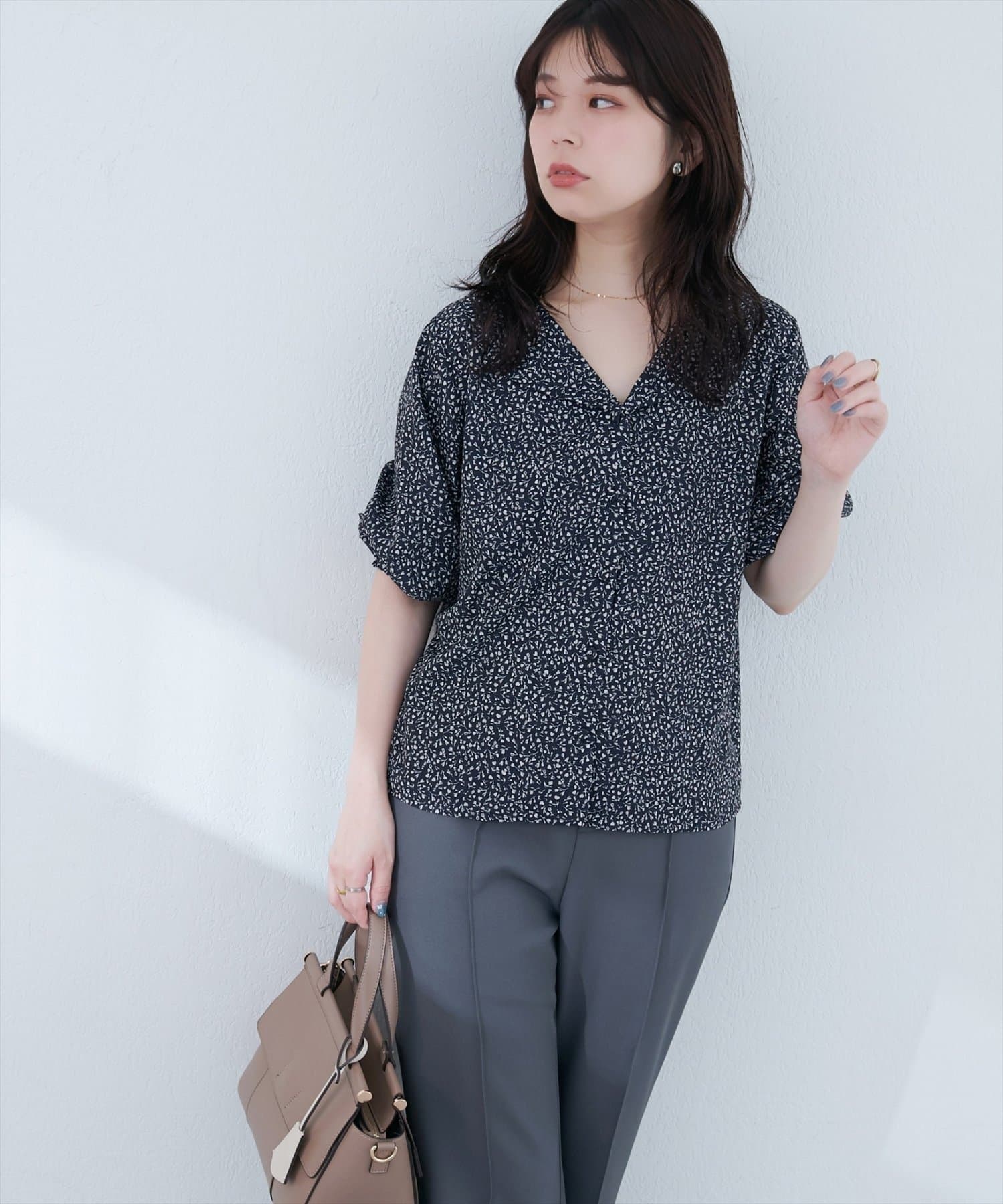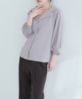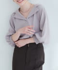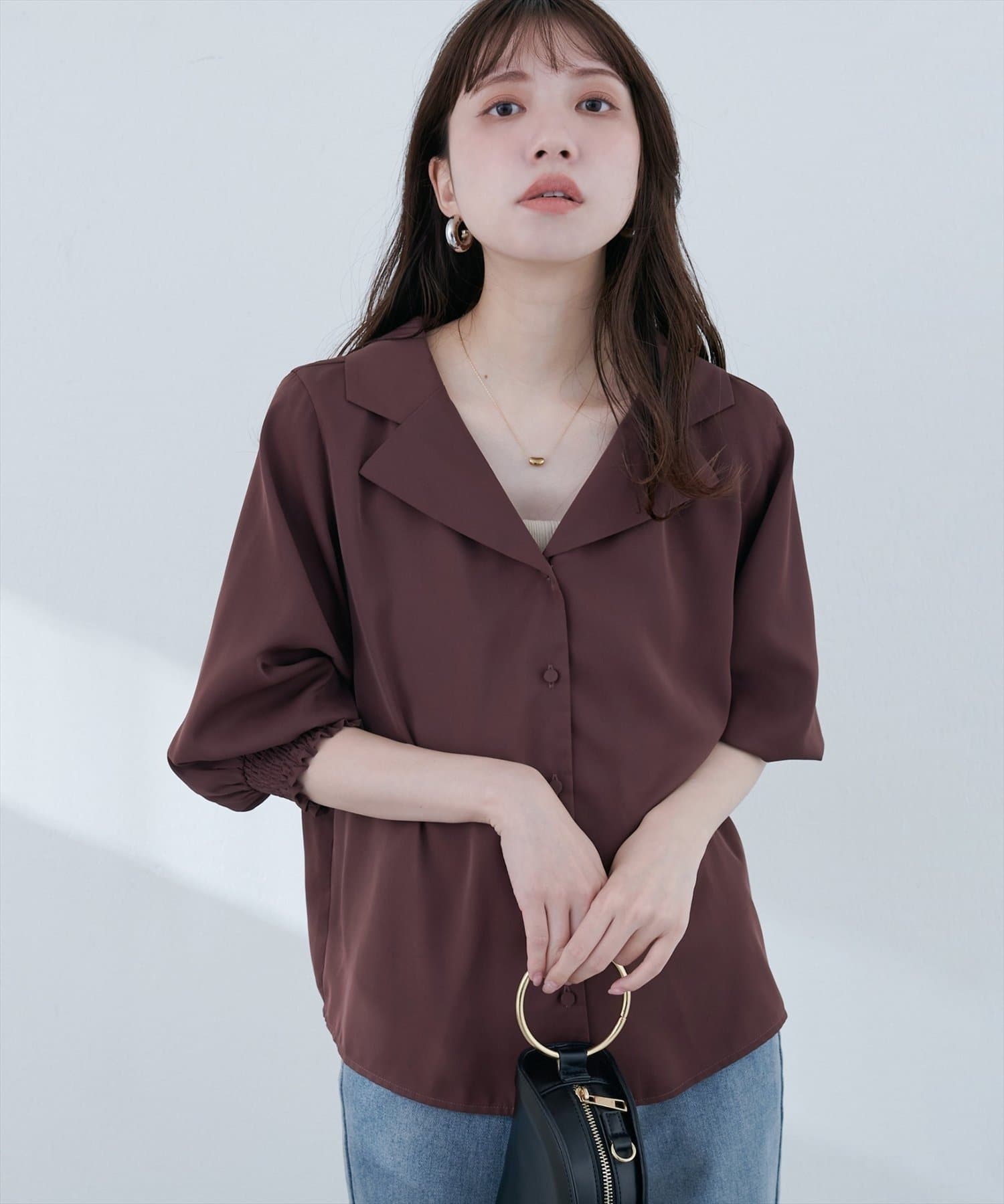 【natural couture】オープンカラー袖口シャーリングブラウス