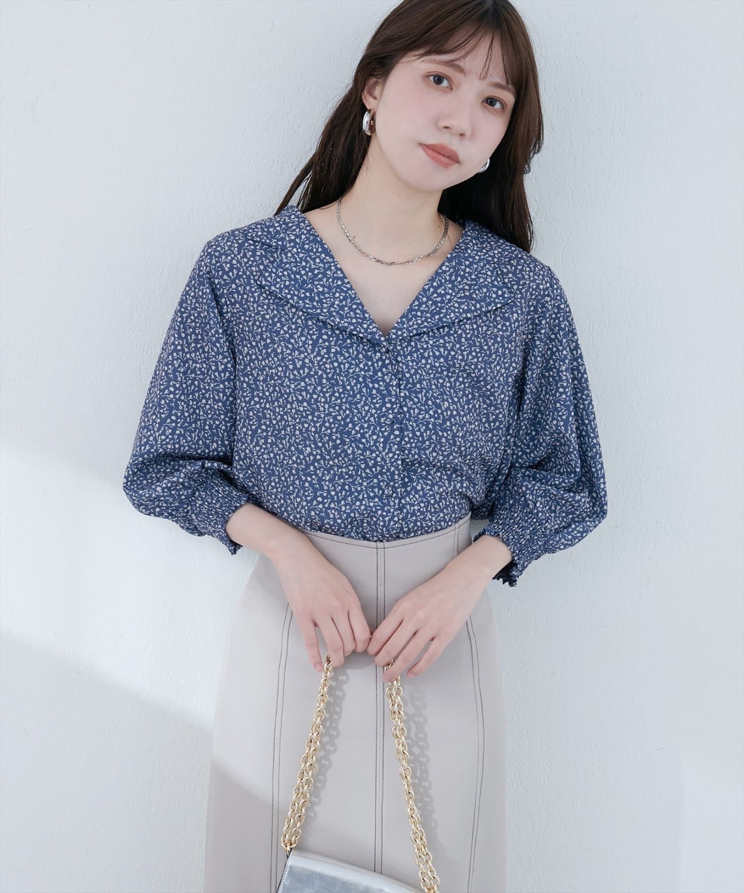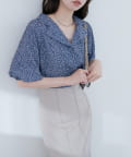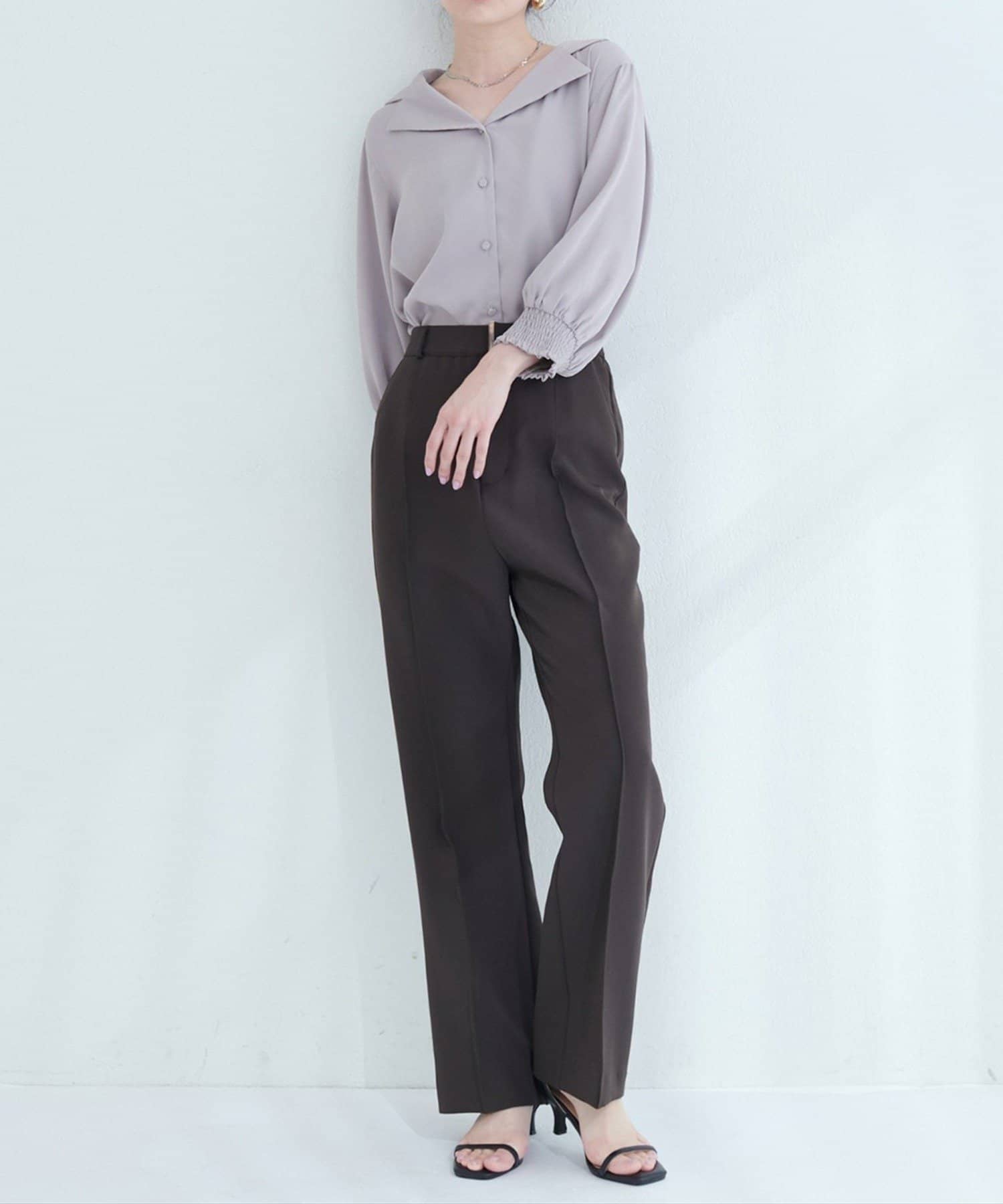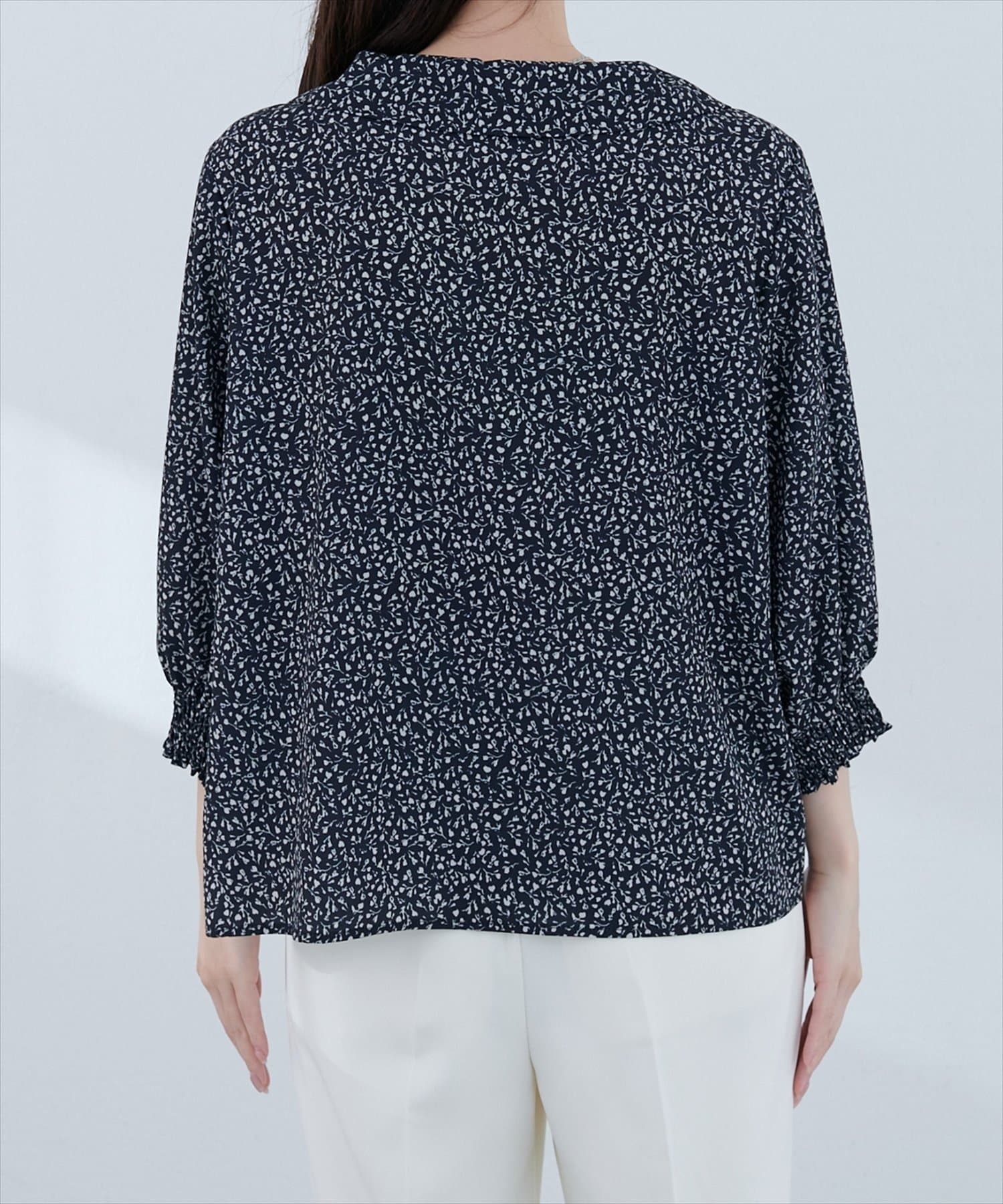 【natural couture】オープンカラー袖口シャーリングブラウス