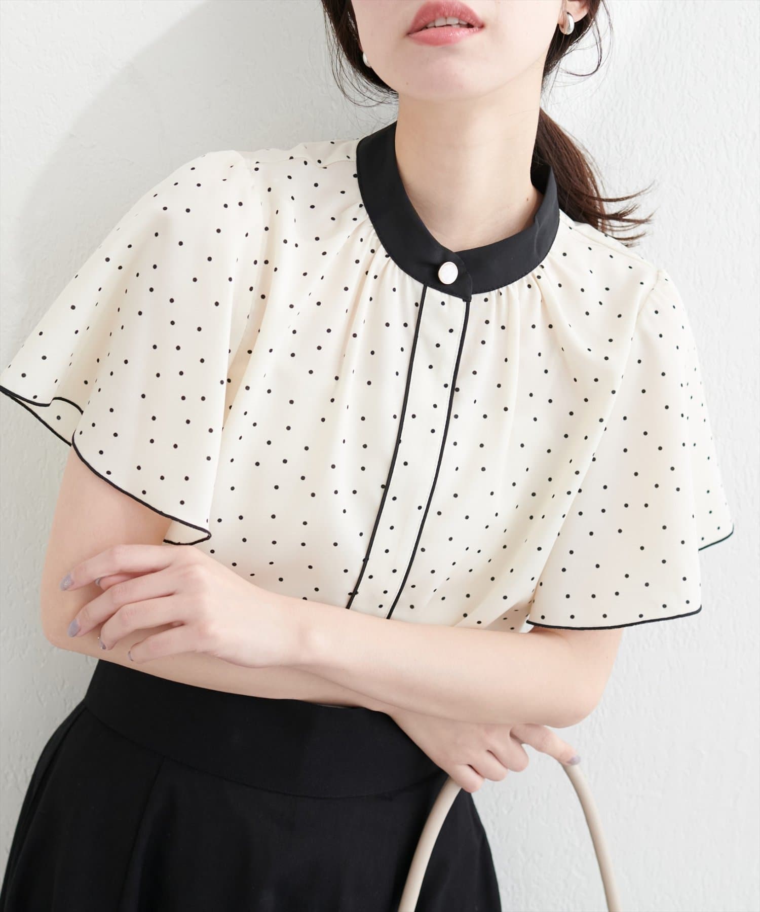 バイカラーと上品な釦使いが目を惹くキレイめブラウス