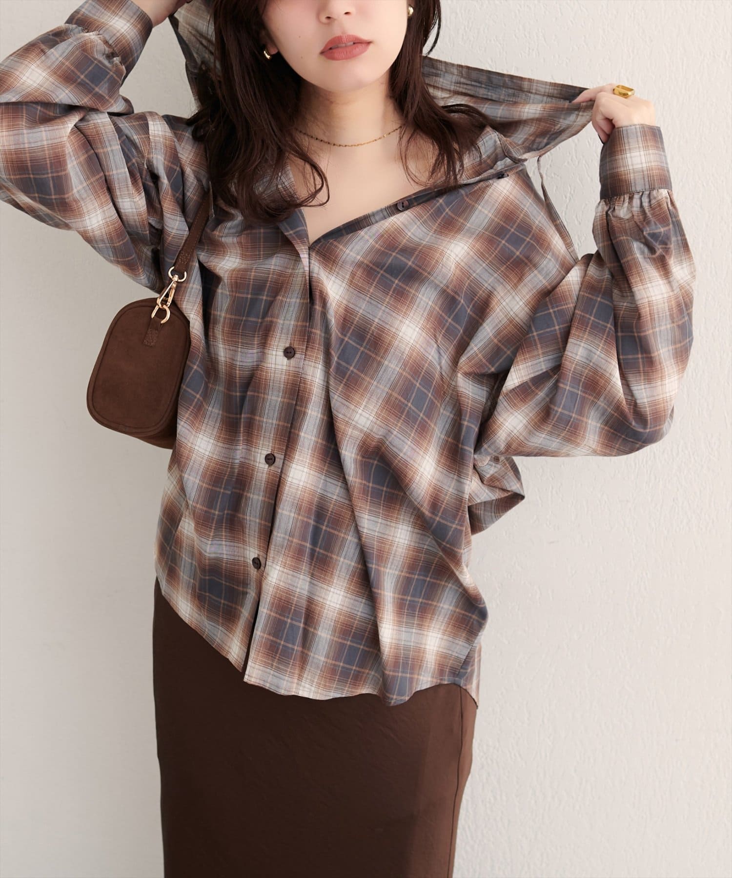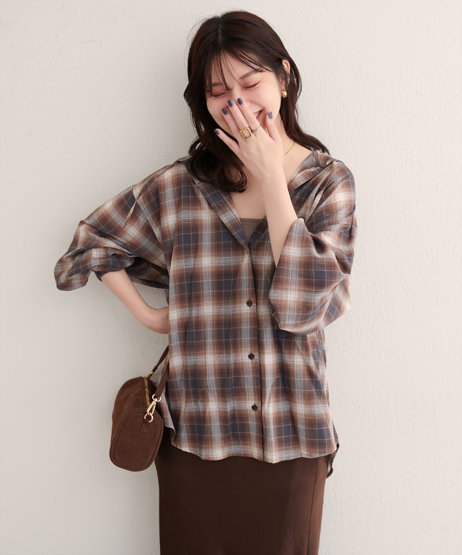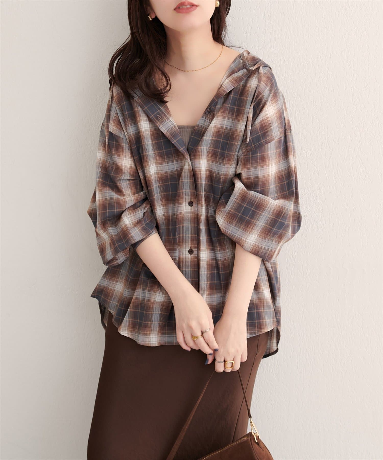 フロントボタンを閉じてシャツとして着こなすのはもちろん、ボタンを開けてロングカーディガンのように羽織るスタイルもおすすめです。