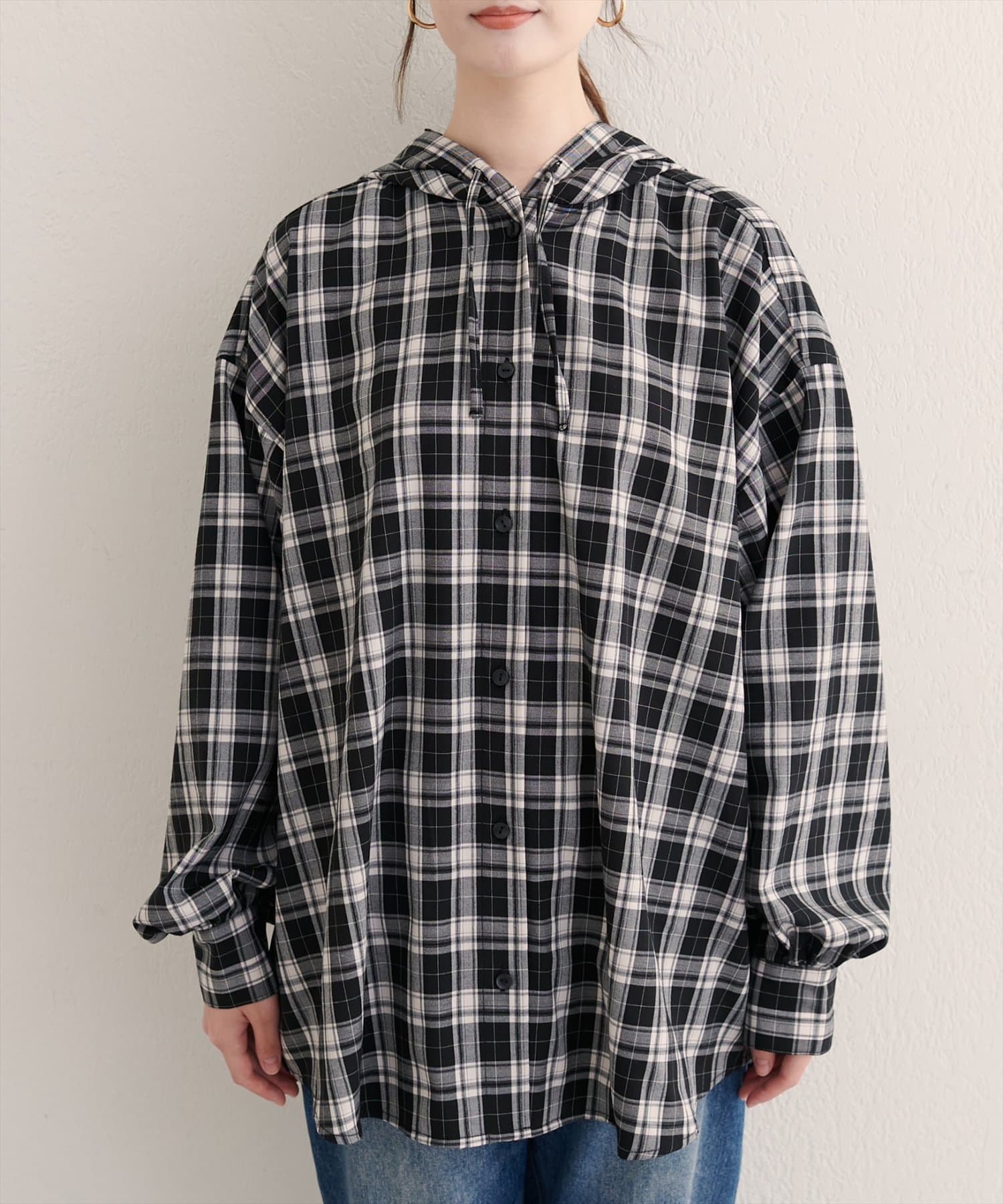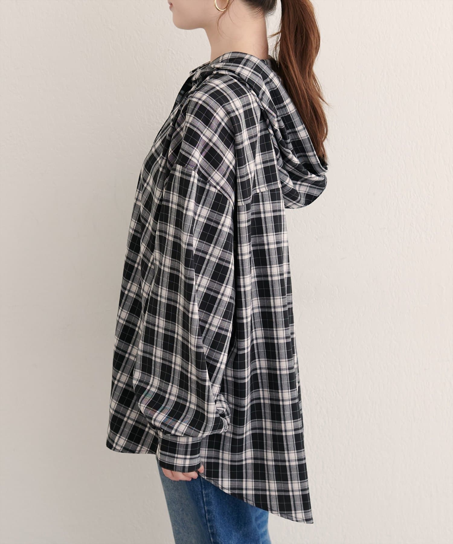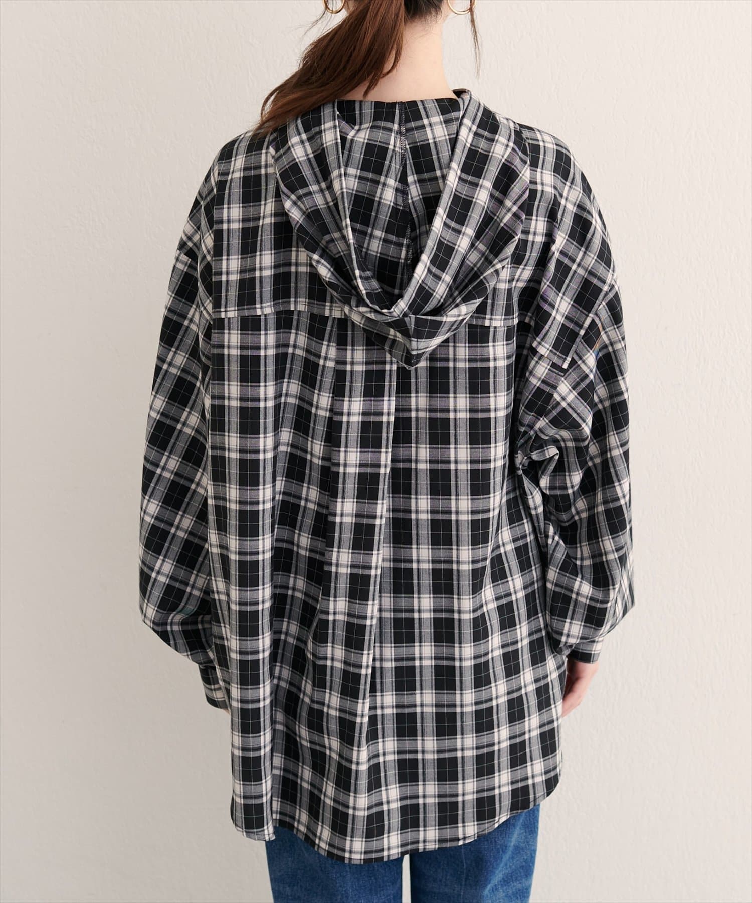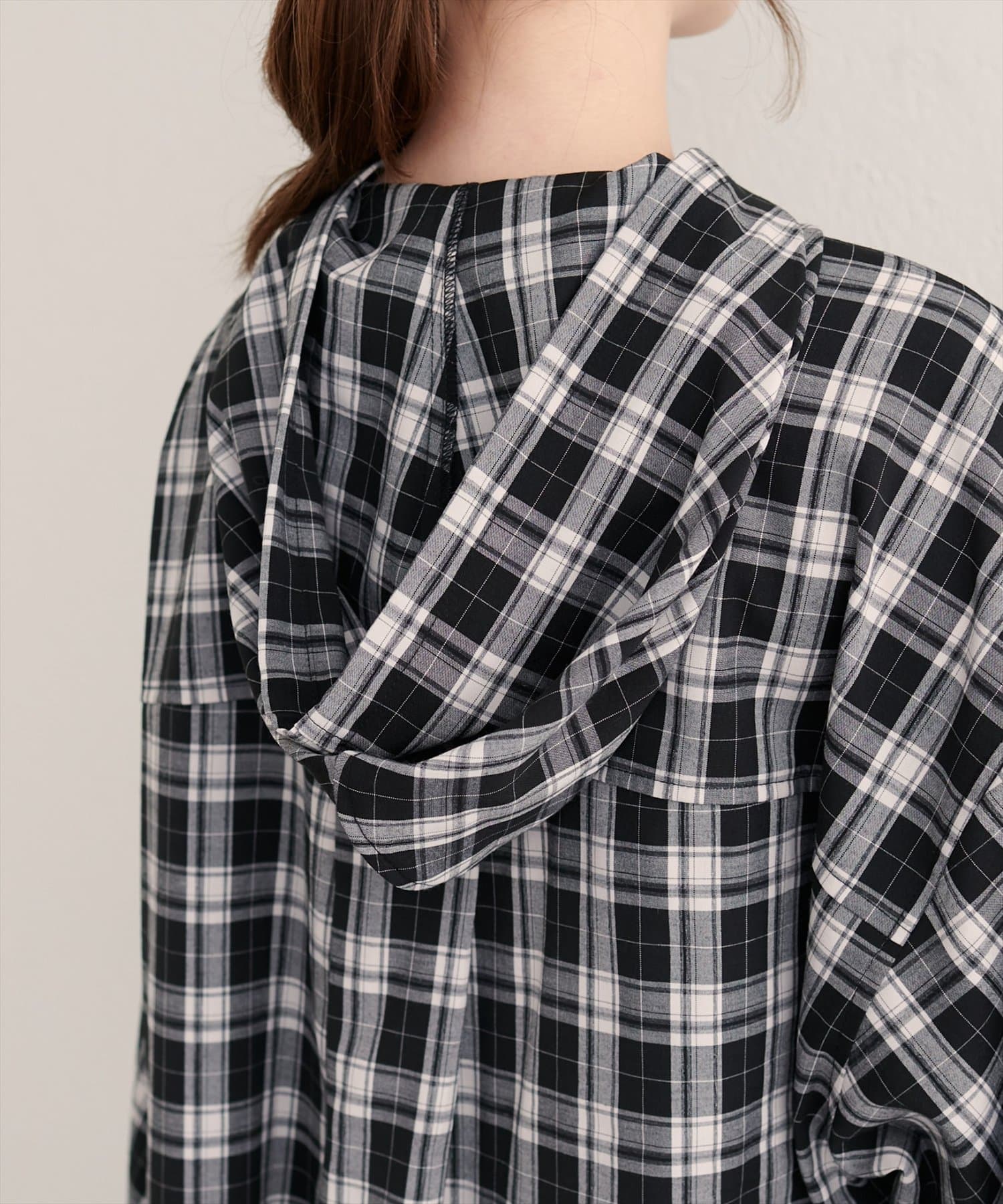 フーテッドロング羽織シャツ