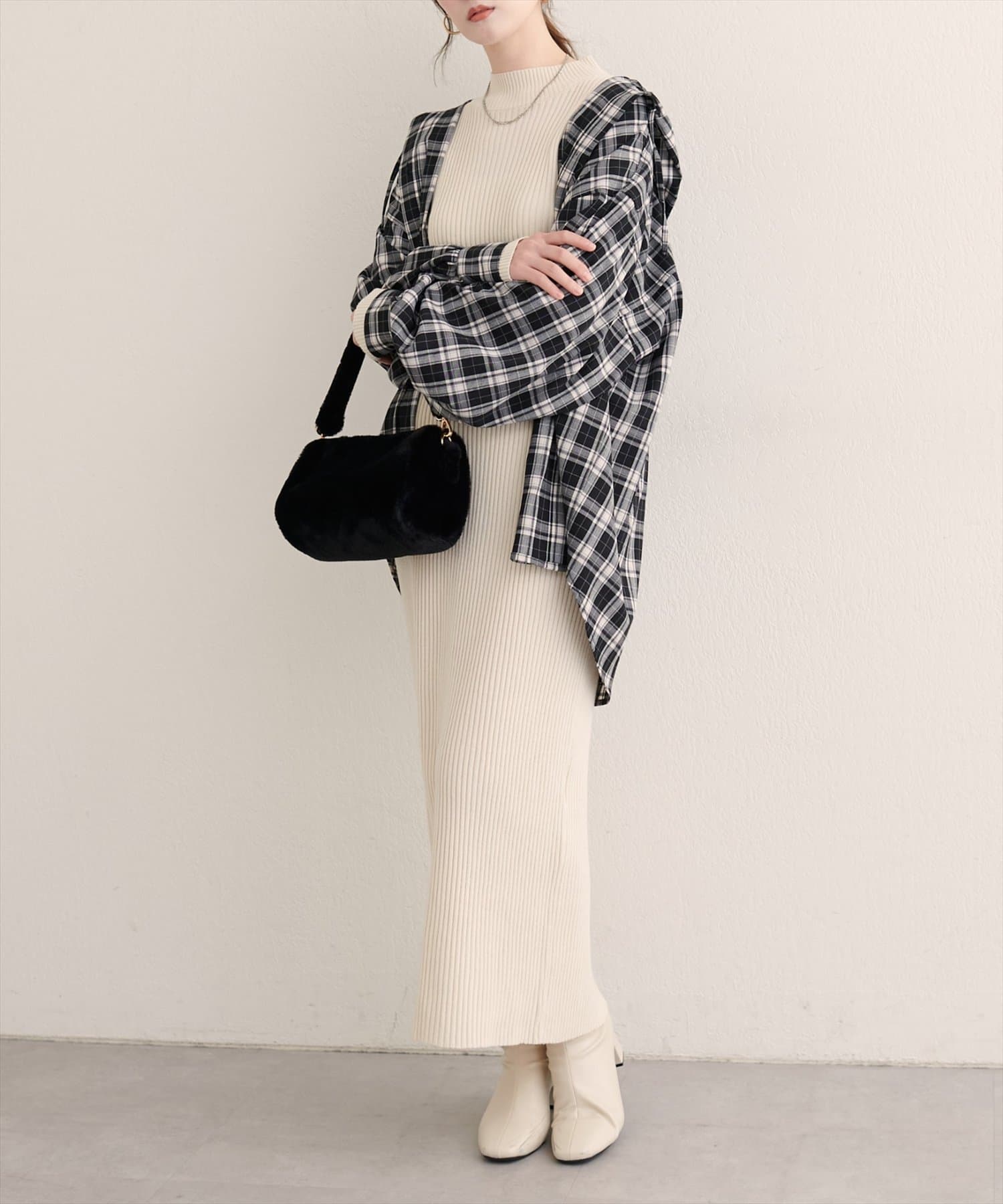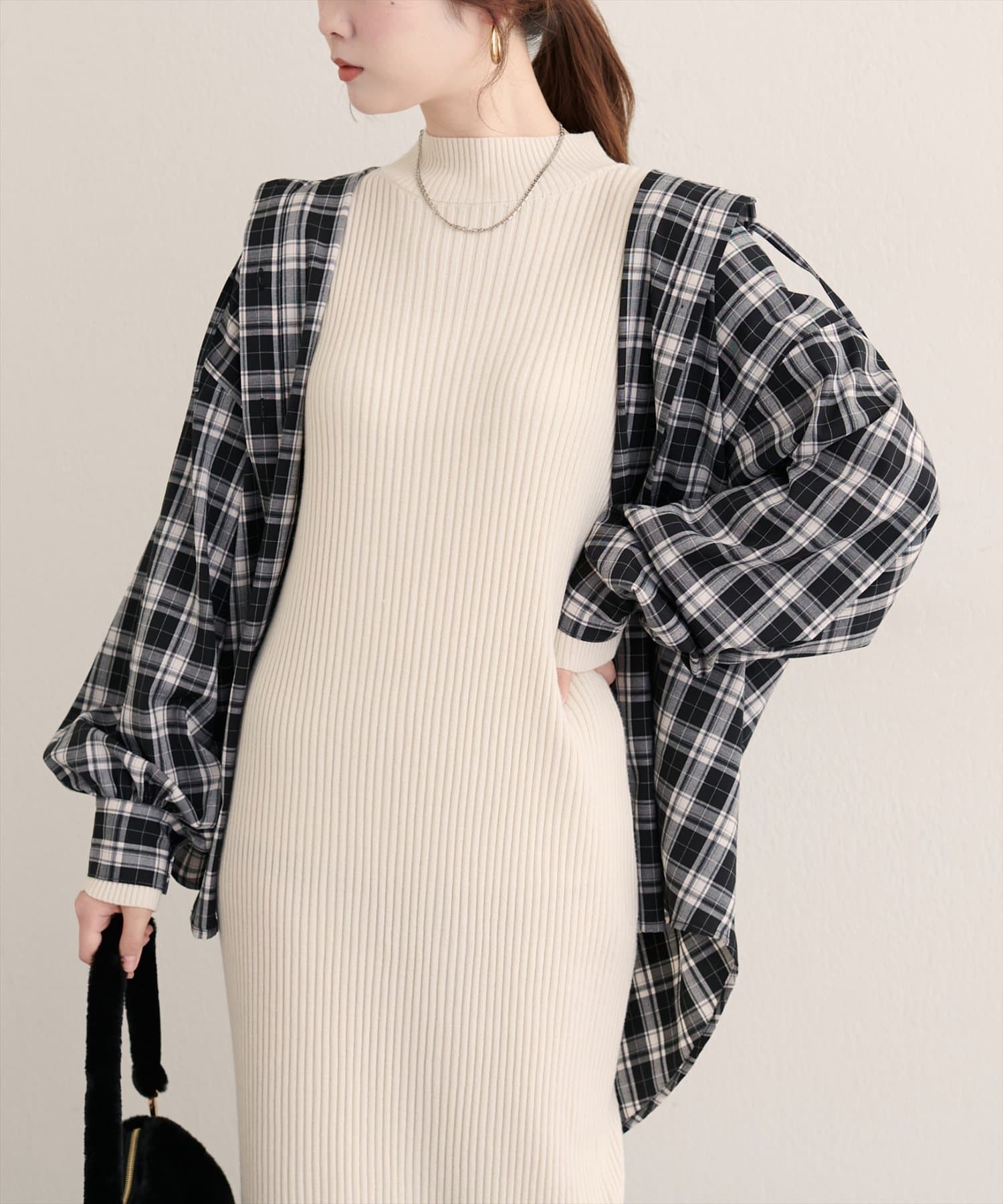 また、トレンドのニットベストやビスチェとのレイヤードスタイルにもおすすめです。