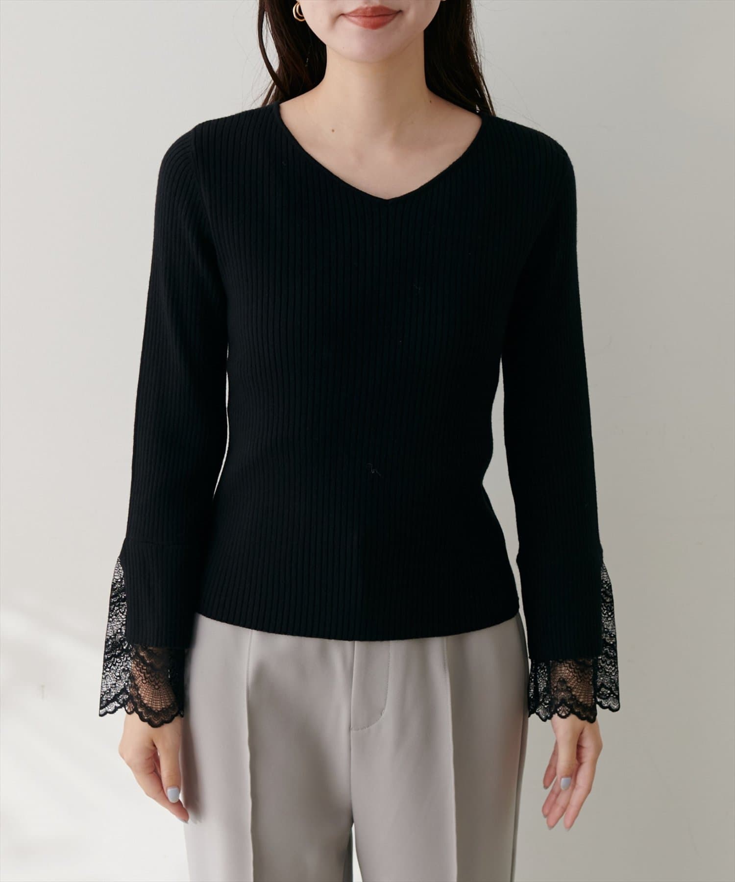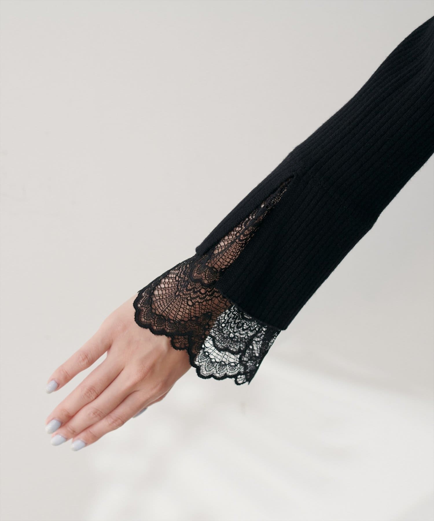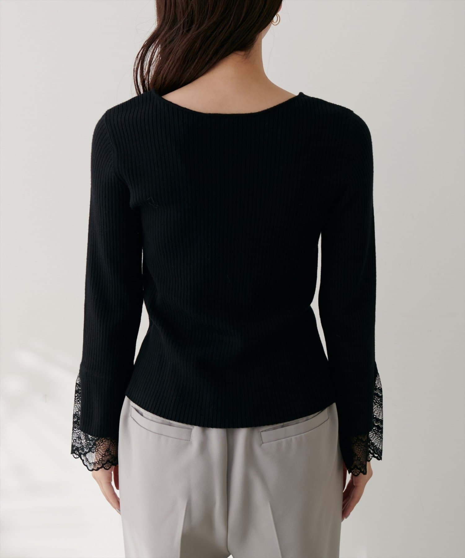 前後2WAY袖口レースリブニット