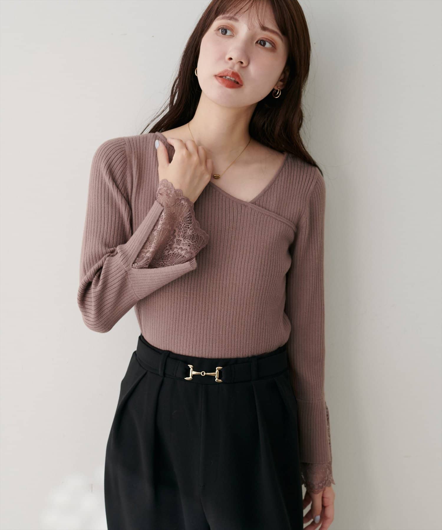 カジュアルなニットにフェミニンな要素をプラスすることで、オフィスからデートまで、幅広いシーンで活躍する一枚。