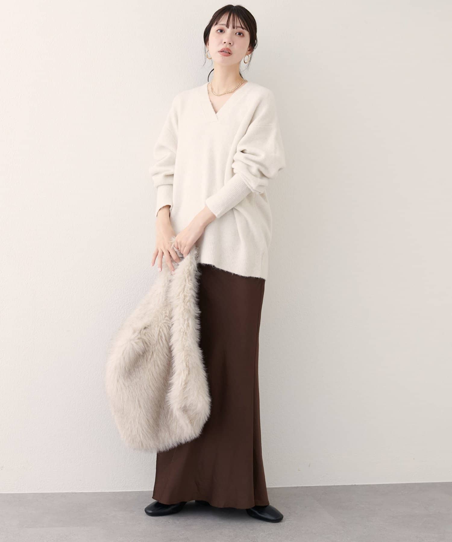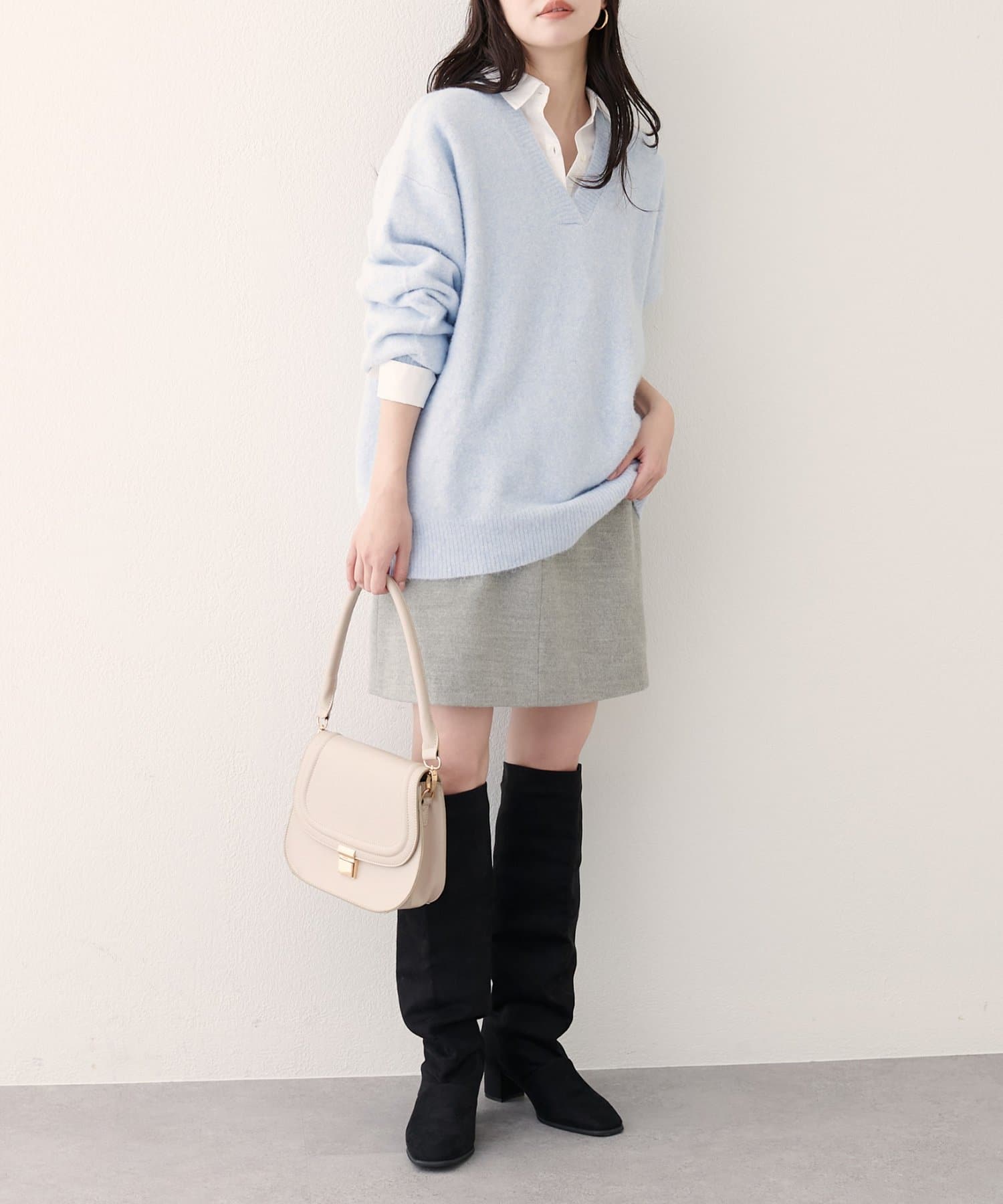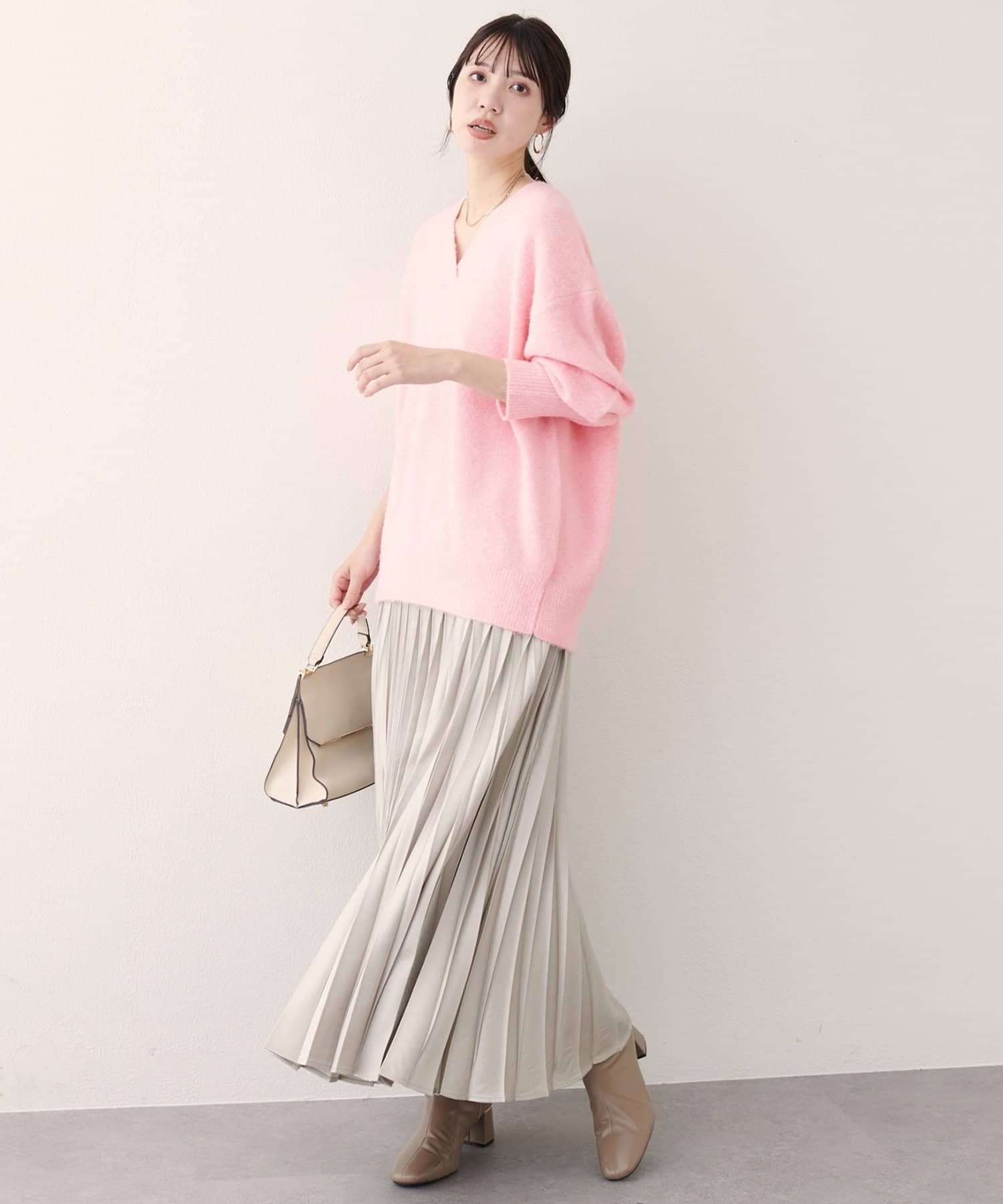 フェミニンなスカートと合わせて、上品で柔らかな印象に。