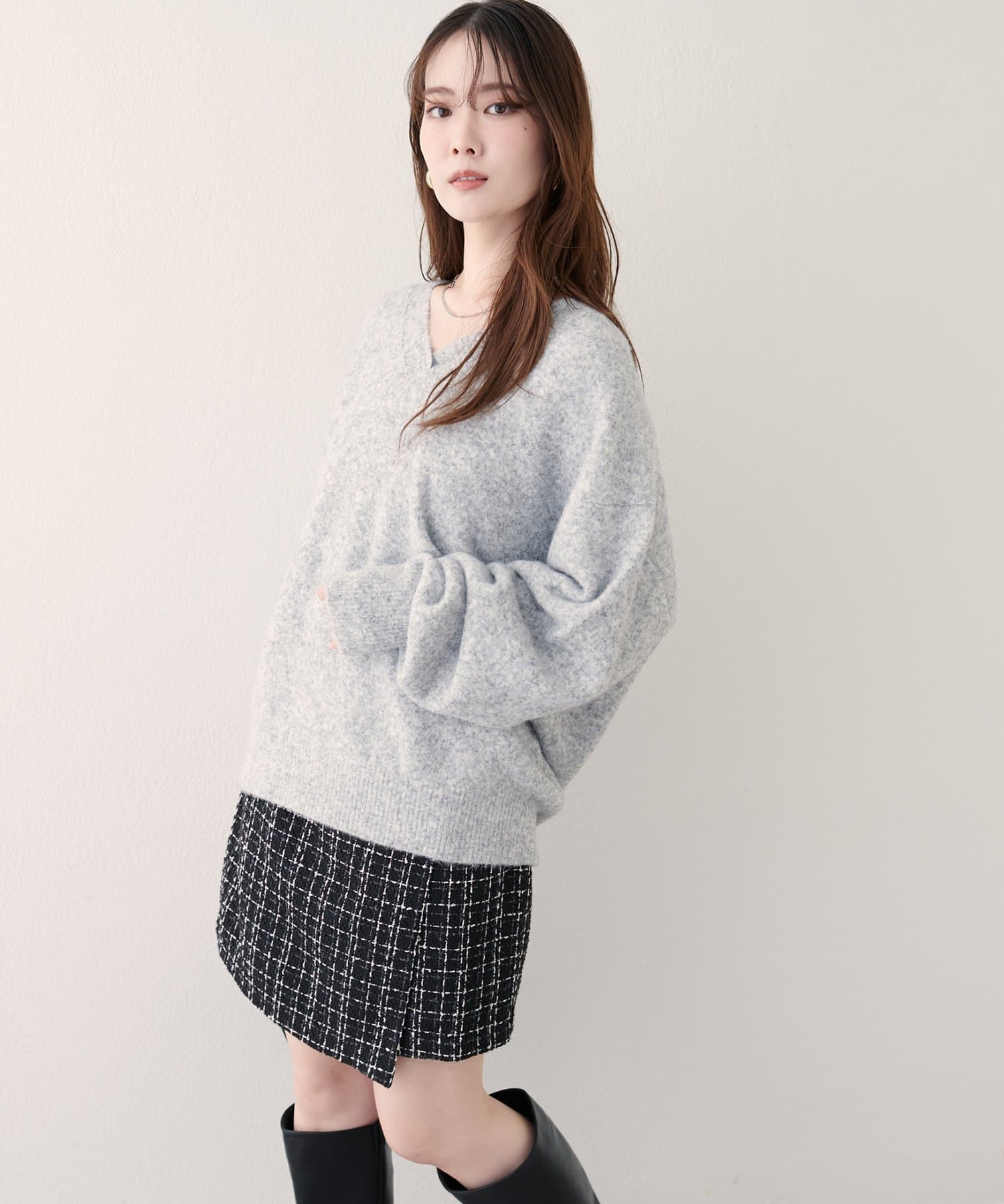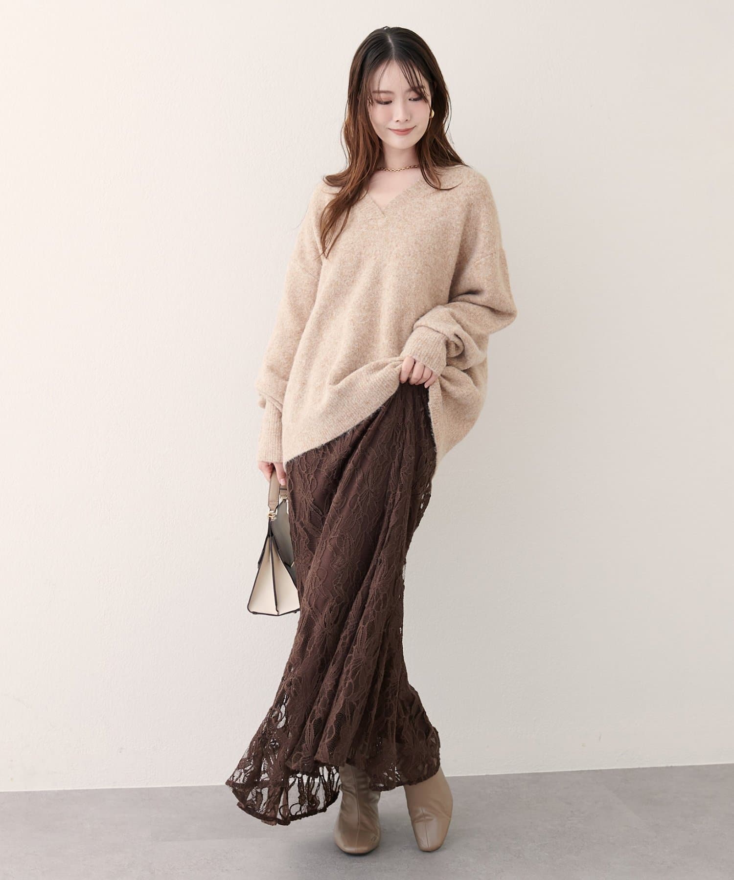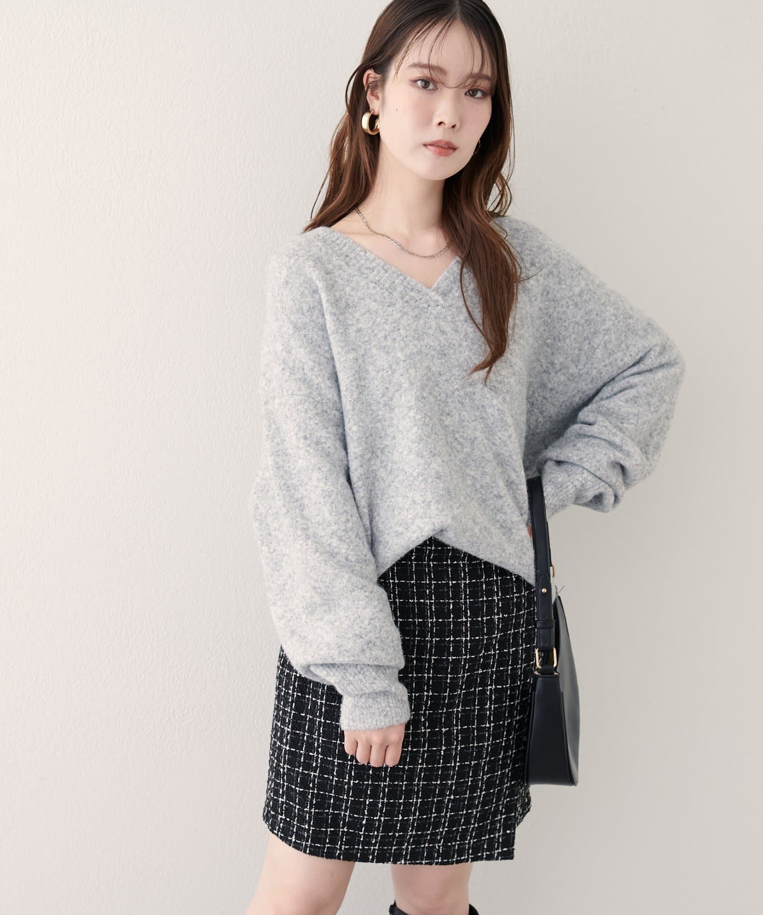 フェミニンなスカートと合わせて、上品で柔らかな印象に。