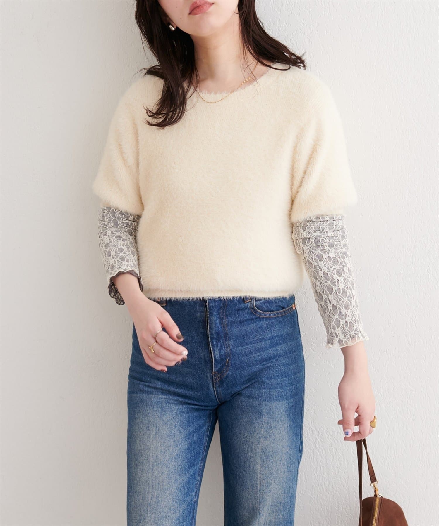 【natural couture】フェザーヤーン半袖ニットプルオーバー