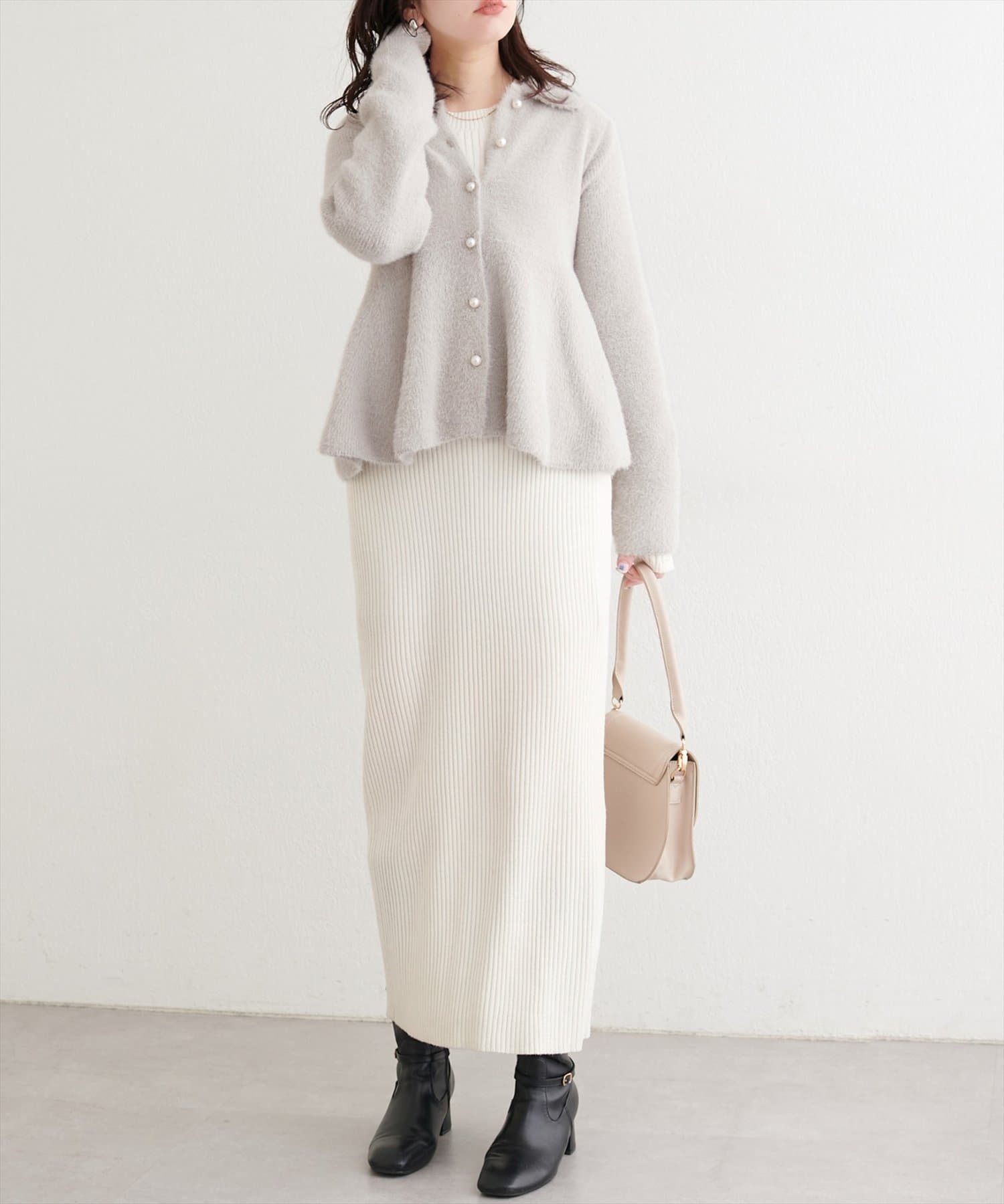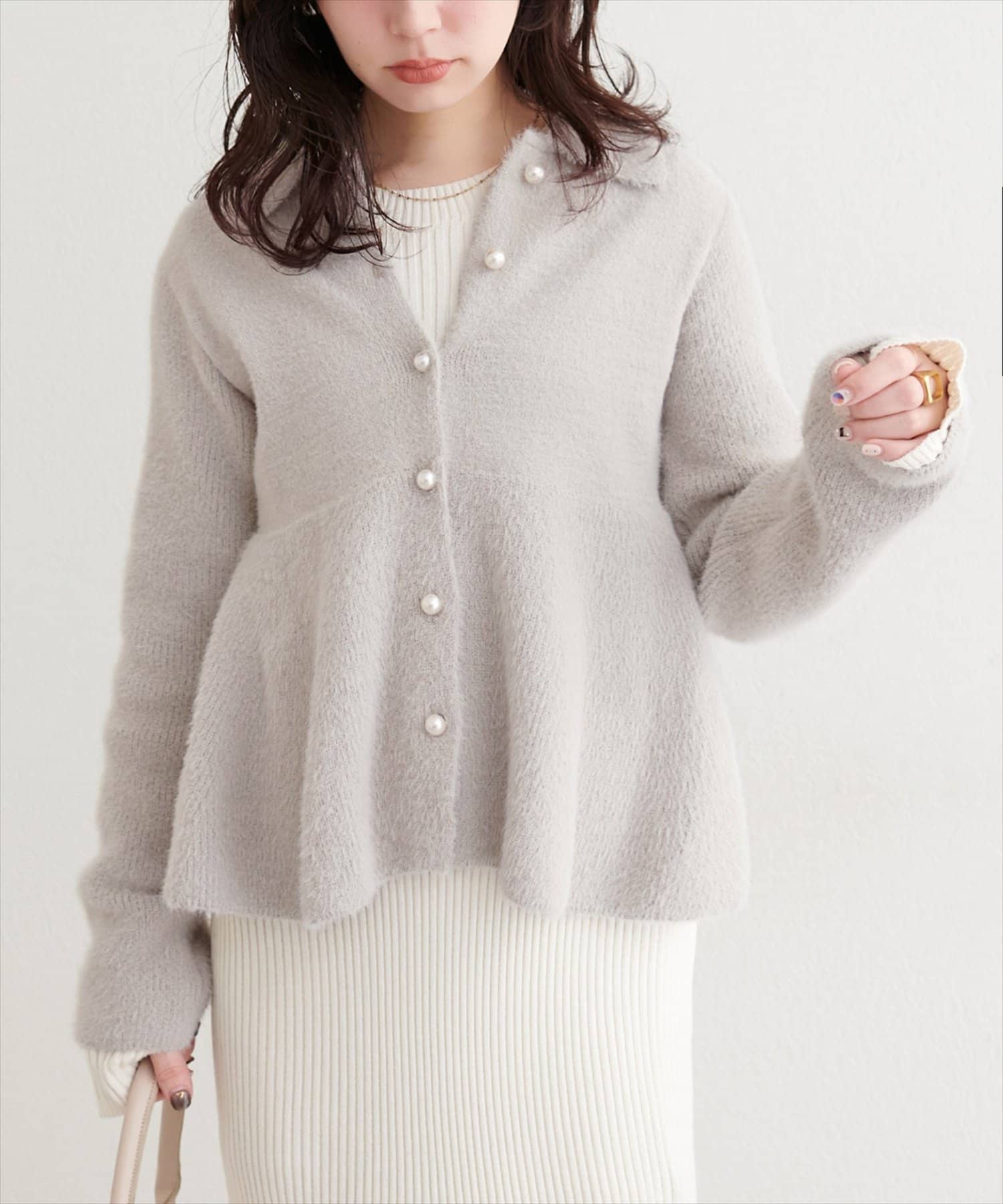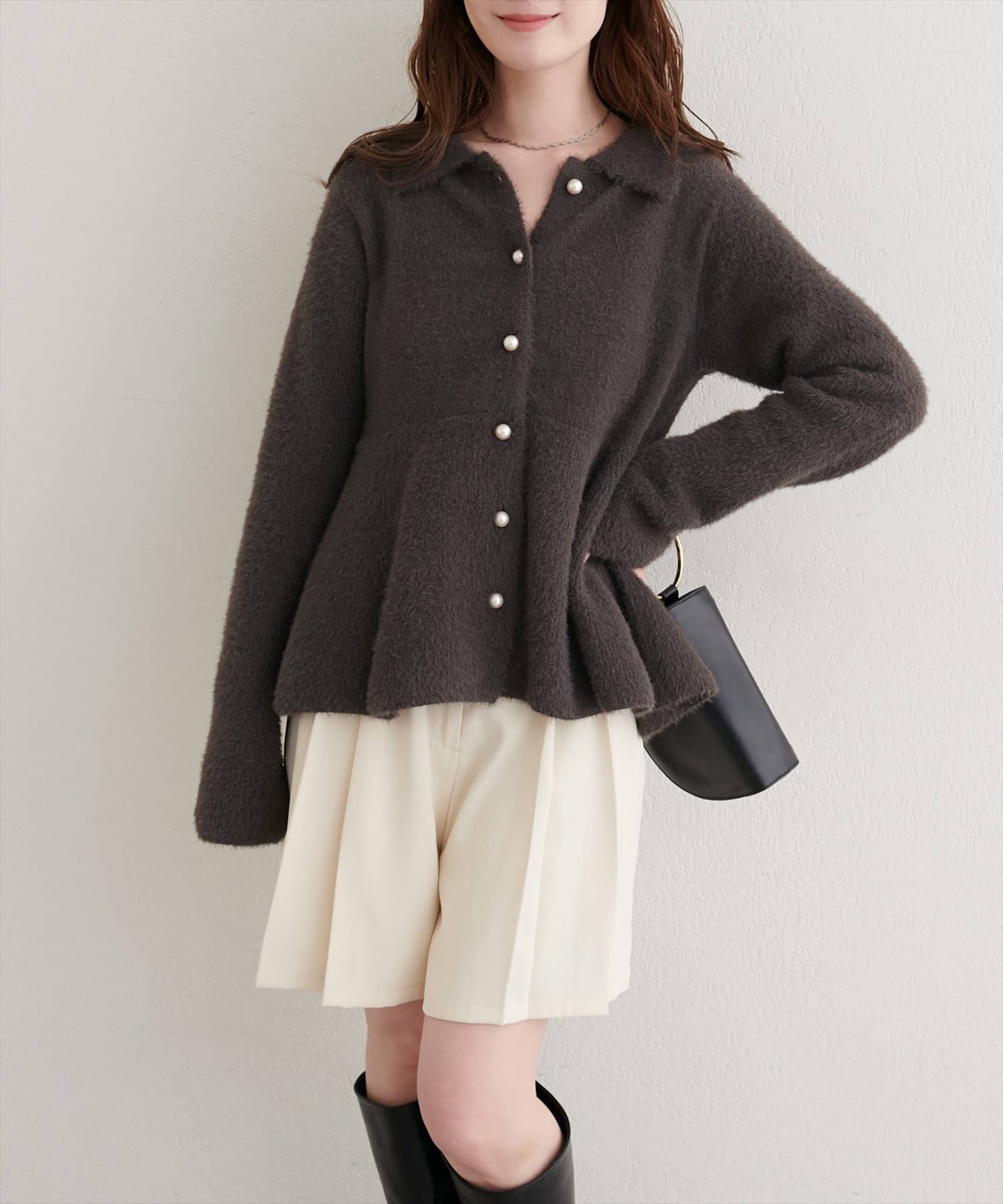 フロントには、繊細な輝きを放つパール調のボタンをあしらい、高見え感UP◎
