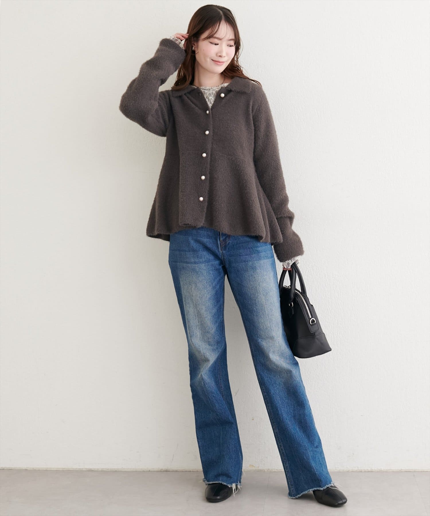 ブラウスやカットソーに羽織れば、フェミニンなレイヤードスタイルが完成。