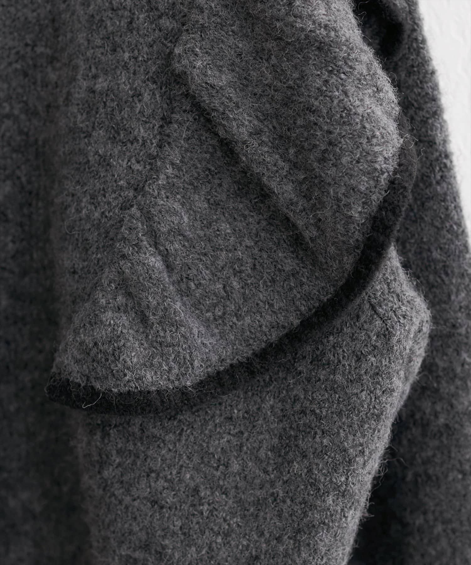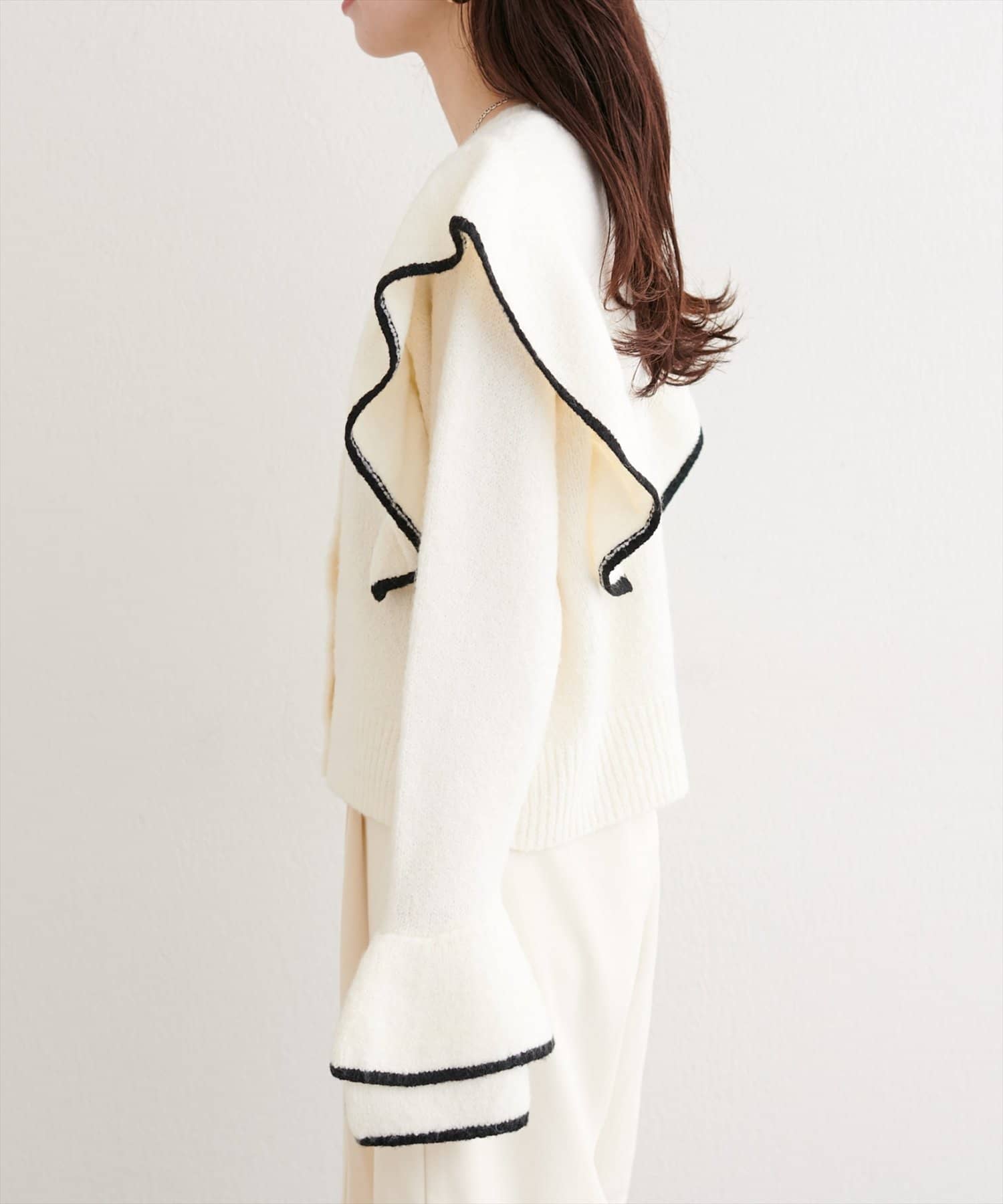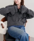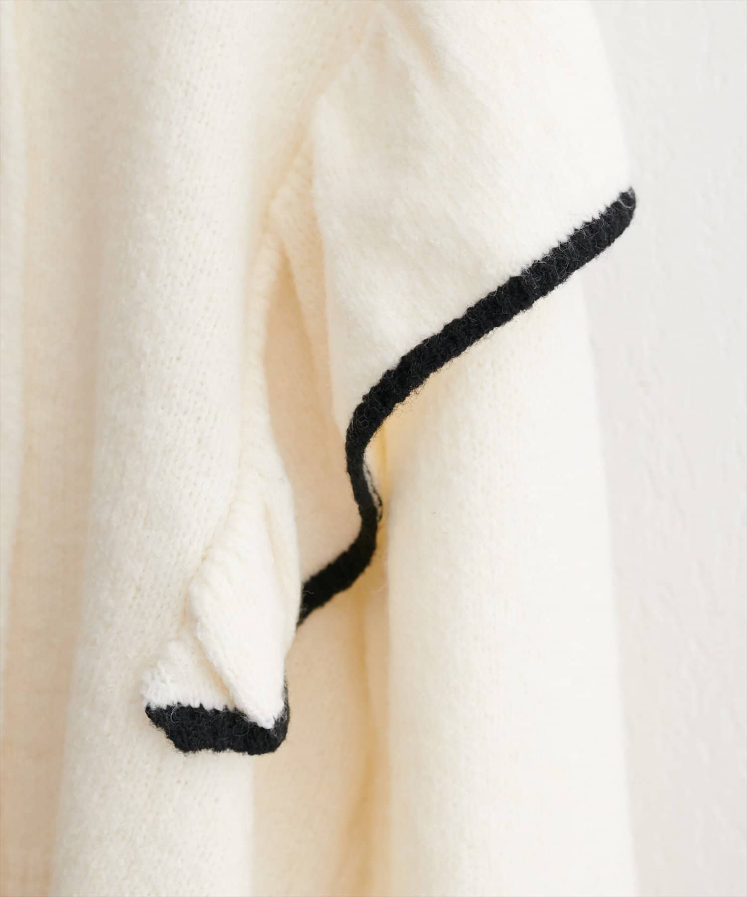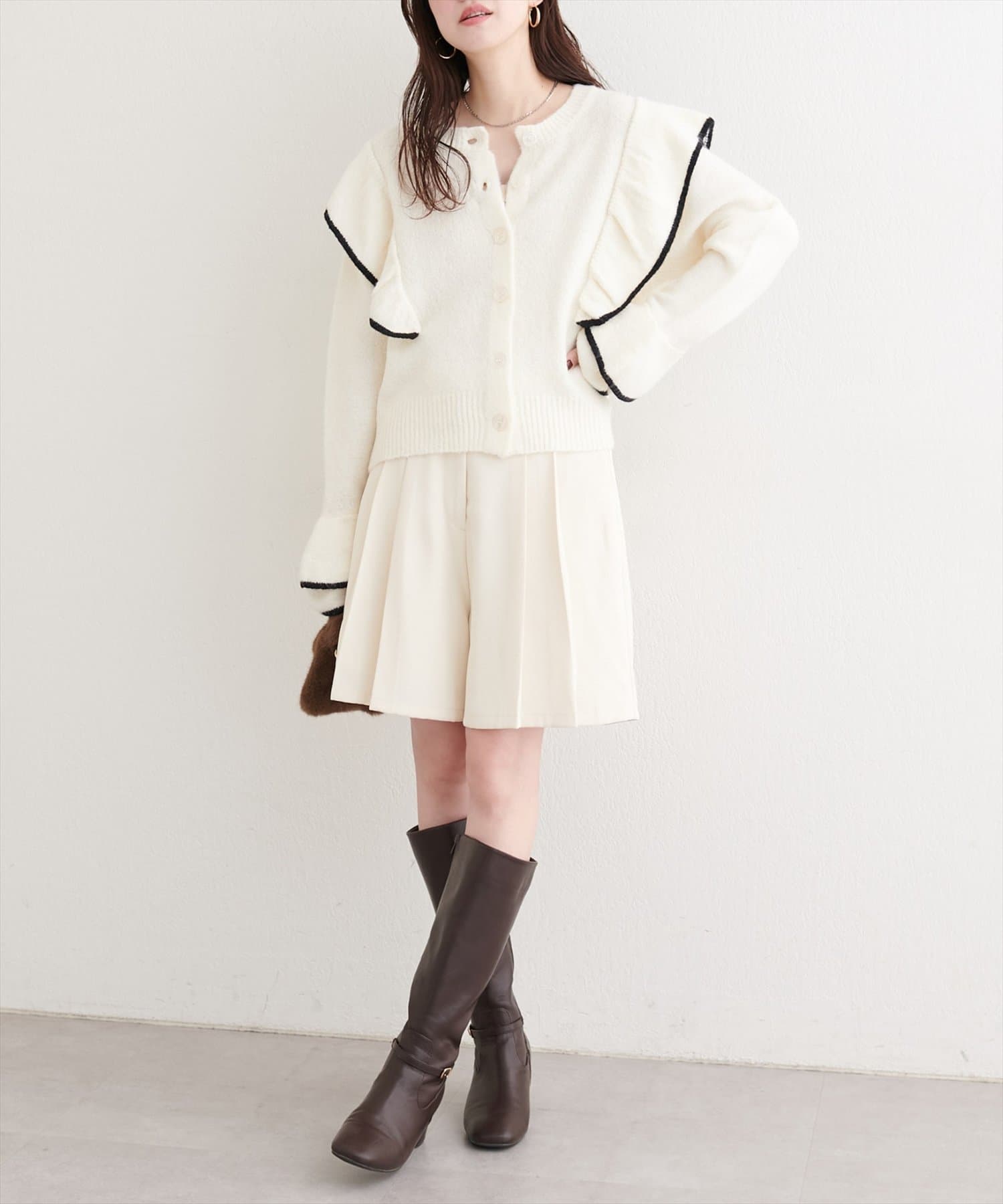 一目で心を奪われる、繊細なフリルが印象的なニットカーディガン。