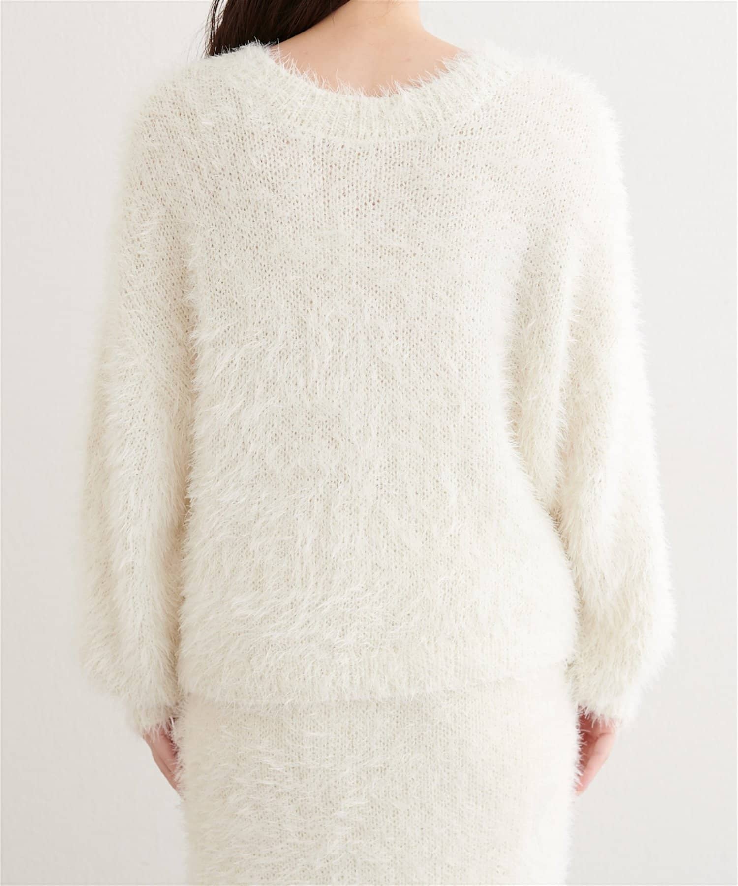 ラメフェザーボートネックニットプルオーバー