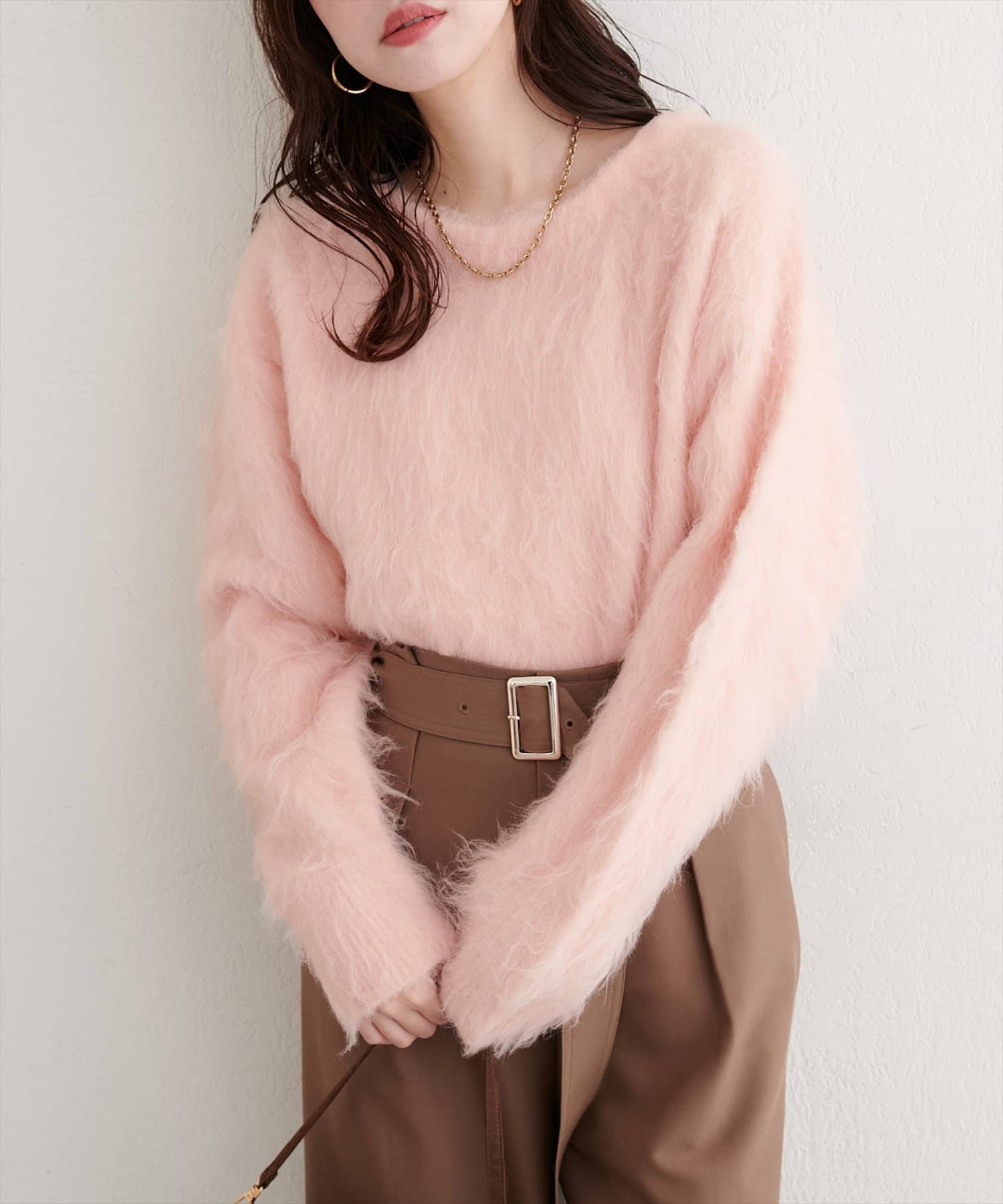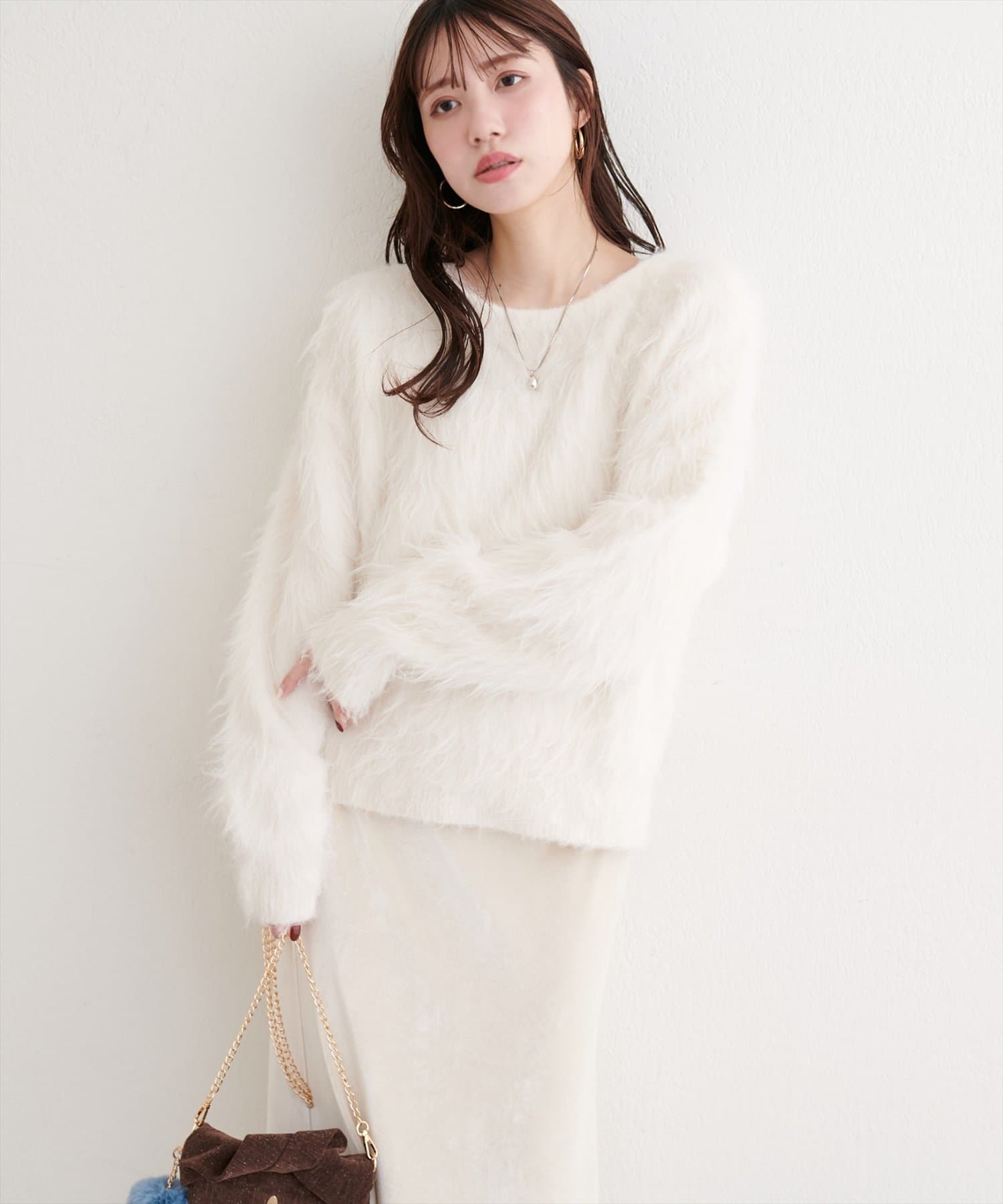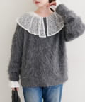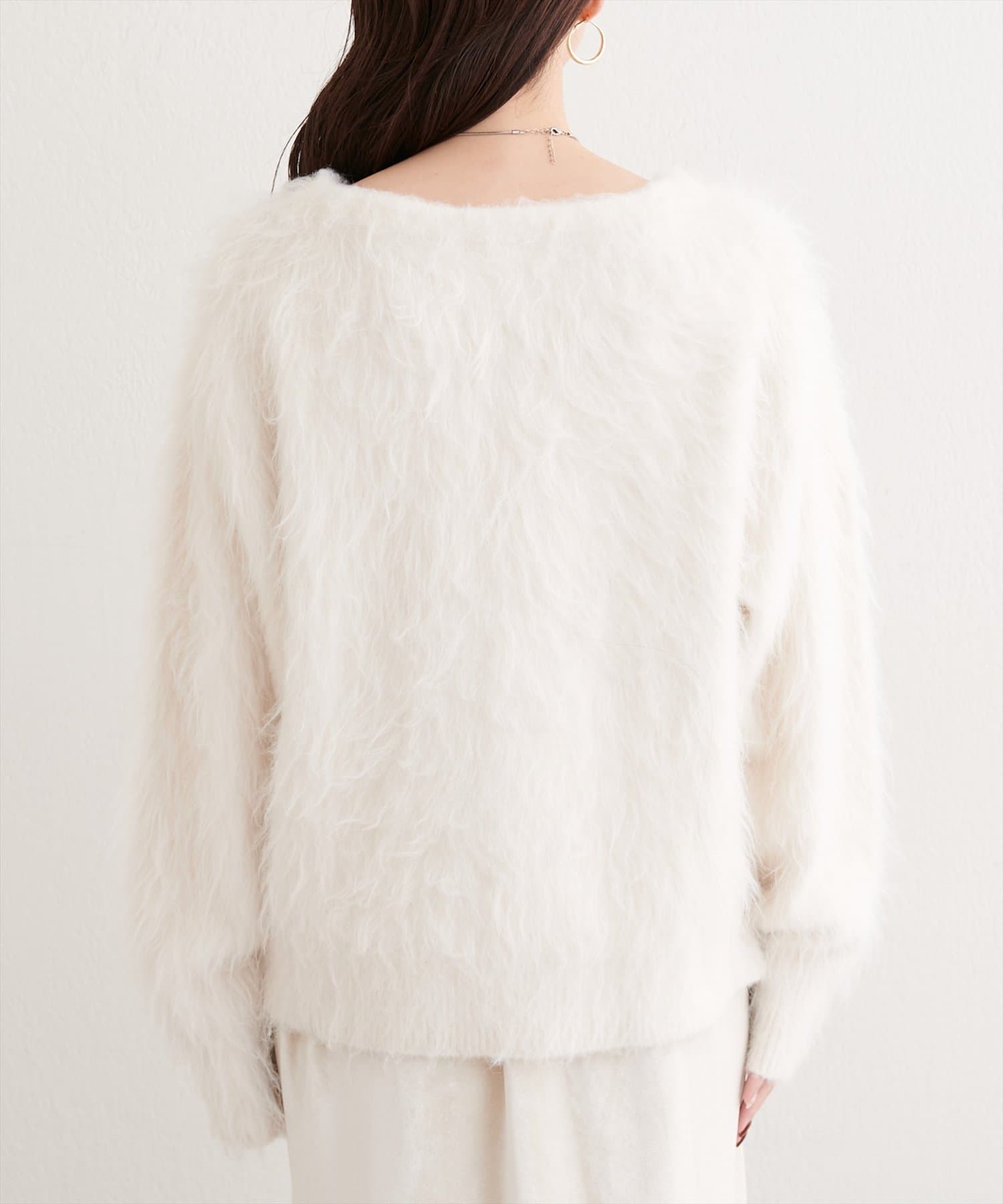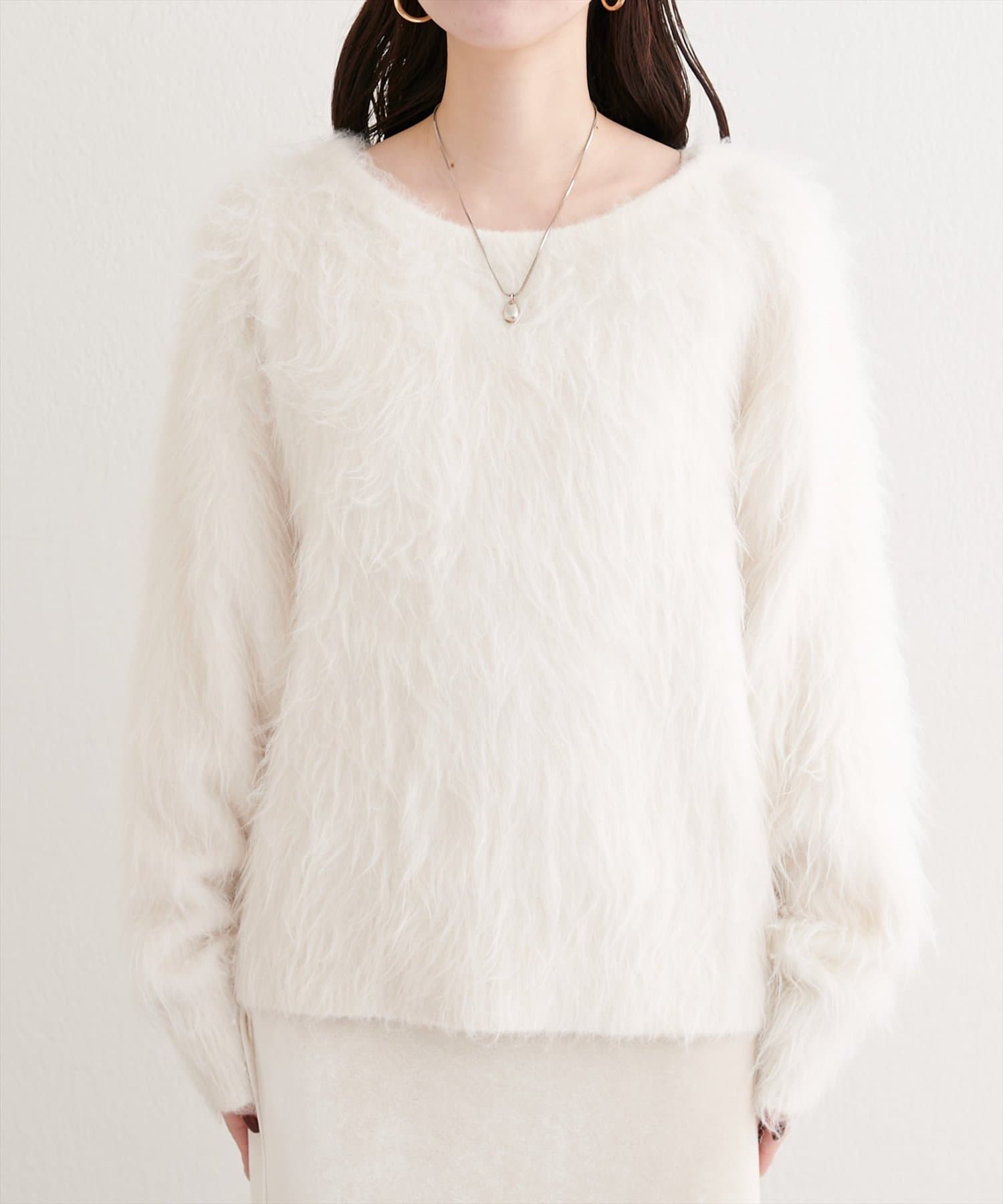 ロングフェザークルーネックニットプルオーバー