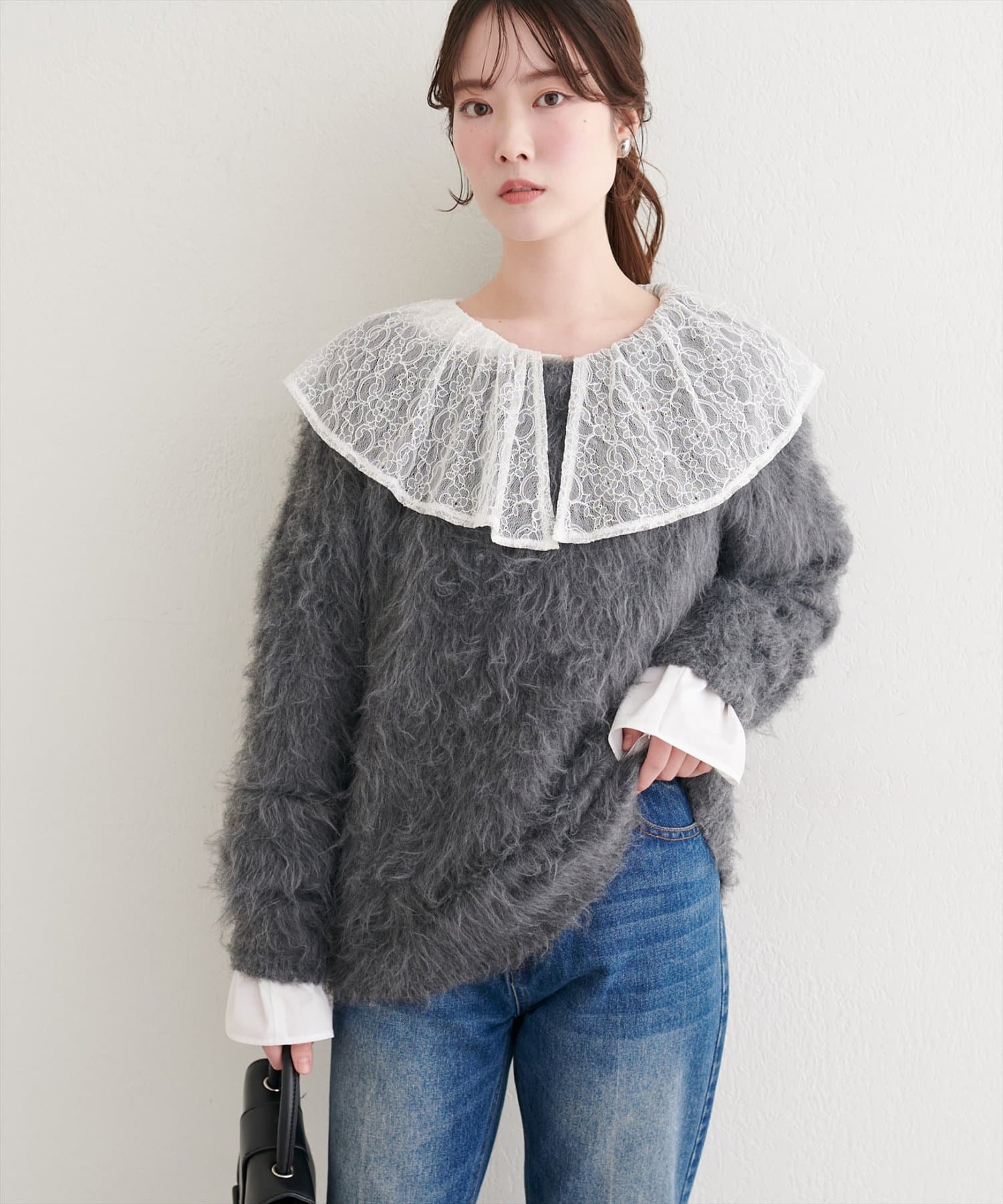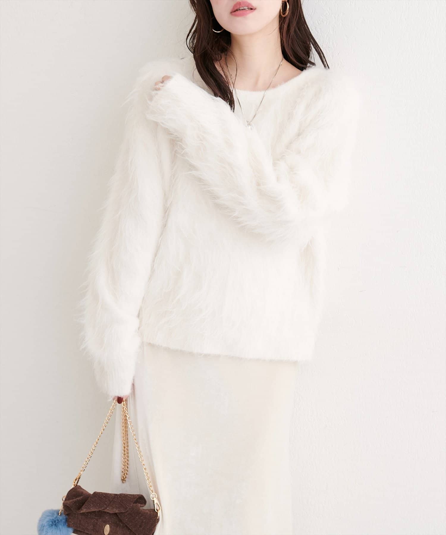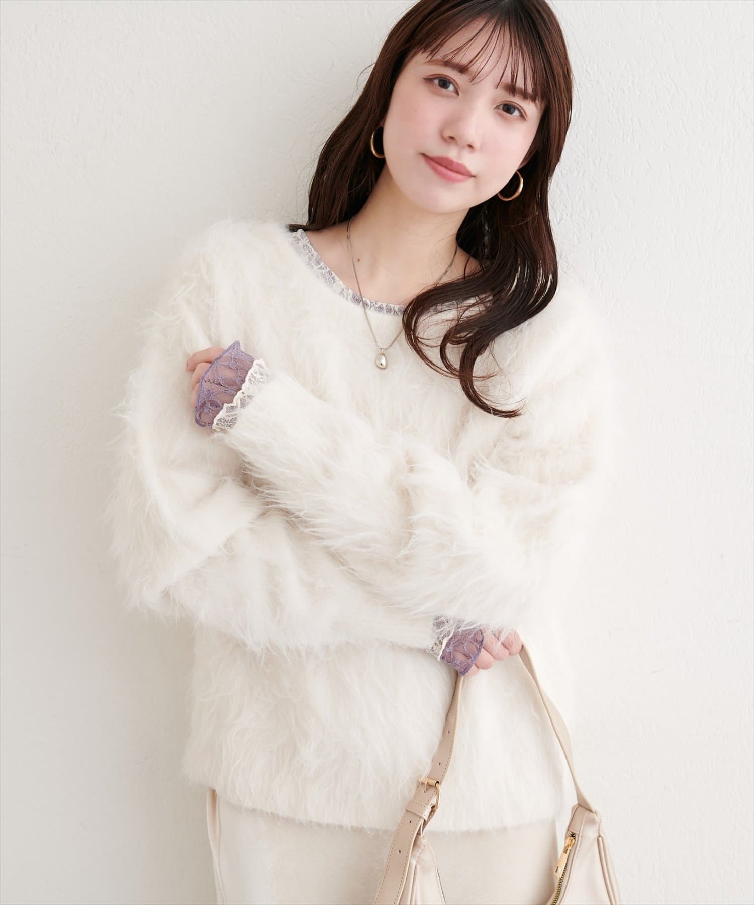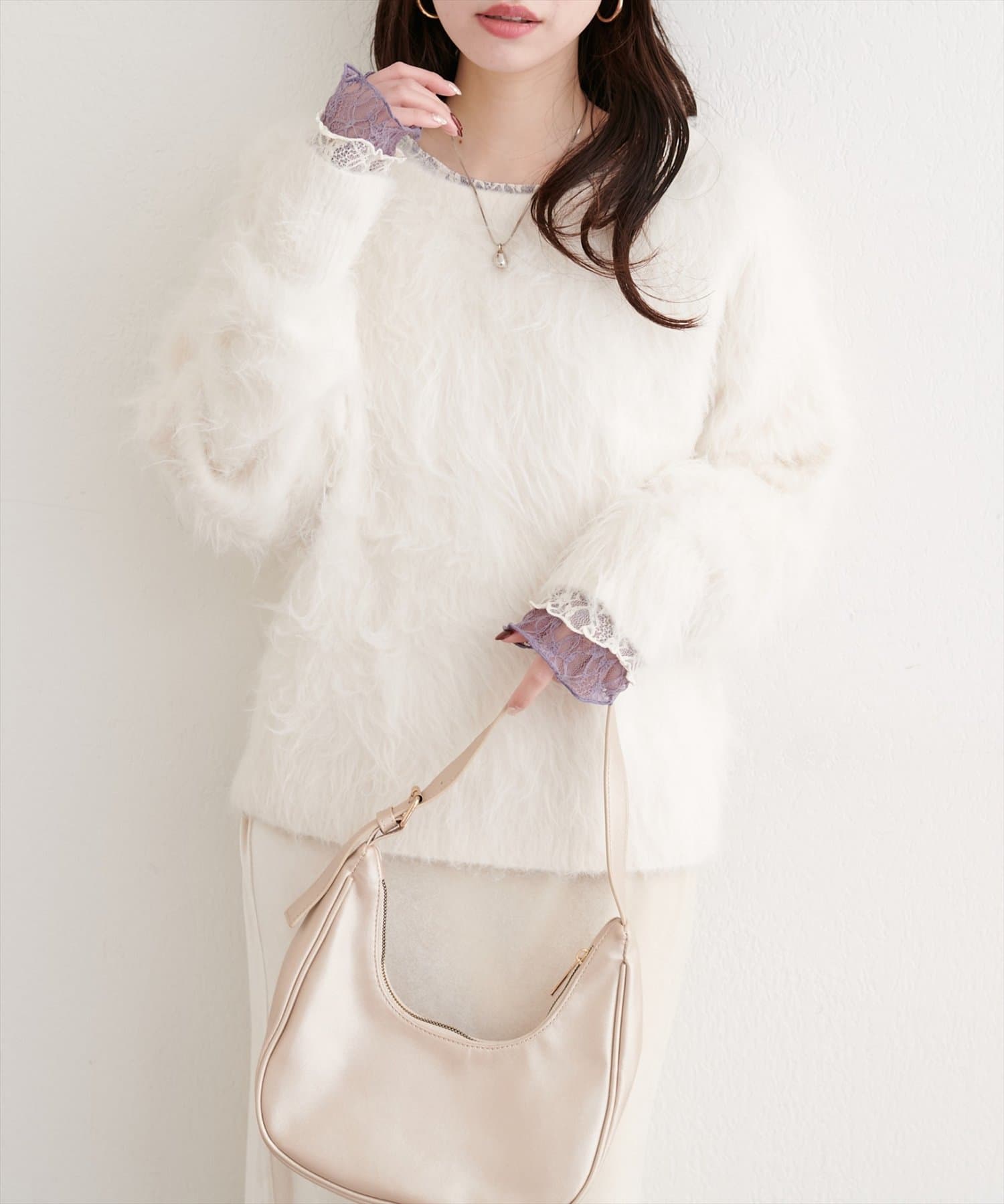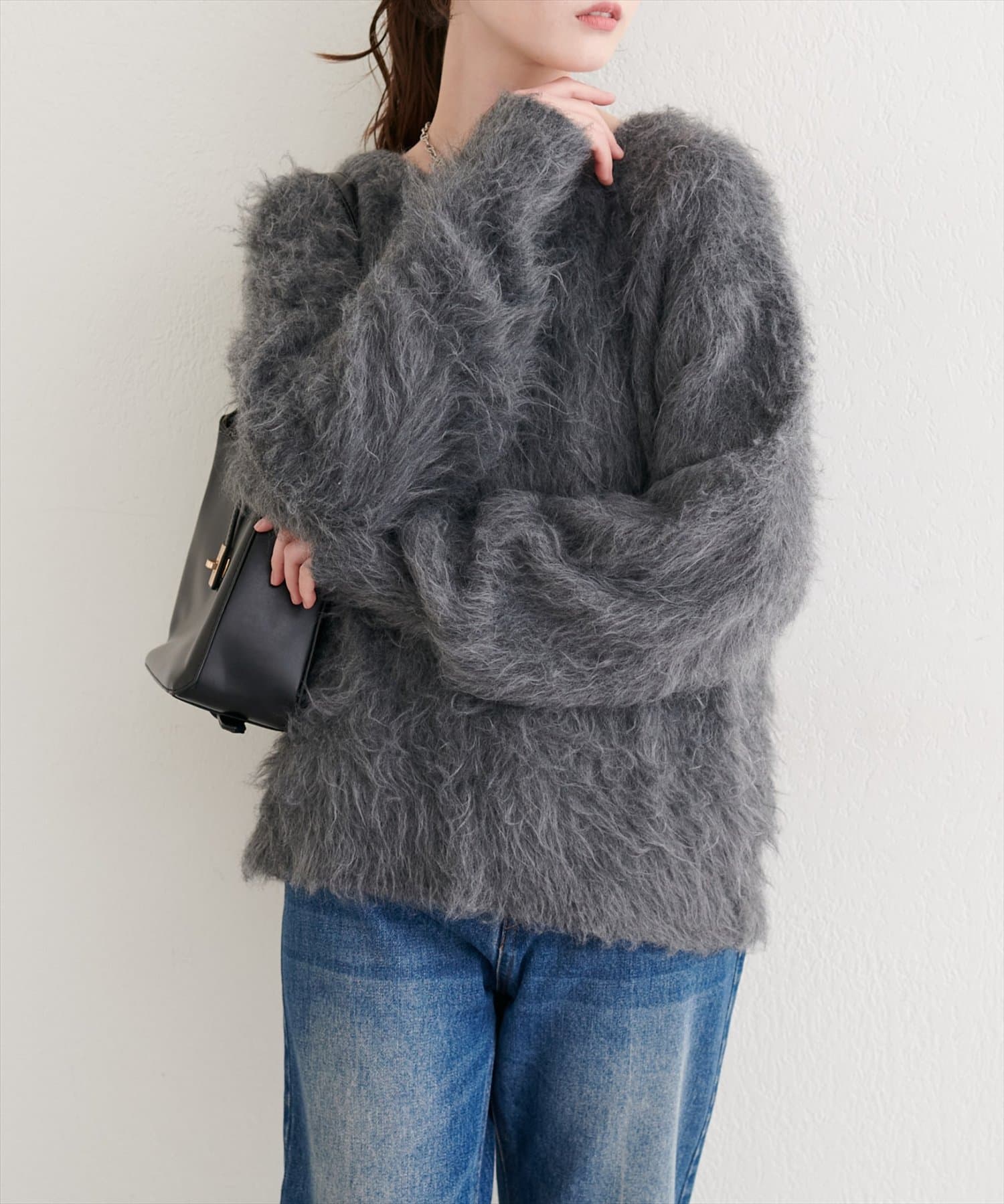 ロングフェザークルーネックニットプルオーバー