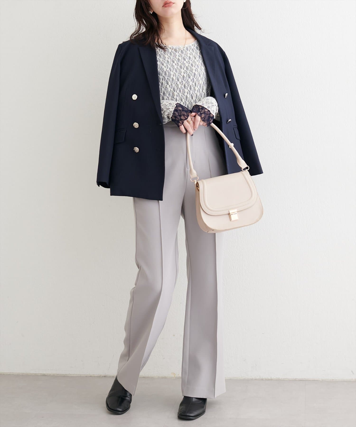 シンプルなボトムスと合わせて、トップスのデザインを引き立てるのがおすすめです。