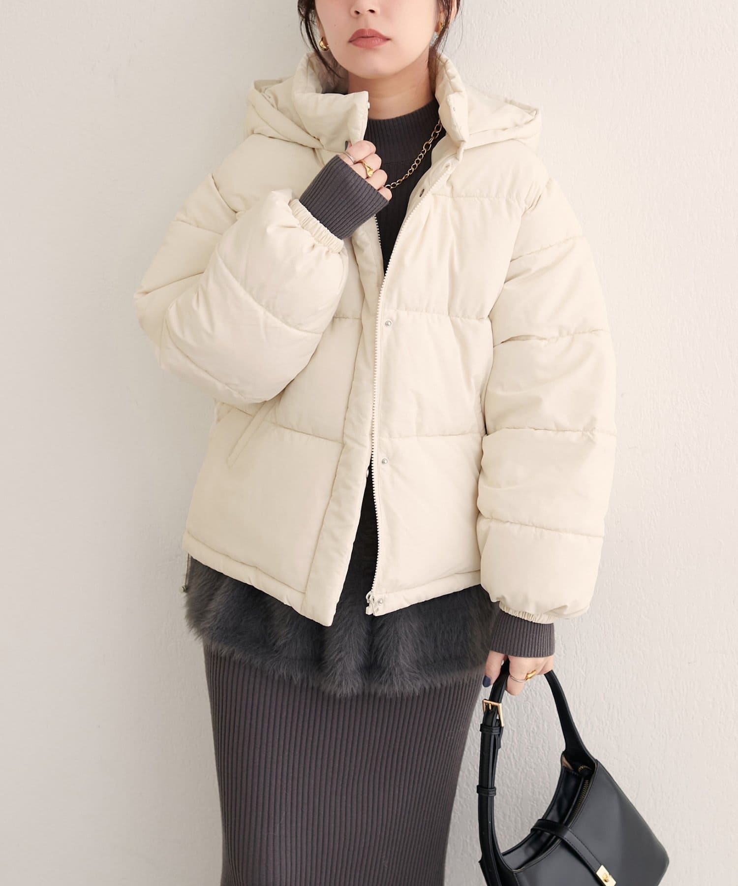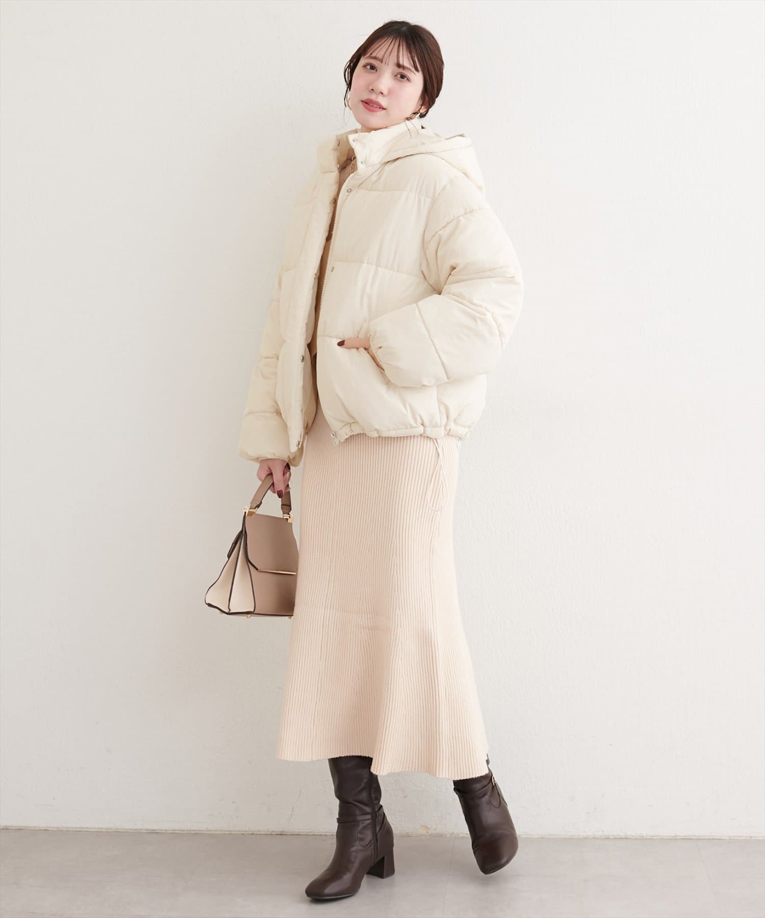 短めの丈を生かしてショートパンツにブーツを合わせたスタイリングもおすすめ。