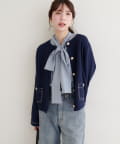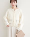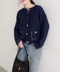 配色ステッチが目を引く、大人の遊び心を感じさせるニットジャケット。