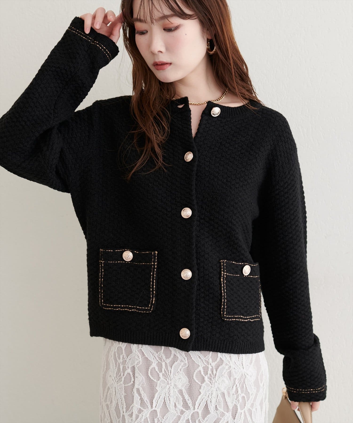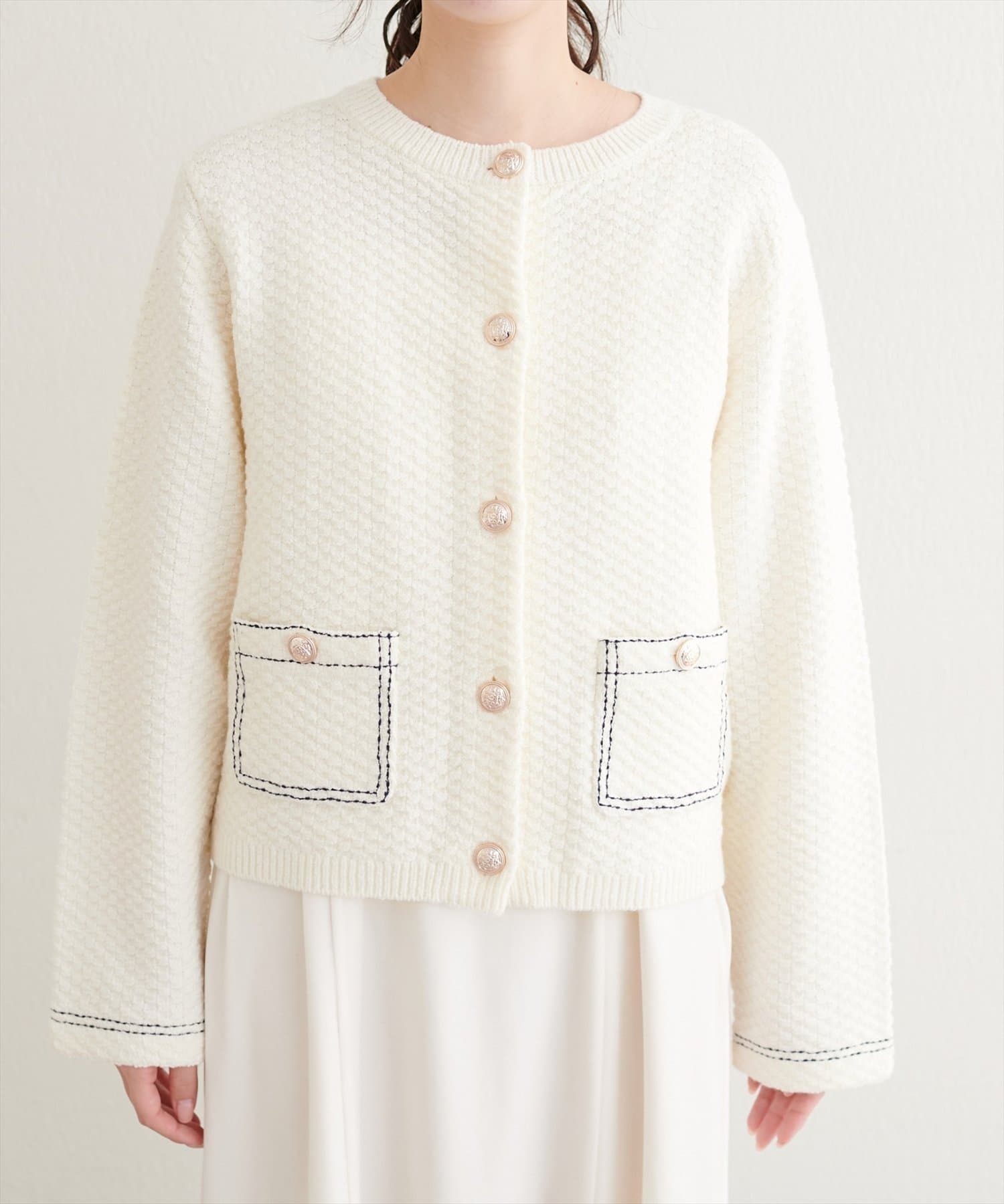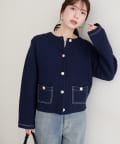 配色ステッチ入りニットジャケット