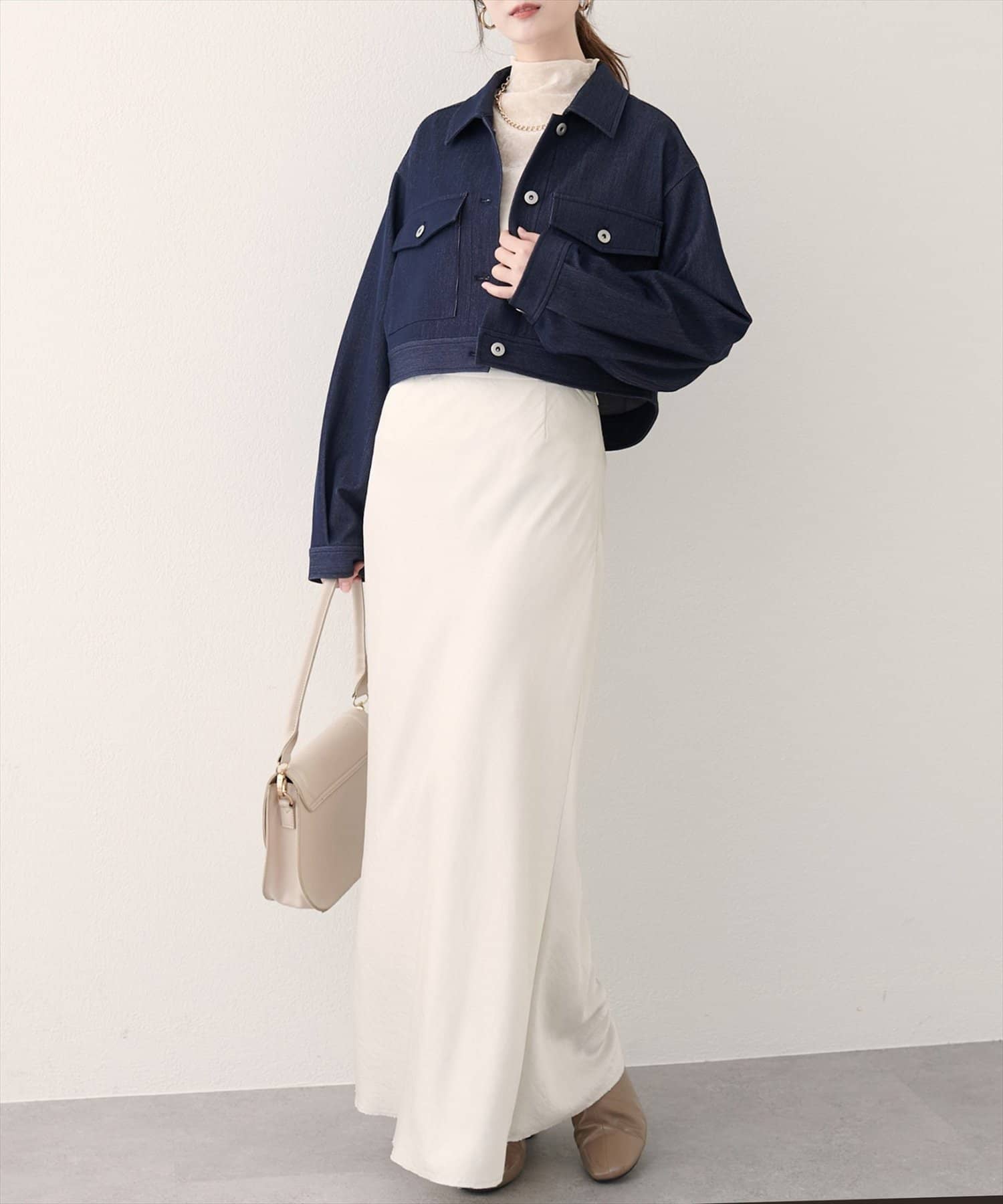 クロップド丈の絶妙なバランスが、スタイル全体を軽やかに見せてくれます。