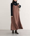 ワンピースの上から、ざっくりニットやカーディガンを羽織って、リラックス感のあるスタイリングに。