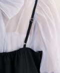 細めの肩紐が、女性らしい華奢な雰囲気を演出。