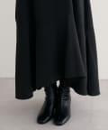 左右非対称な裾のデザインが、コーディネートに動きと個性をプラス。