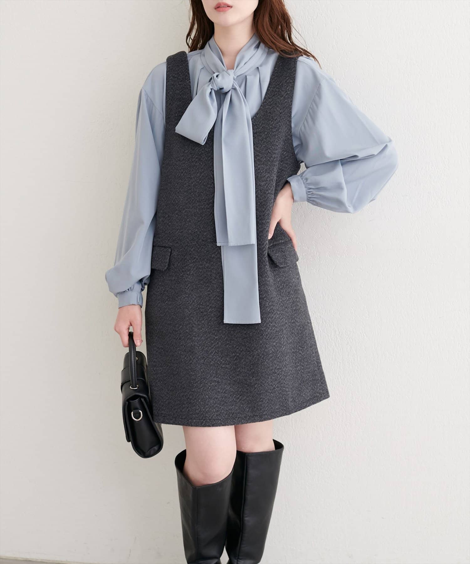 【WEB限定】杢調フェイクウールミニジャンスカ