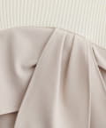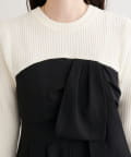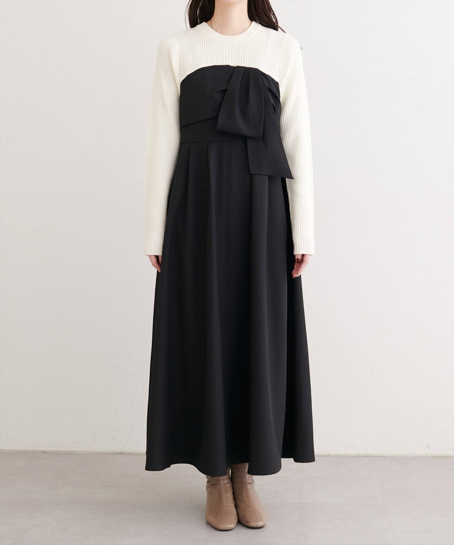 フロントのリボン風デザインは、甘くなりすぎないよう、大人っぽいシルエットで大人の女性にぴったりの一枚です。