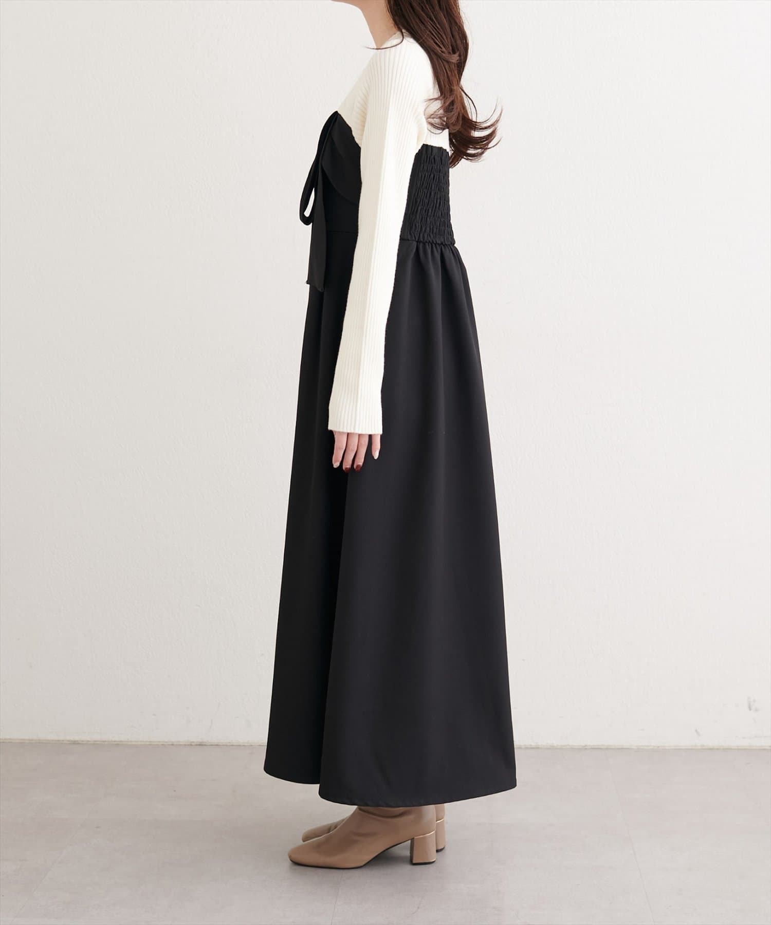 トップス部分は、リブの縦ラインが美しいニット素材を使用。