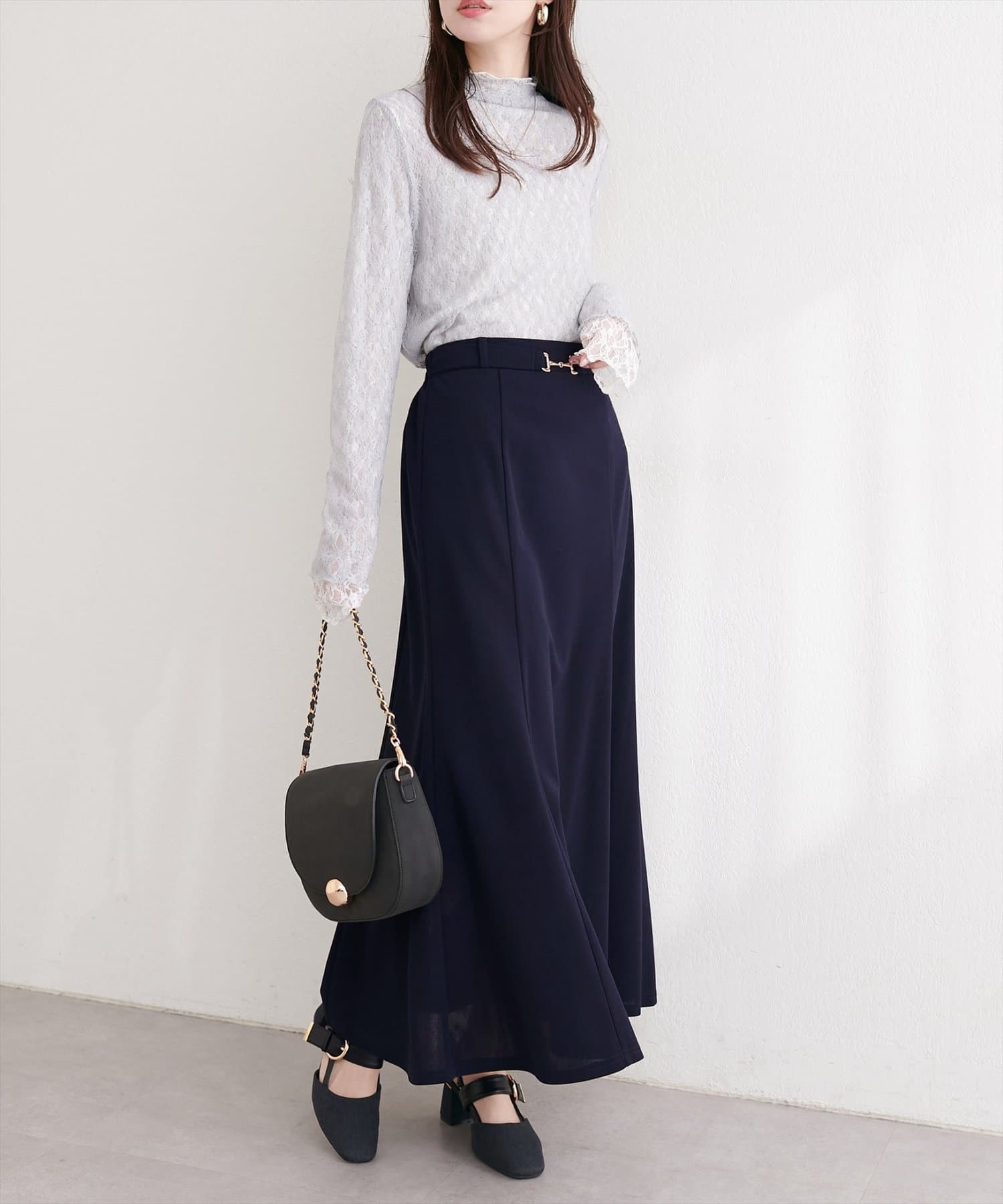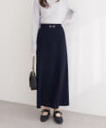ウエストにあしらわれたビット金具がポイントのスカート。