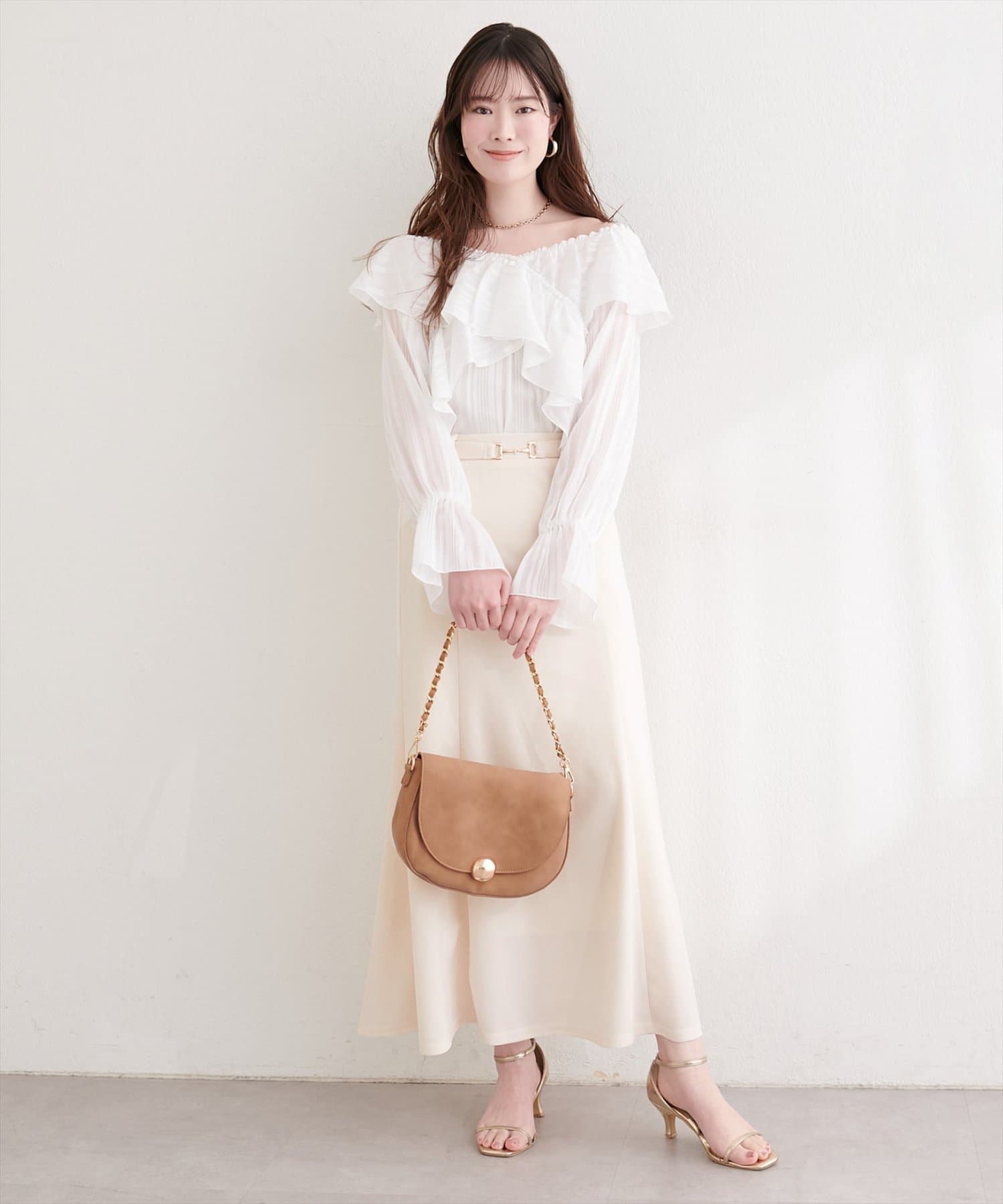 クラシカルな雰囲気を添え、シンプルなスカートに華やかさをプラスします。