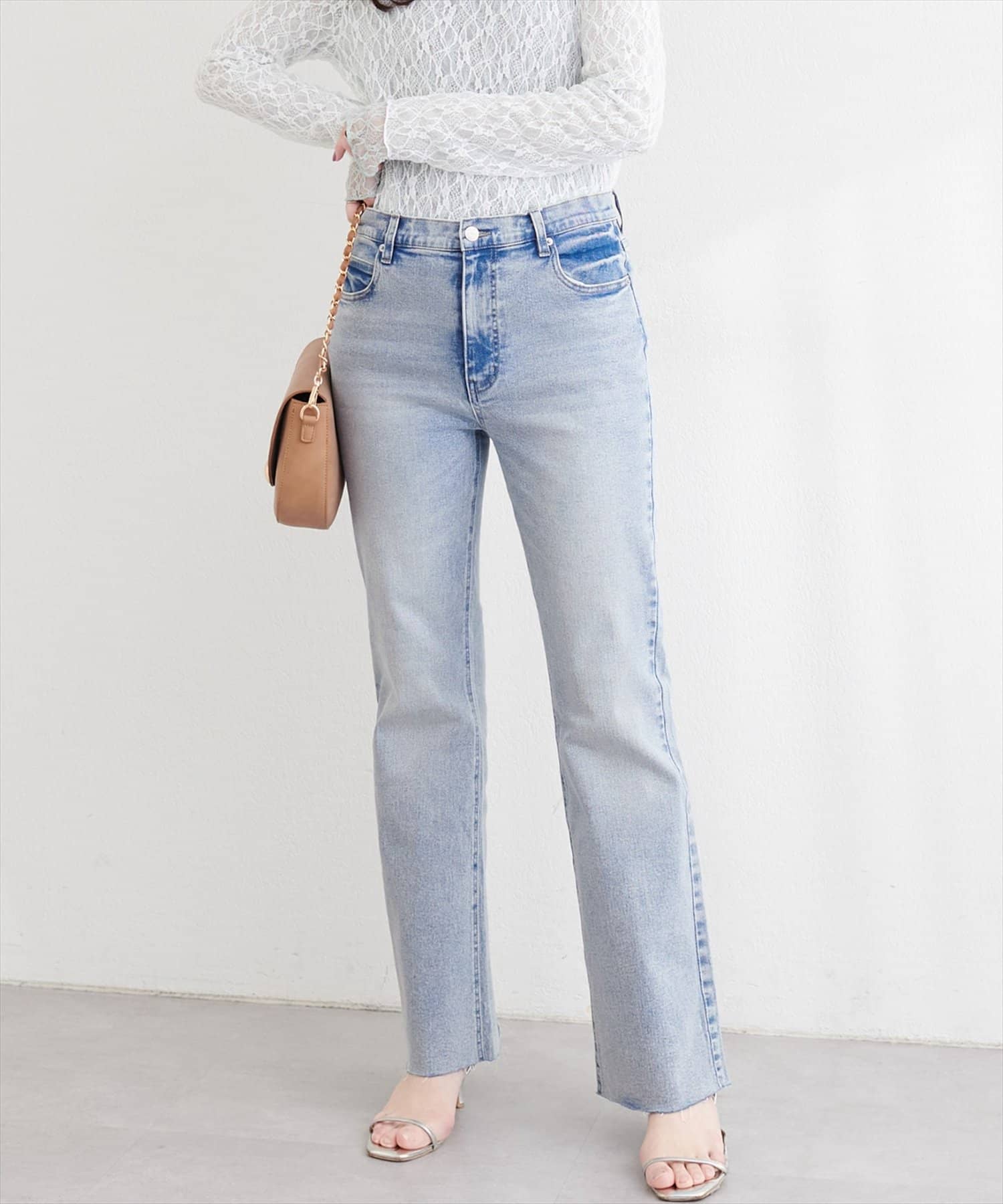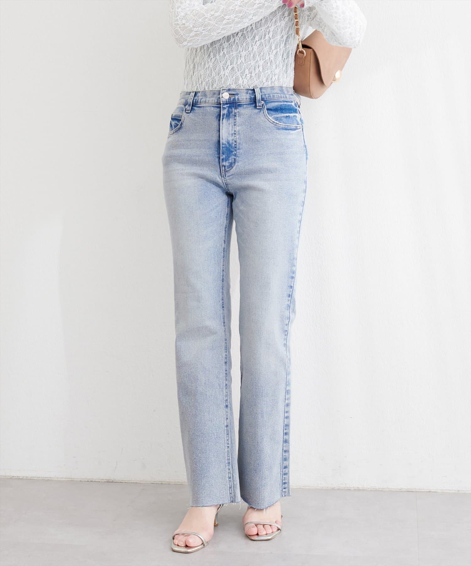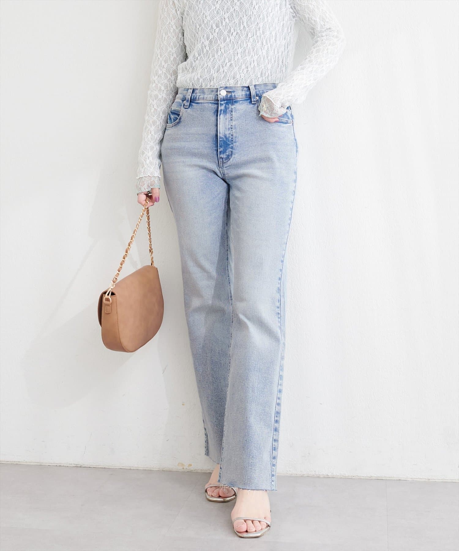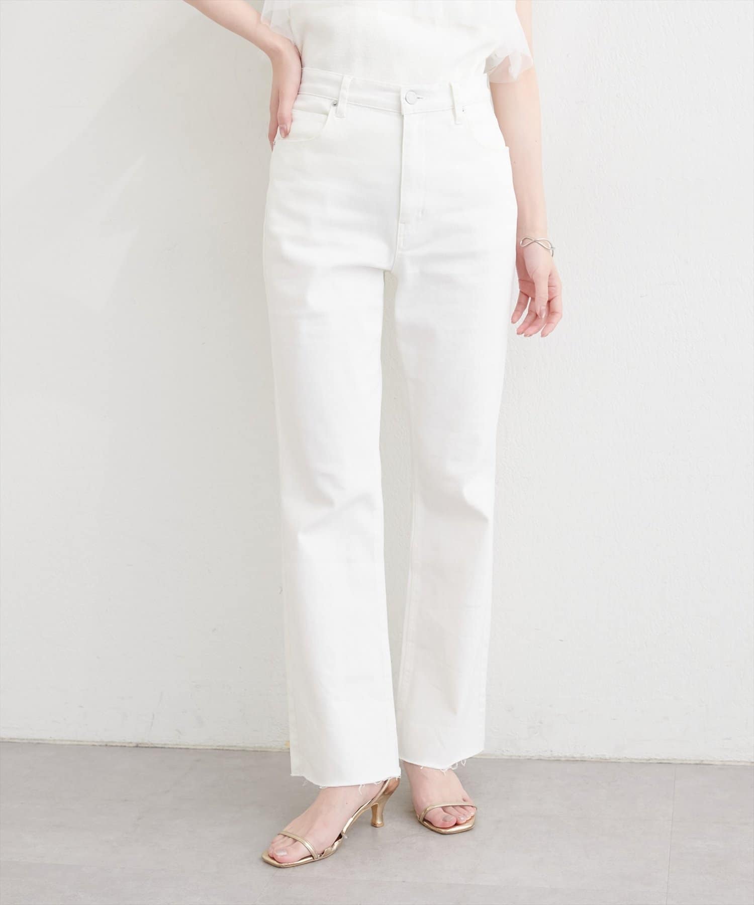 どんなトップスにも合わせやすい、すっきりとしたストレートシルエット。