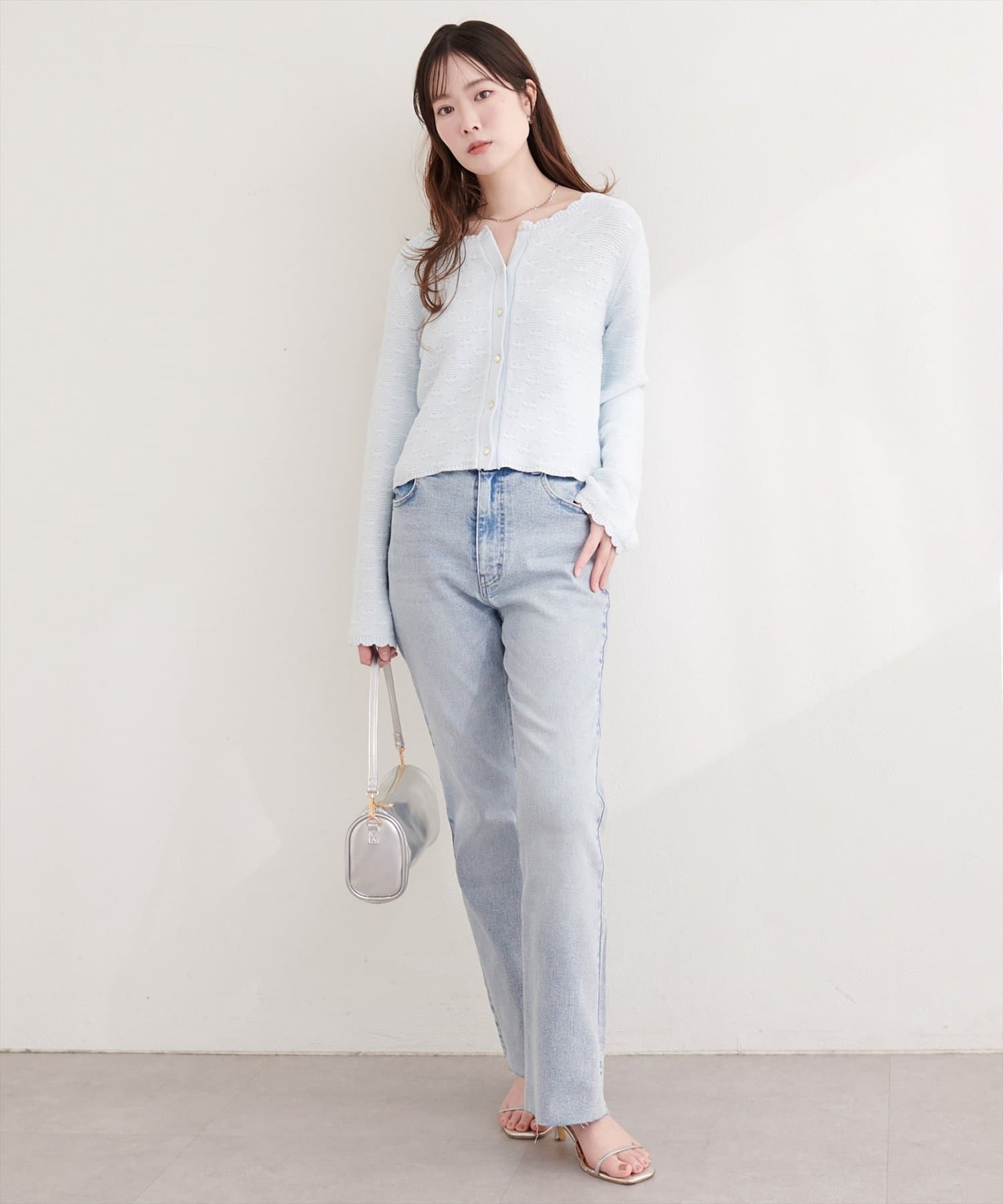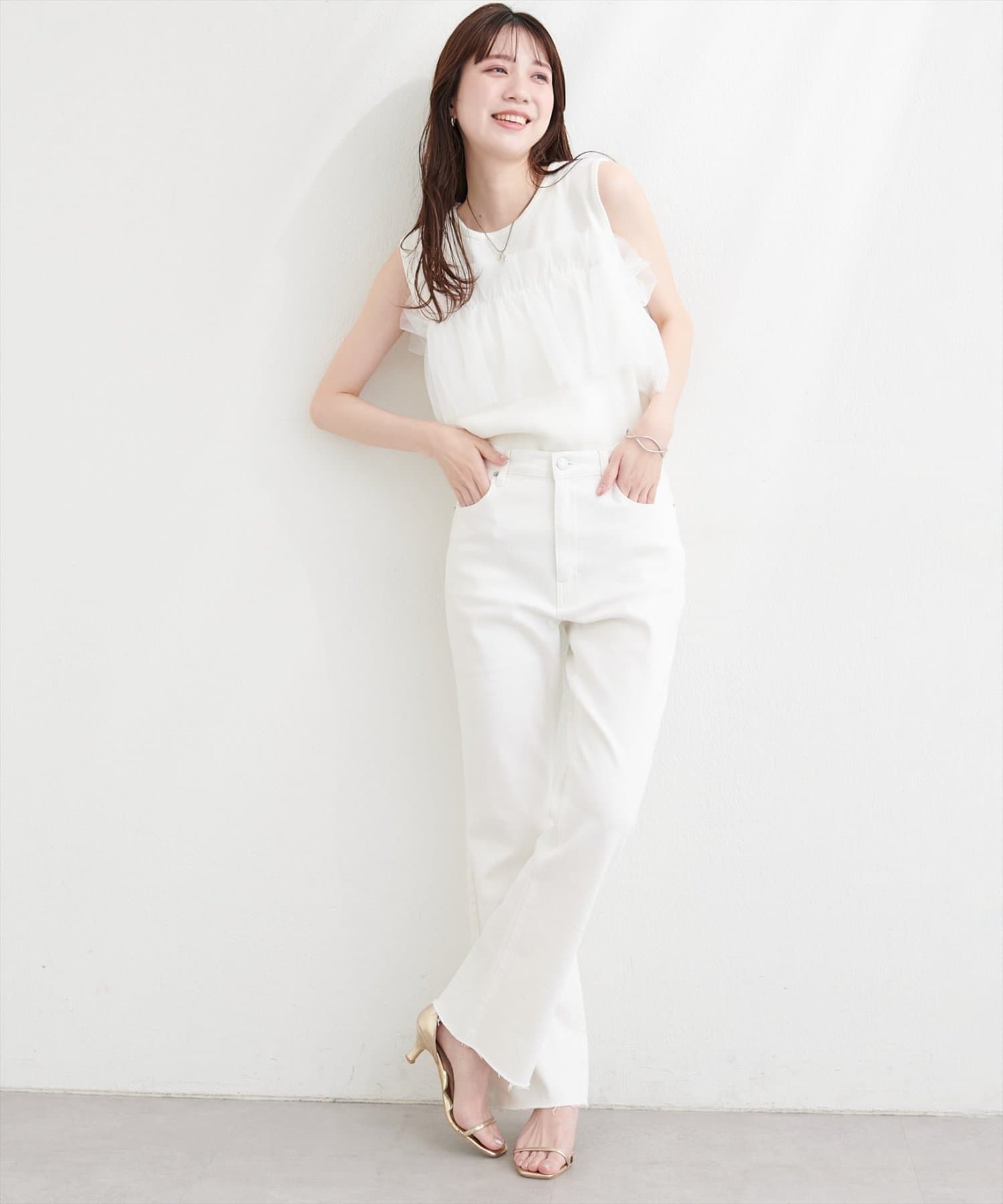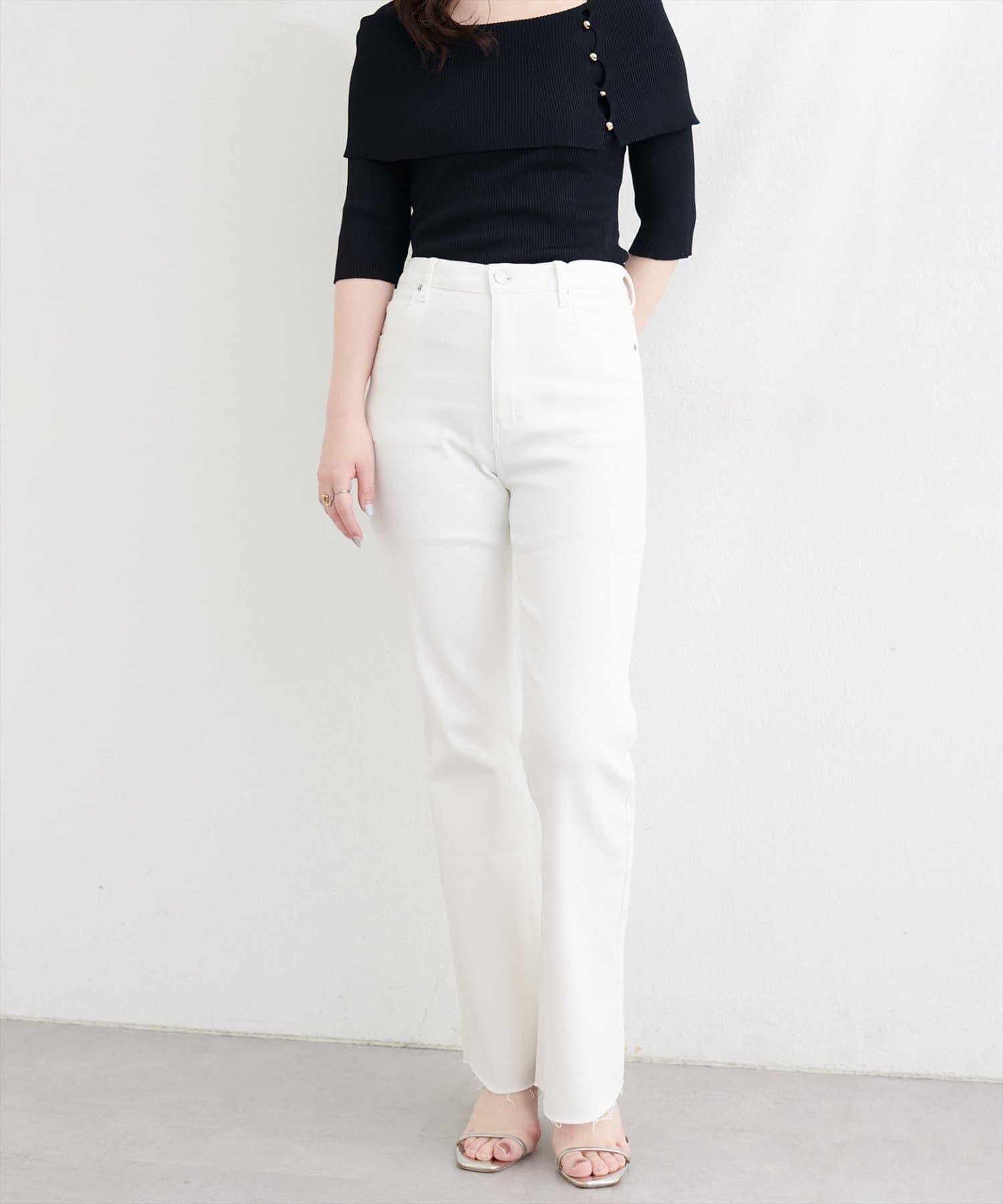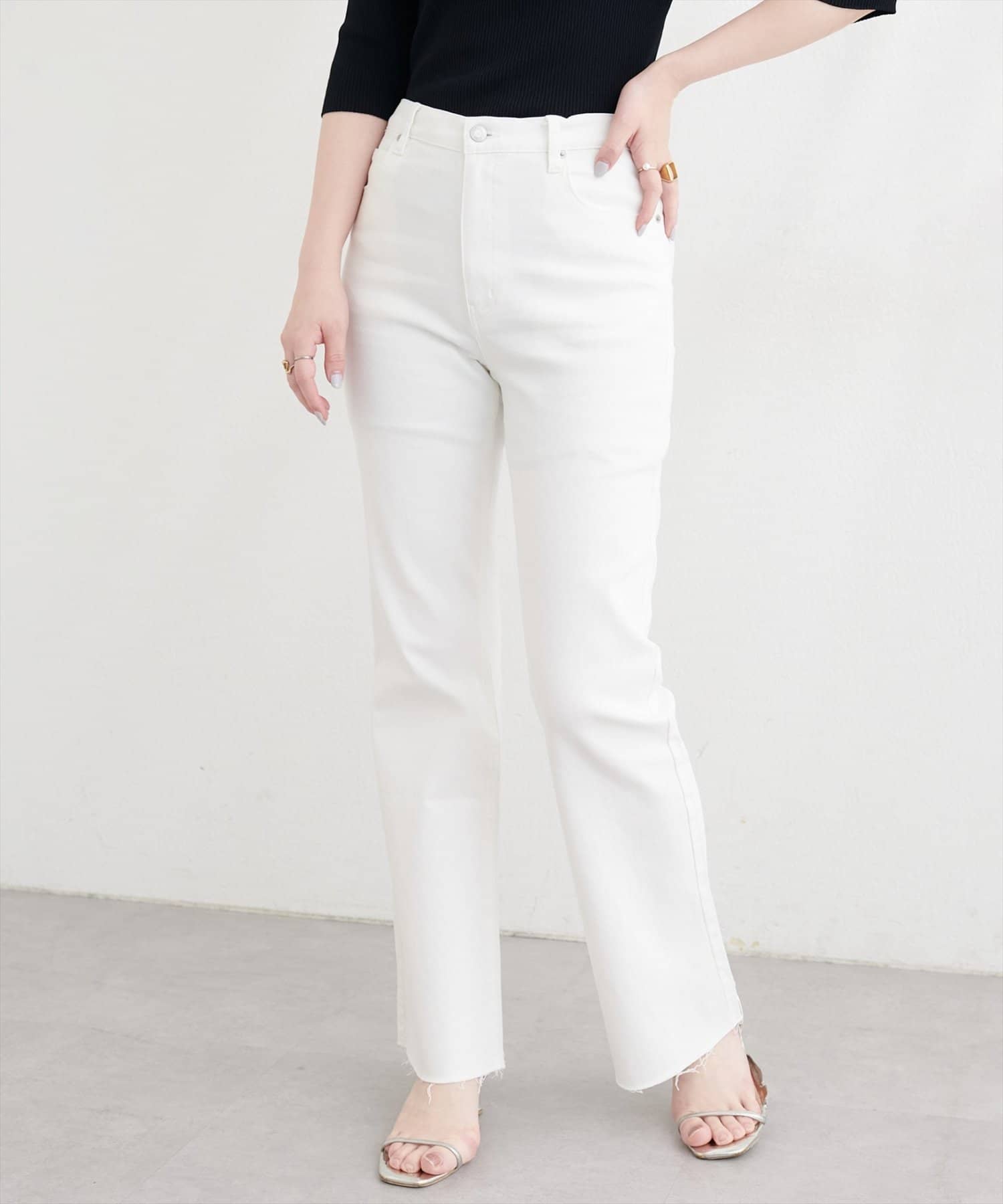 どんなトップスにも合わせやすい、すっきりとしたストレートシルエット。