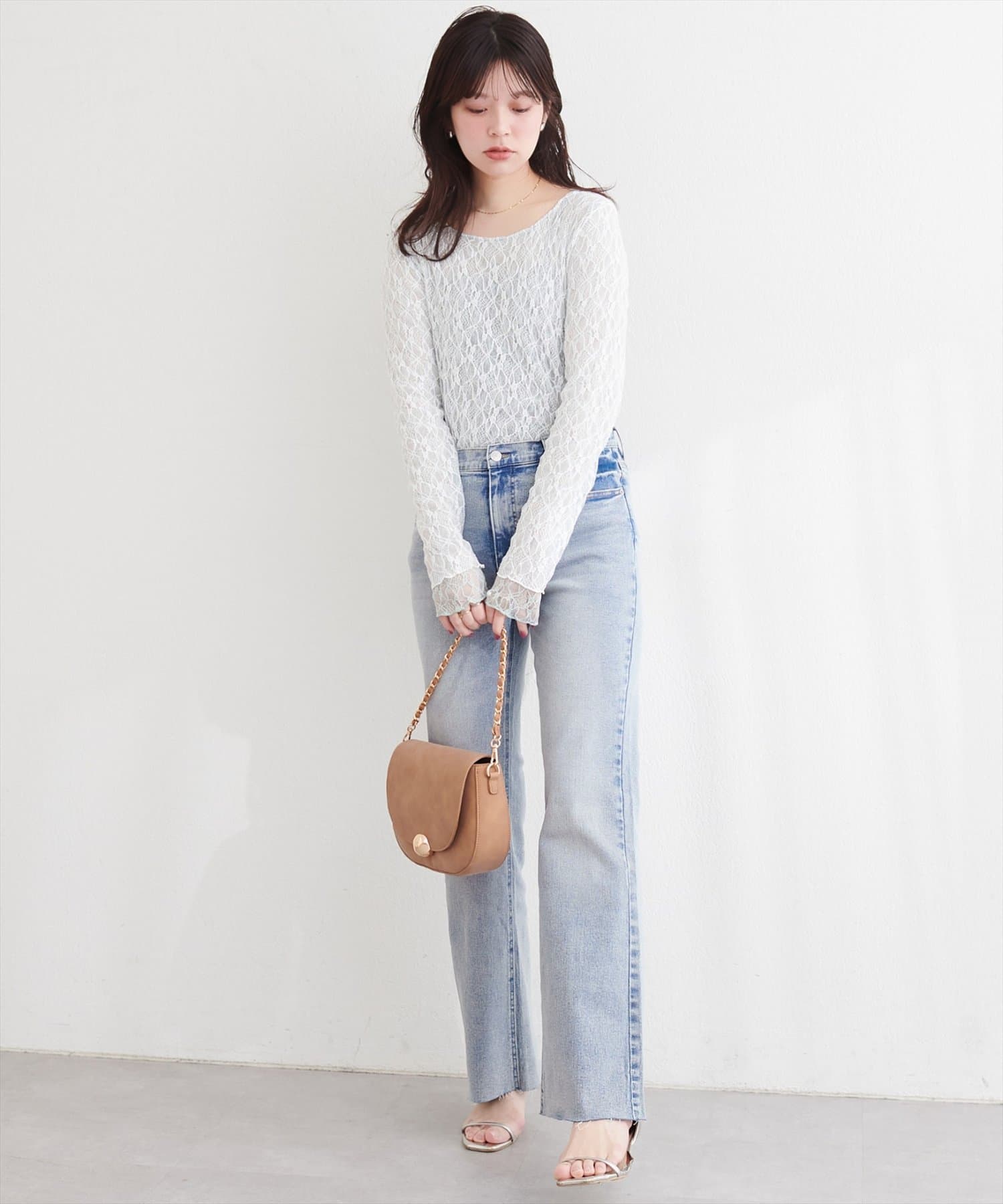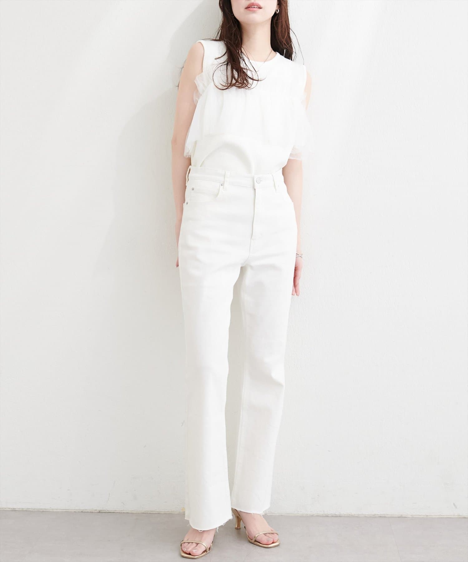 ショート丈トップスや、オーバーサイズのトップスともバランスが取りやすく、幅広いスタイリングに対応可能。