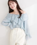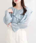 • natural couture(ナチュラルクチュール) ランダムシアーストライプクロスフリルブラウス