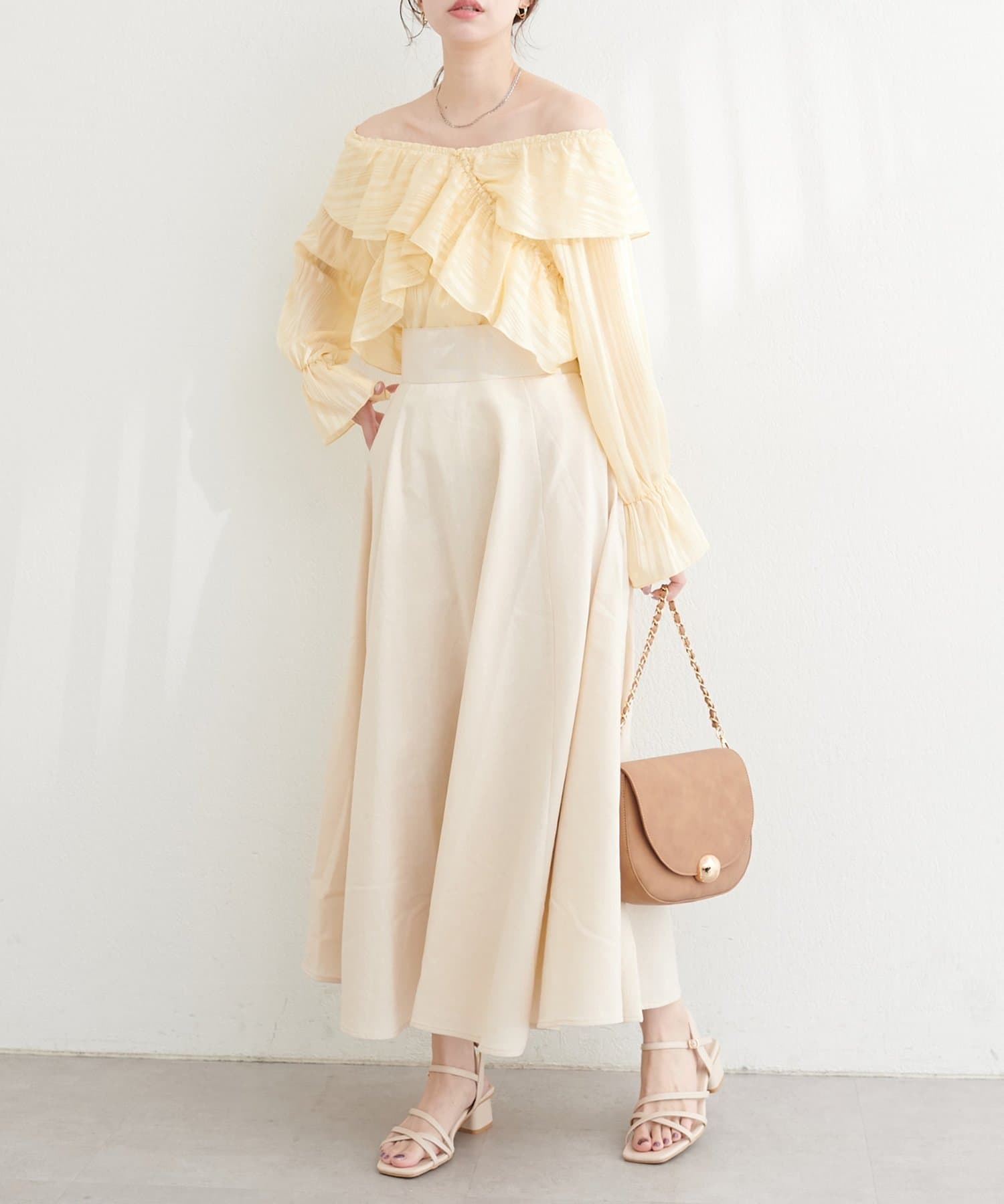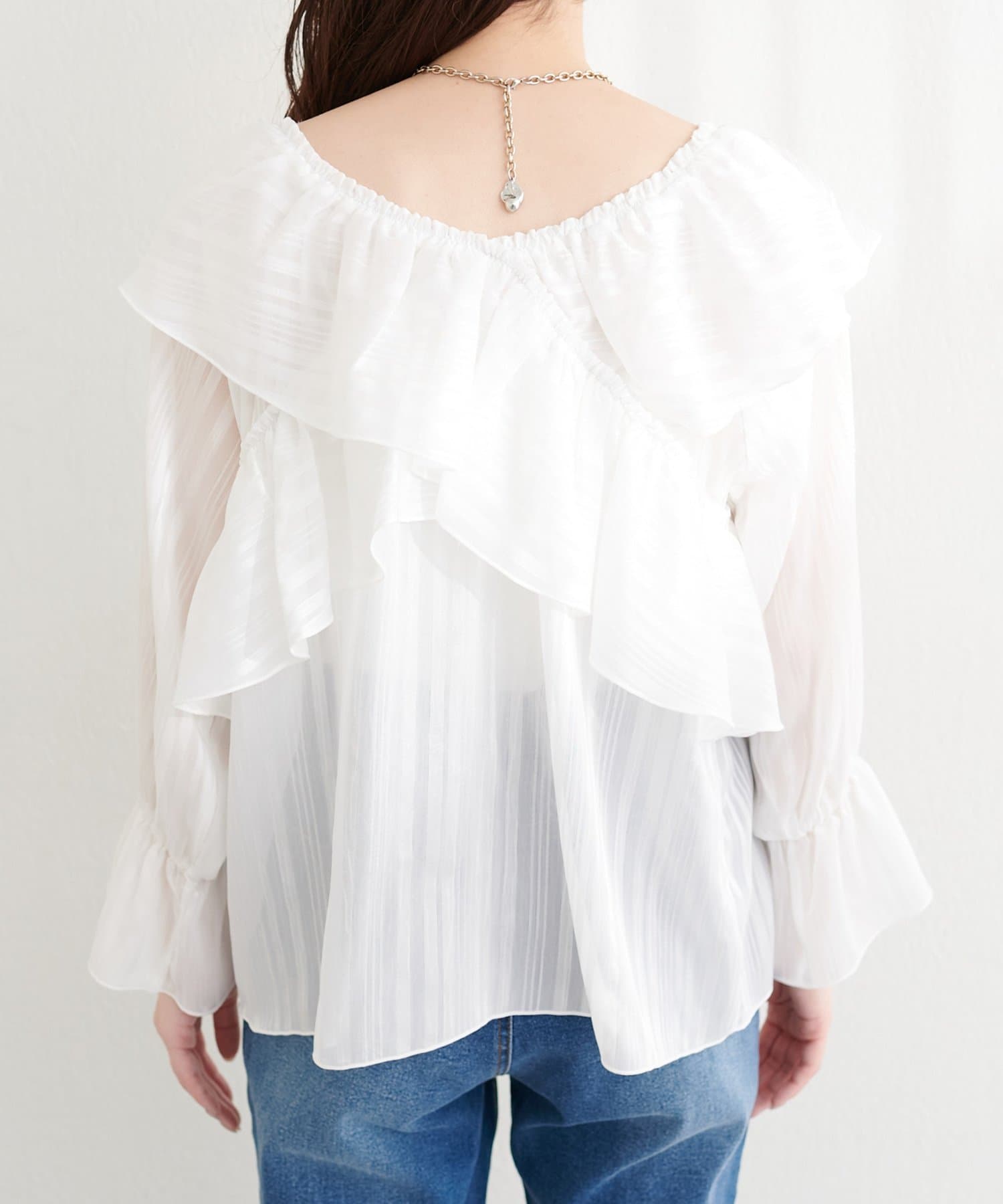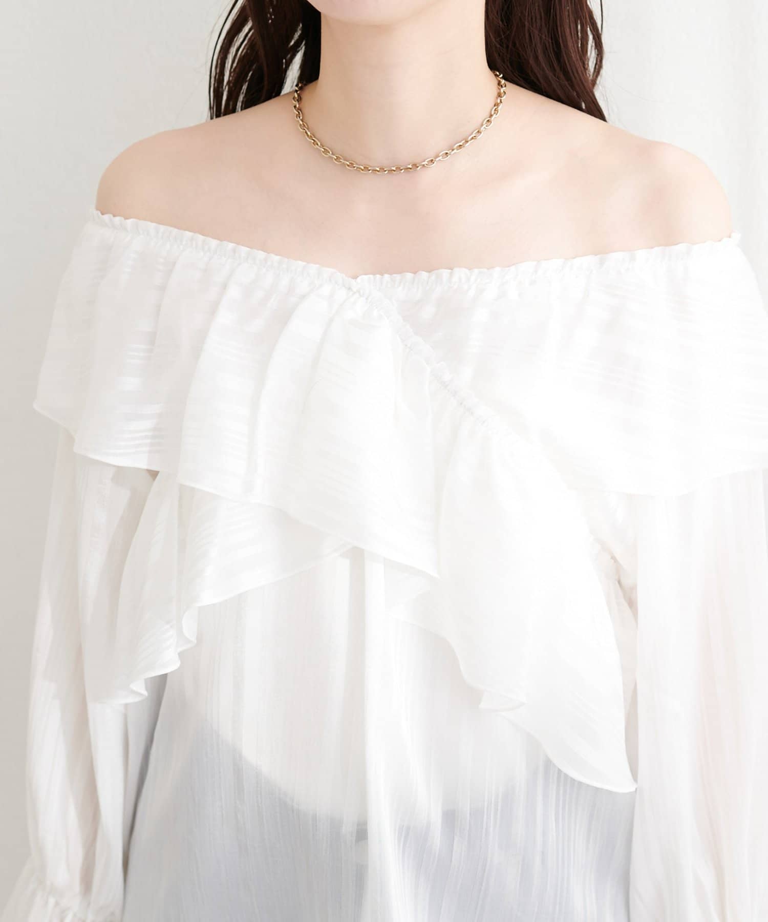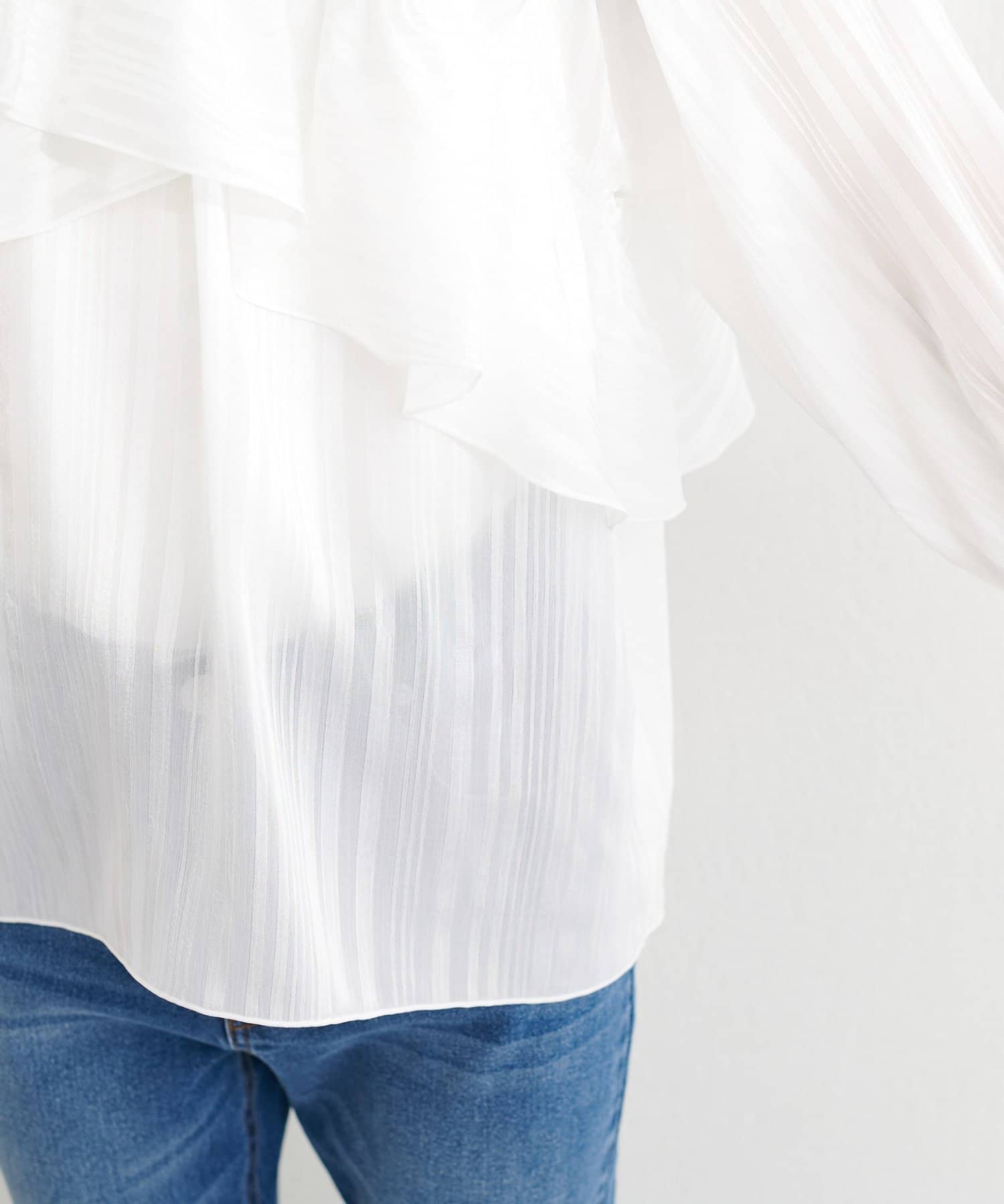 シアー素材ならではの透け感が、涼しげで軽やかな印象を与えます。