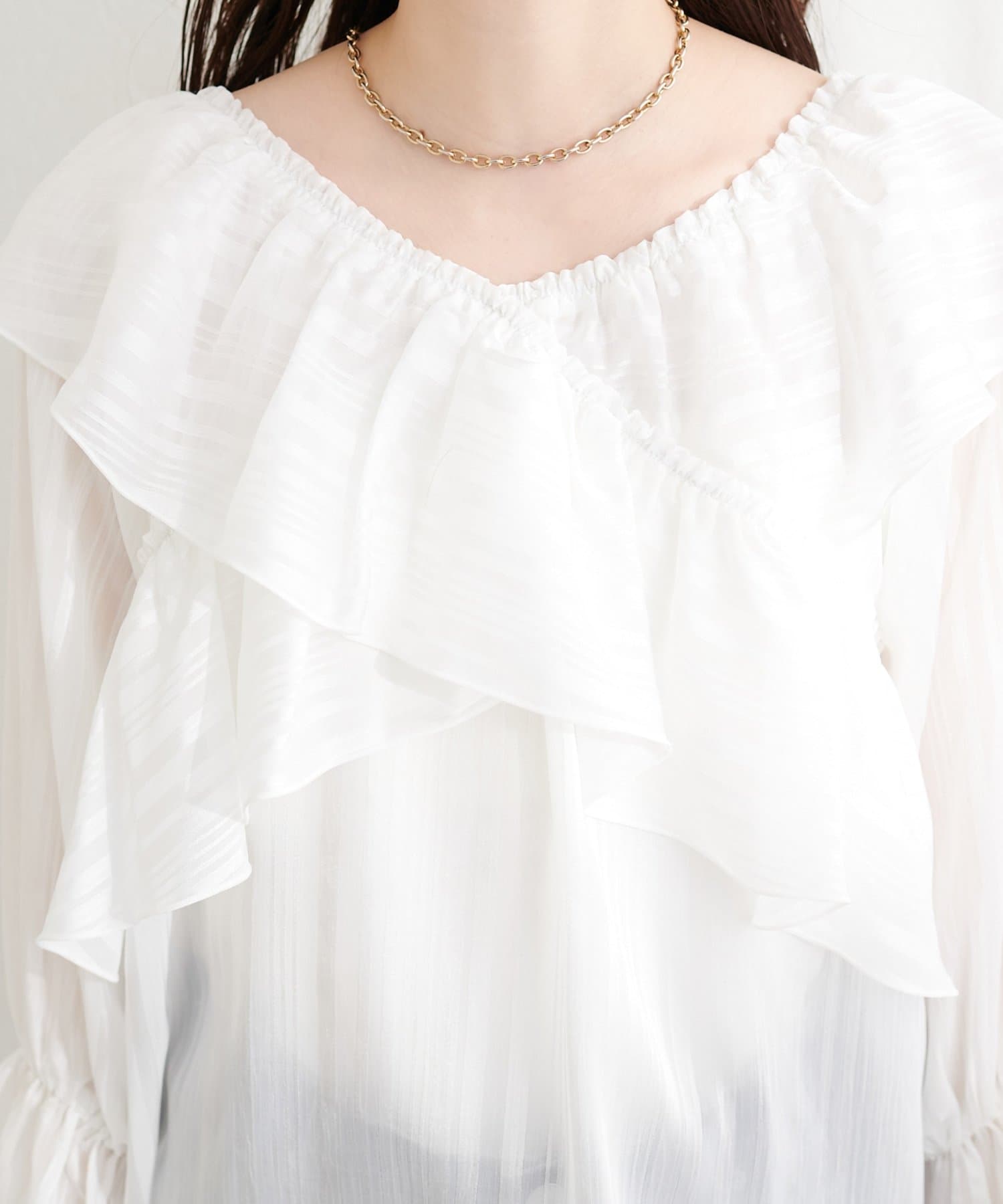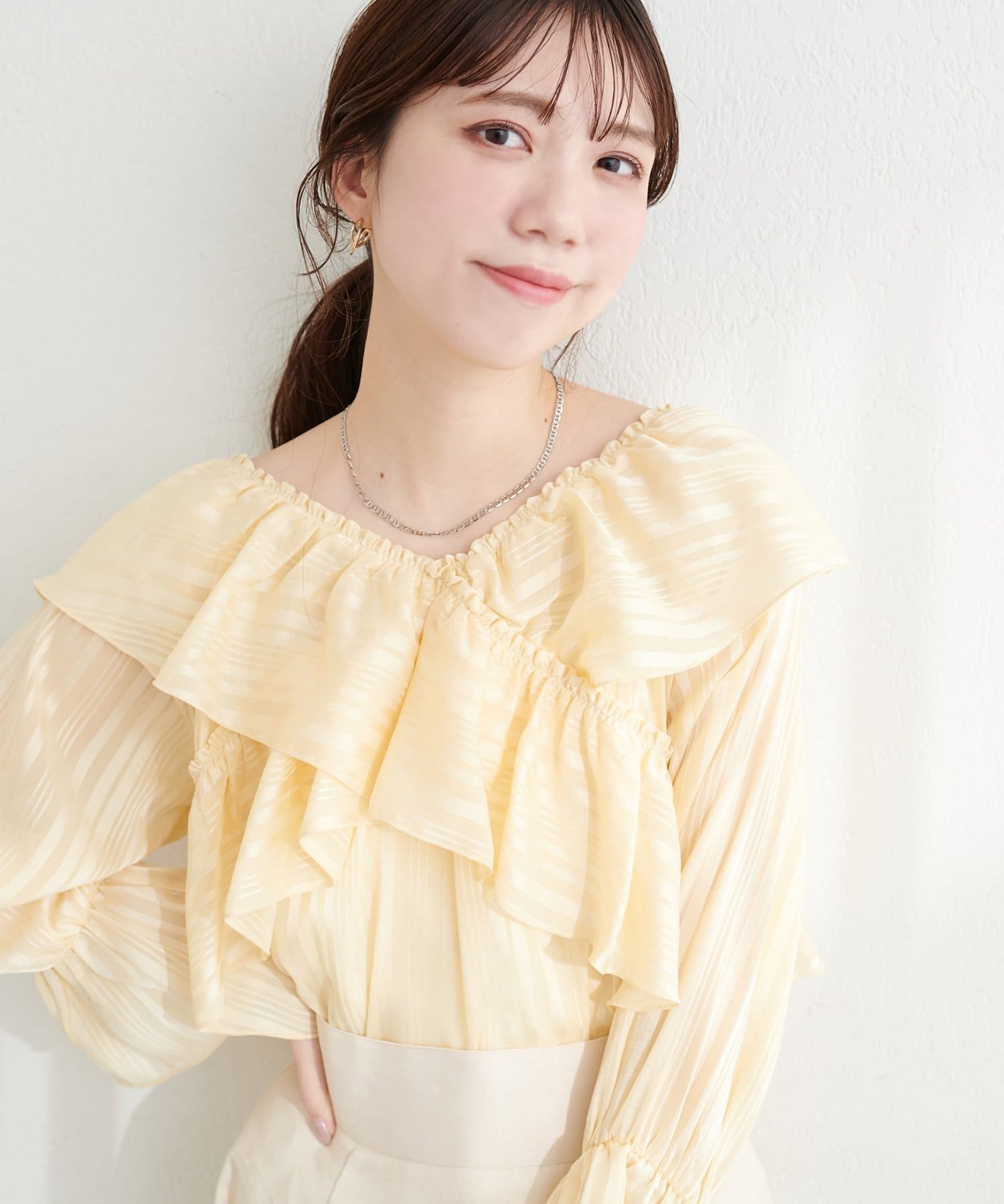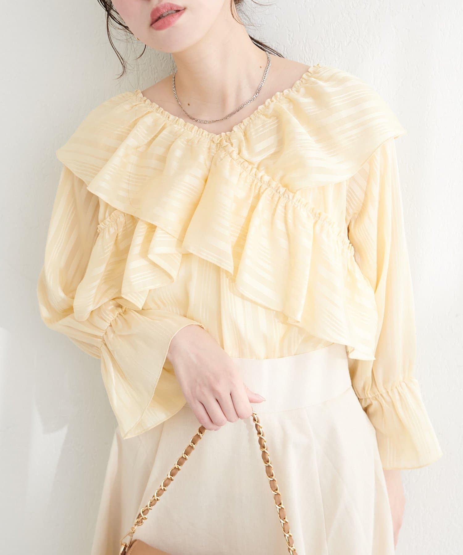 甘すぎない、大人の女性に似合う上品なフリル使いがポイント。