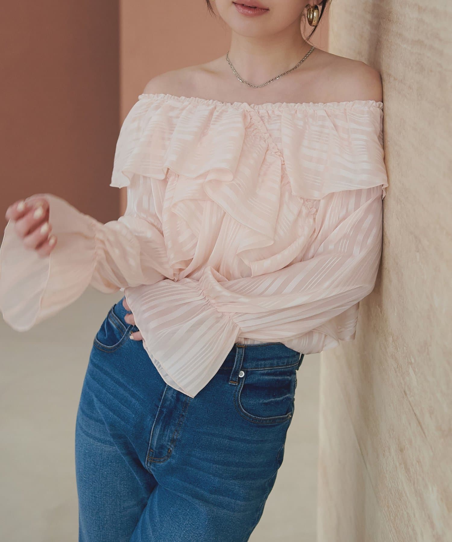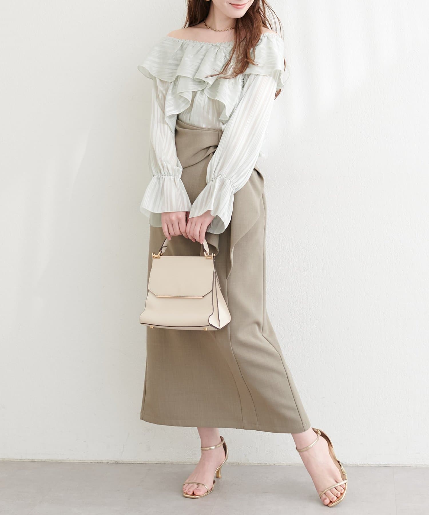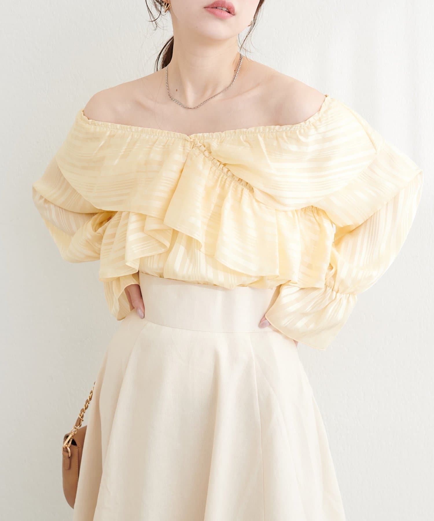甘すぎない、大人の女性に似合う上品なフリル使いがポイント。