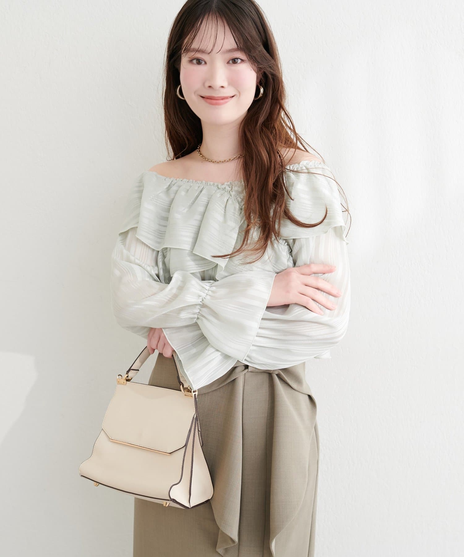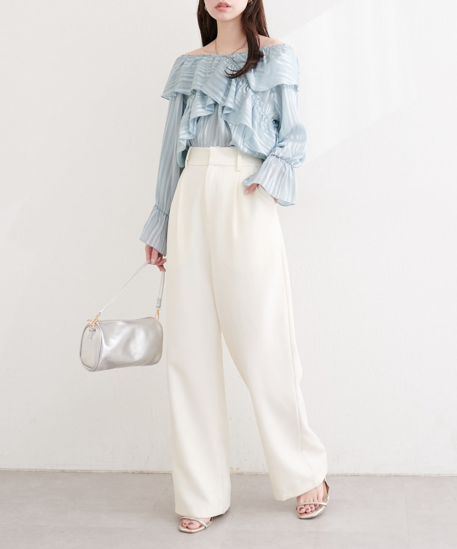 袖口にもフリルを施し、フェミニンな雰囲気をプラスしました。