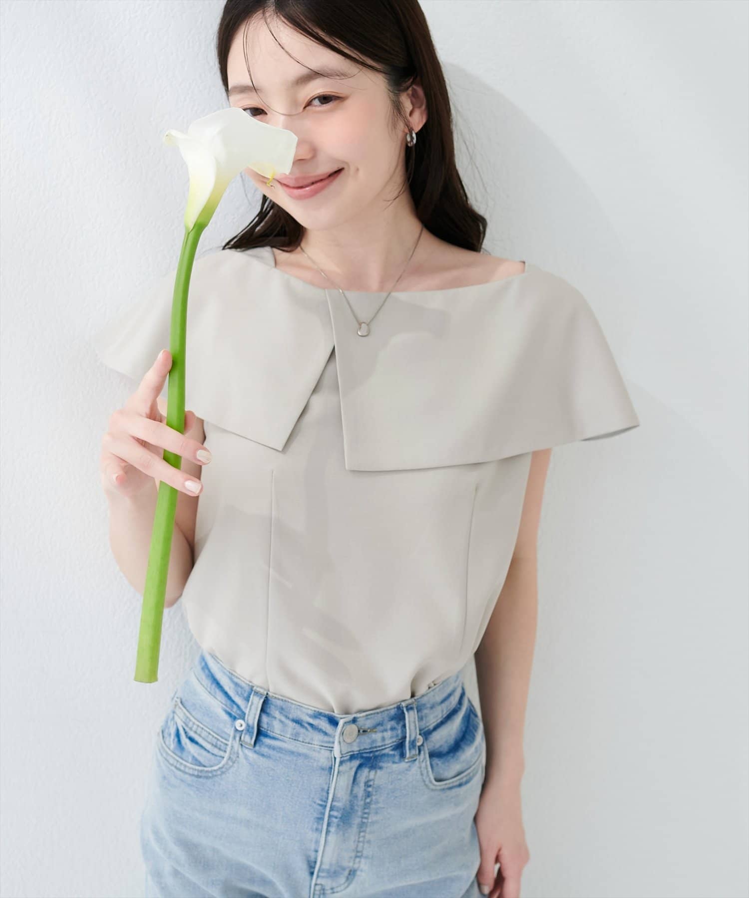 大きなアシメ衿が肩を覆ってくれて肩周りが気にならない優秀アイテムです。