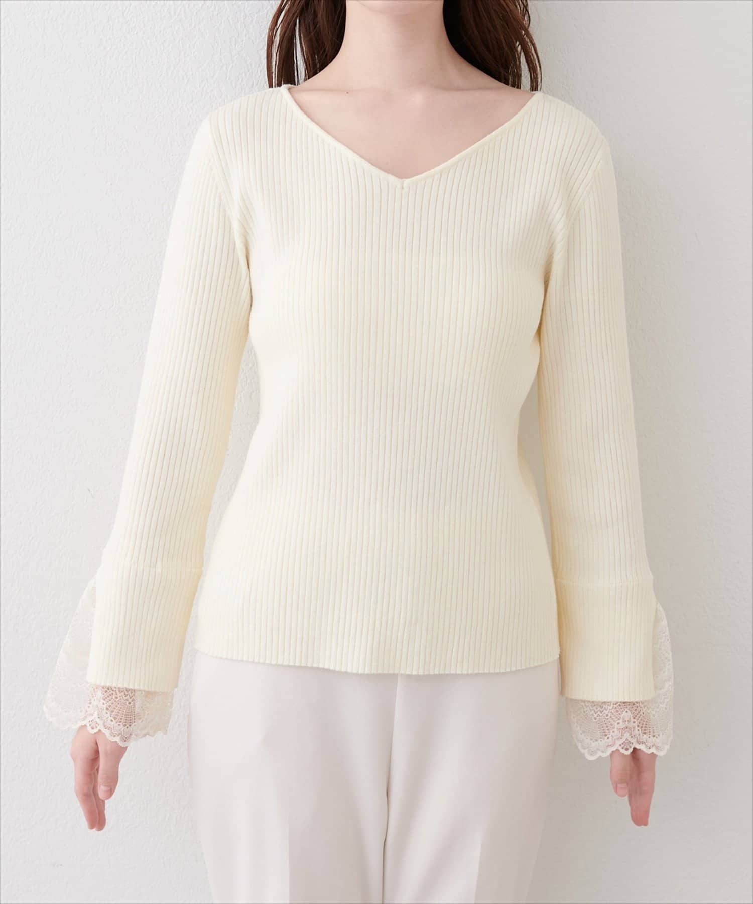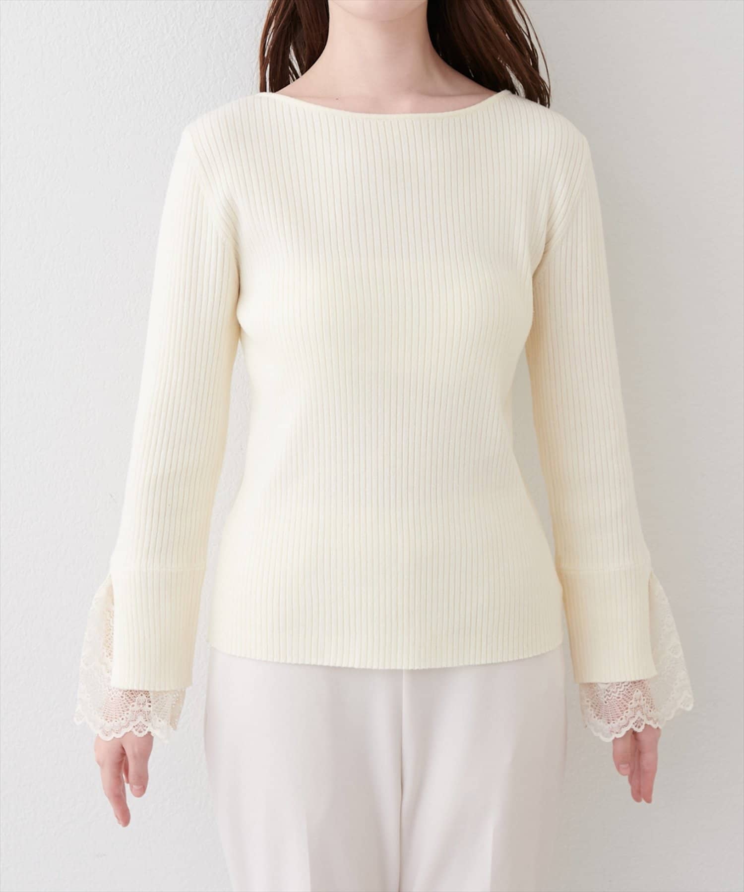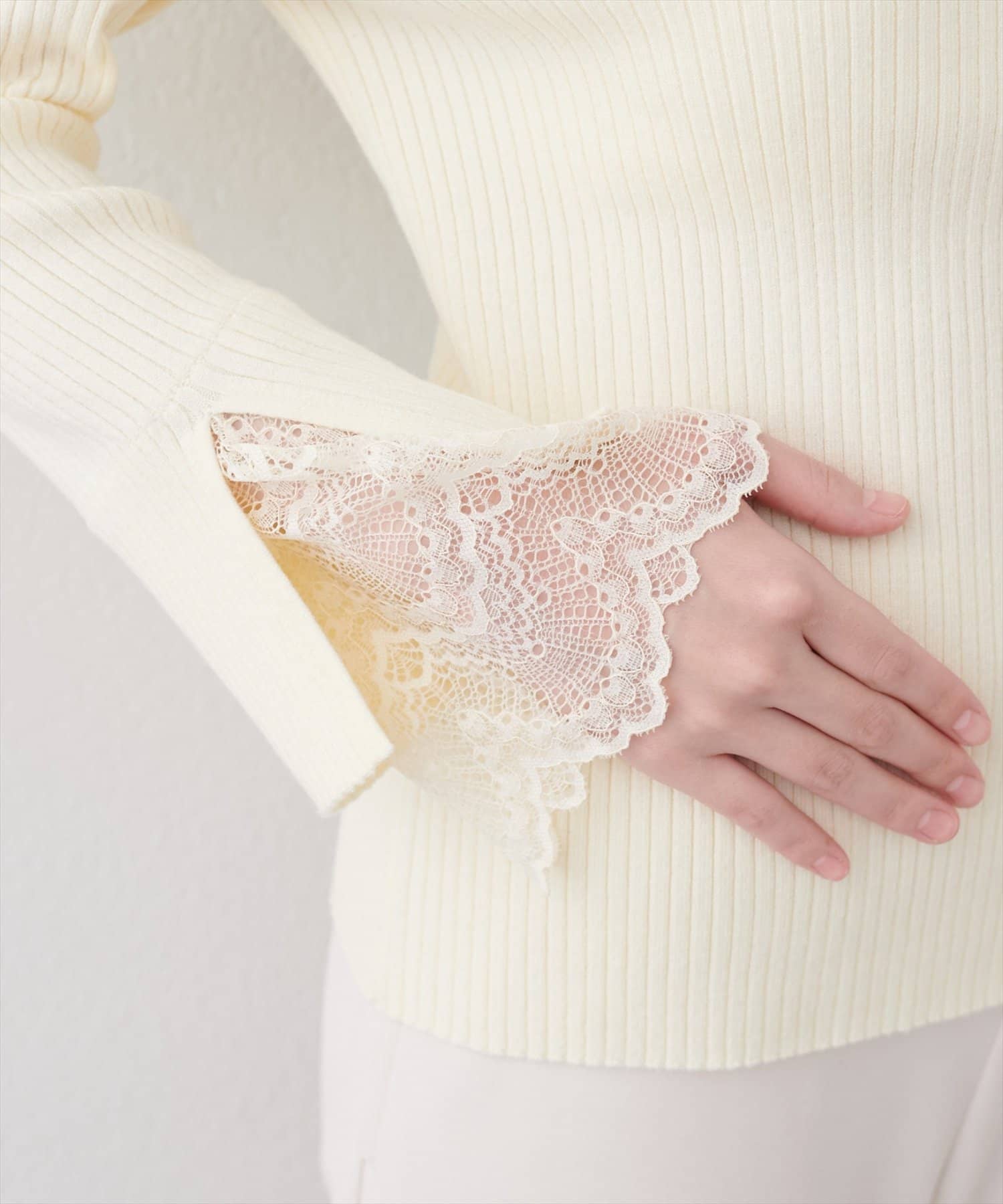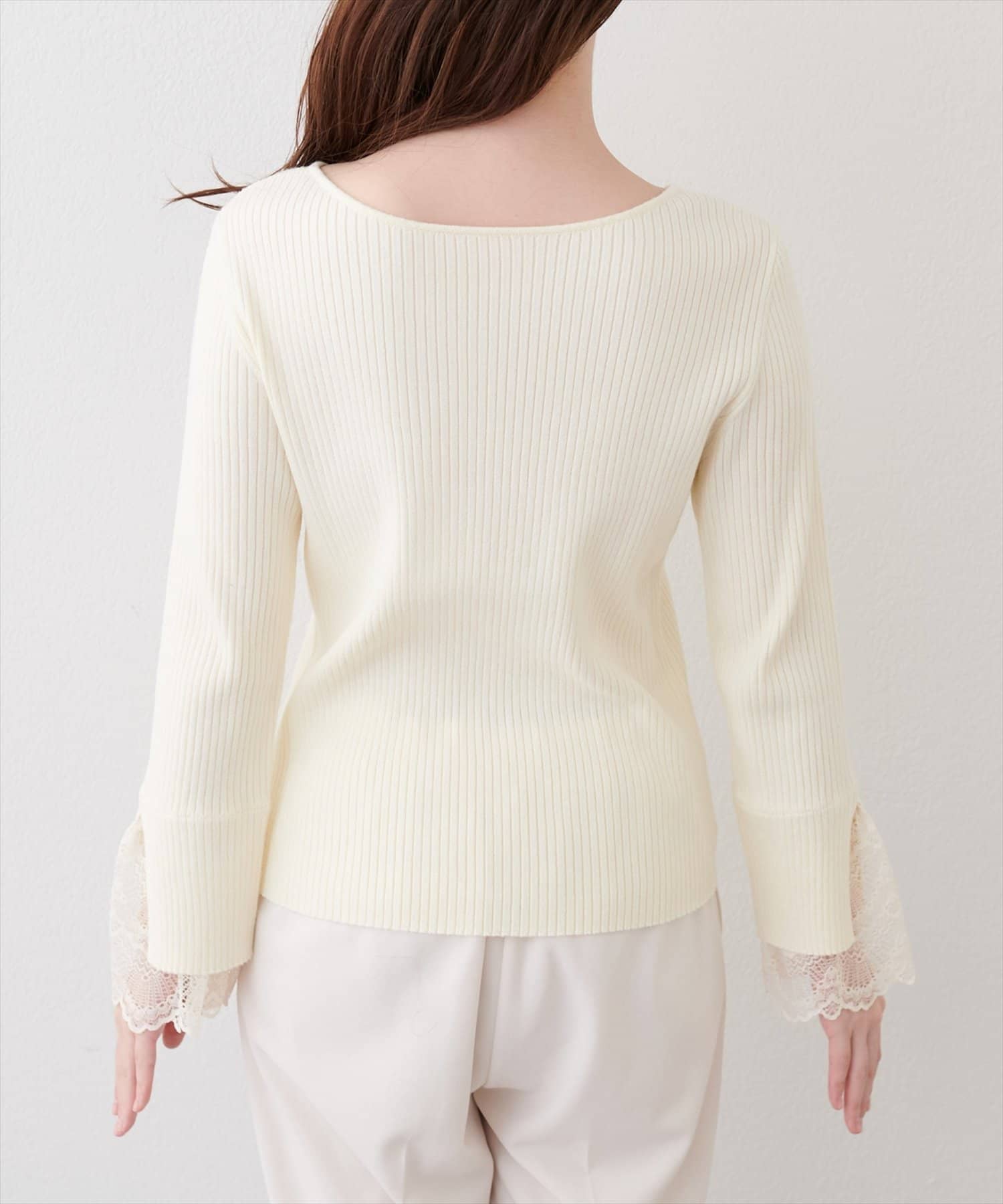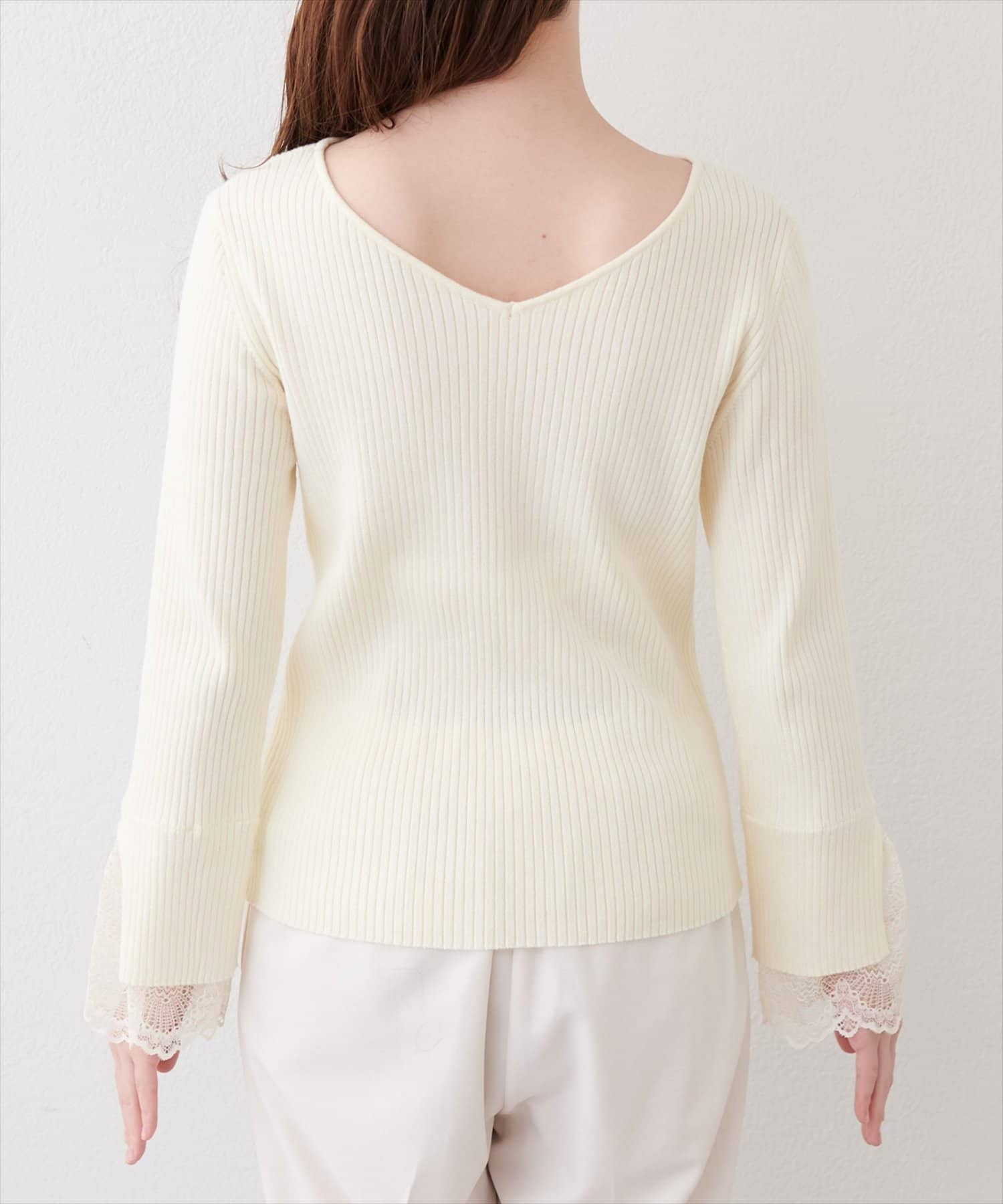 前後2WAY袖口レースリブニット