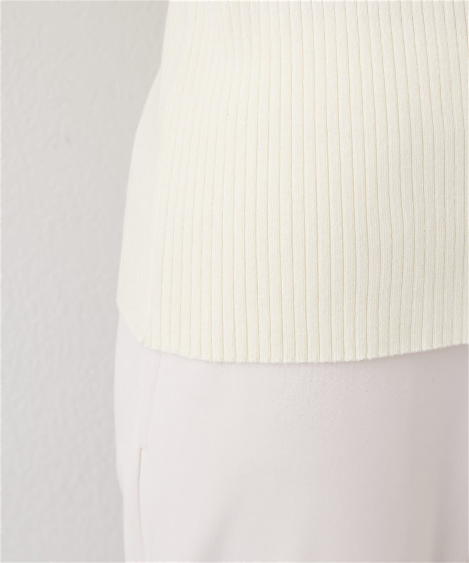 12Gで編みあげたリブニットはウエストインをして着用したときも