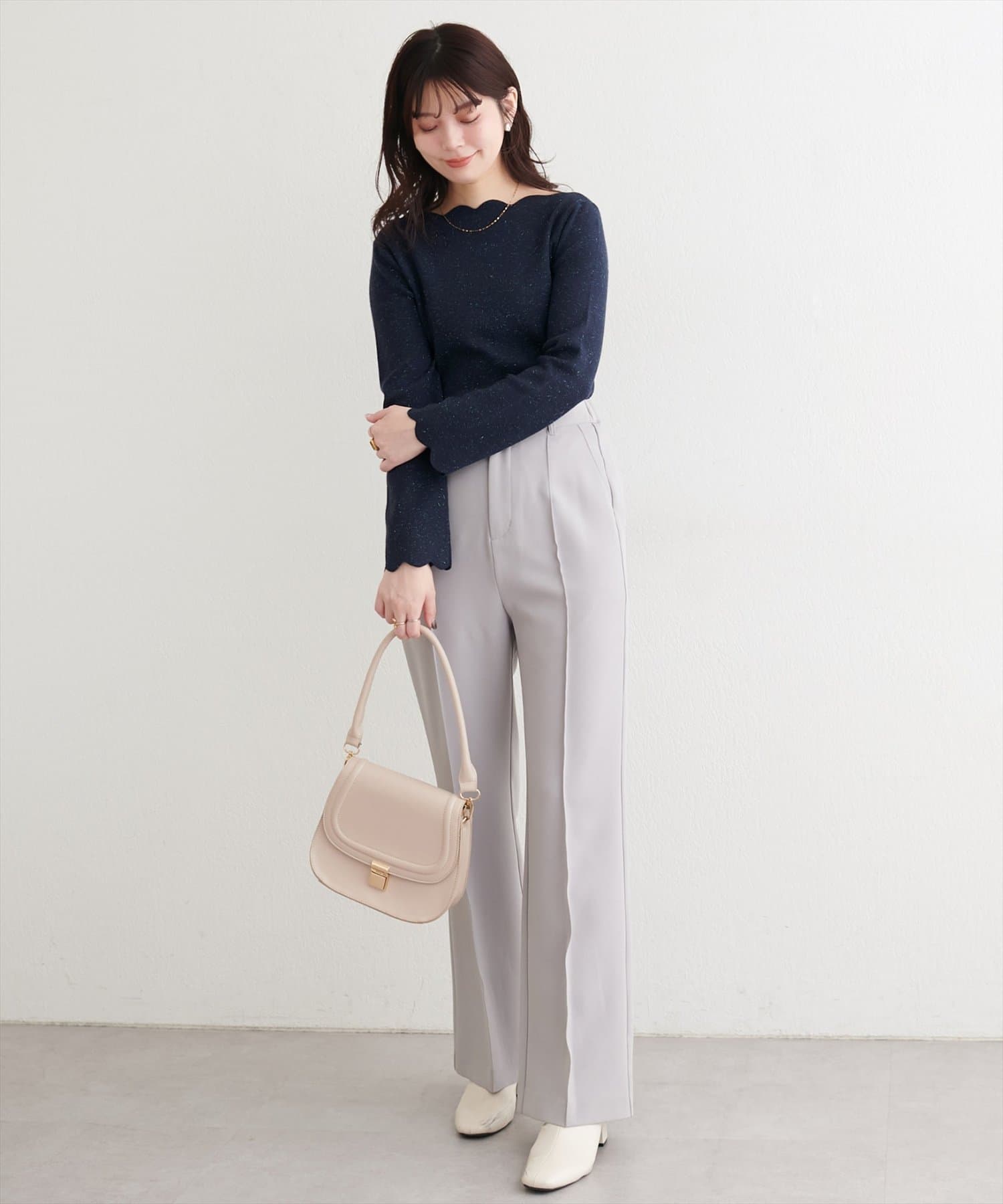 スカラップの柔らかな曲線が、女性らしい優しさをプラスします。