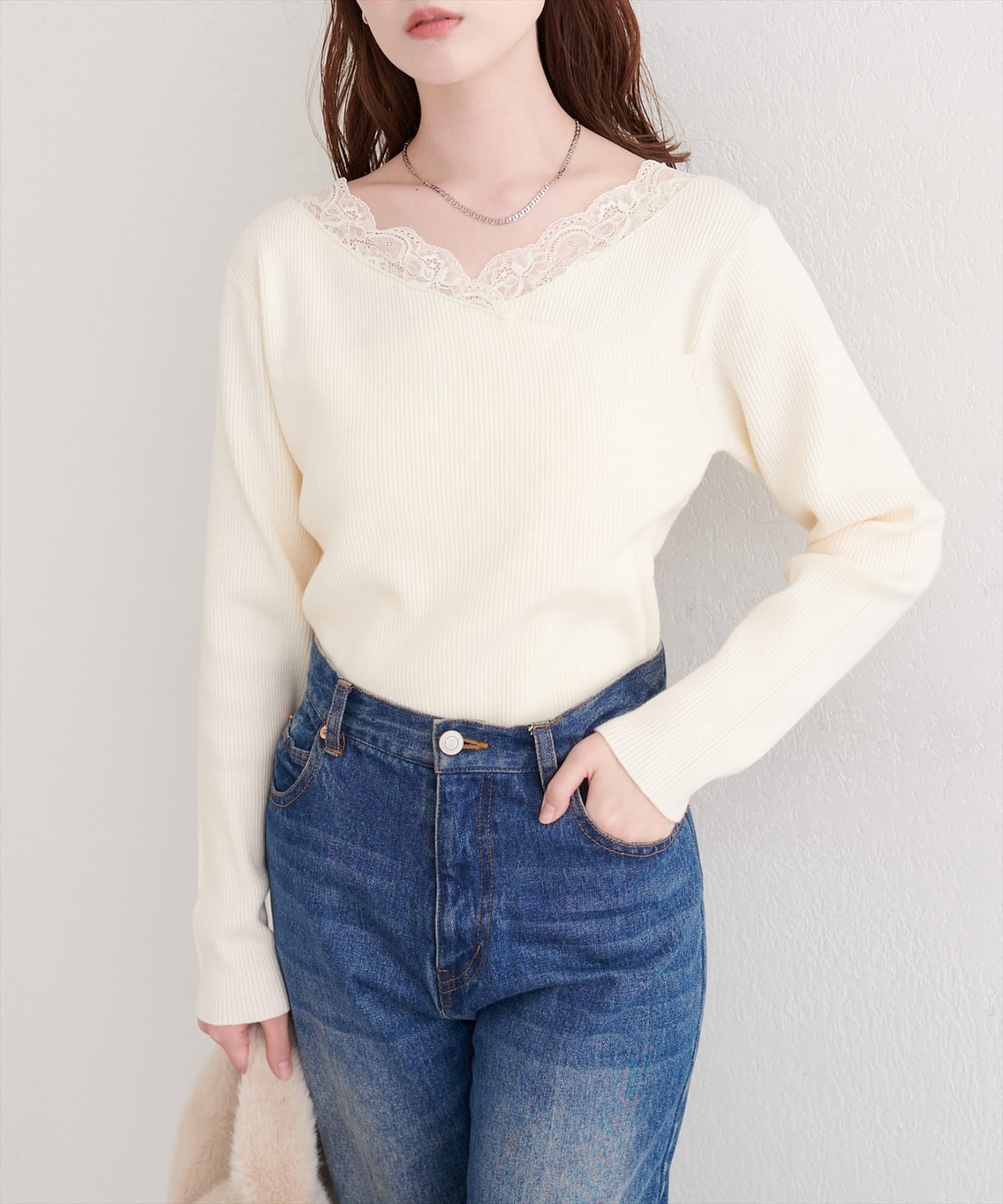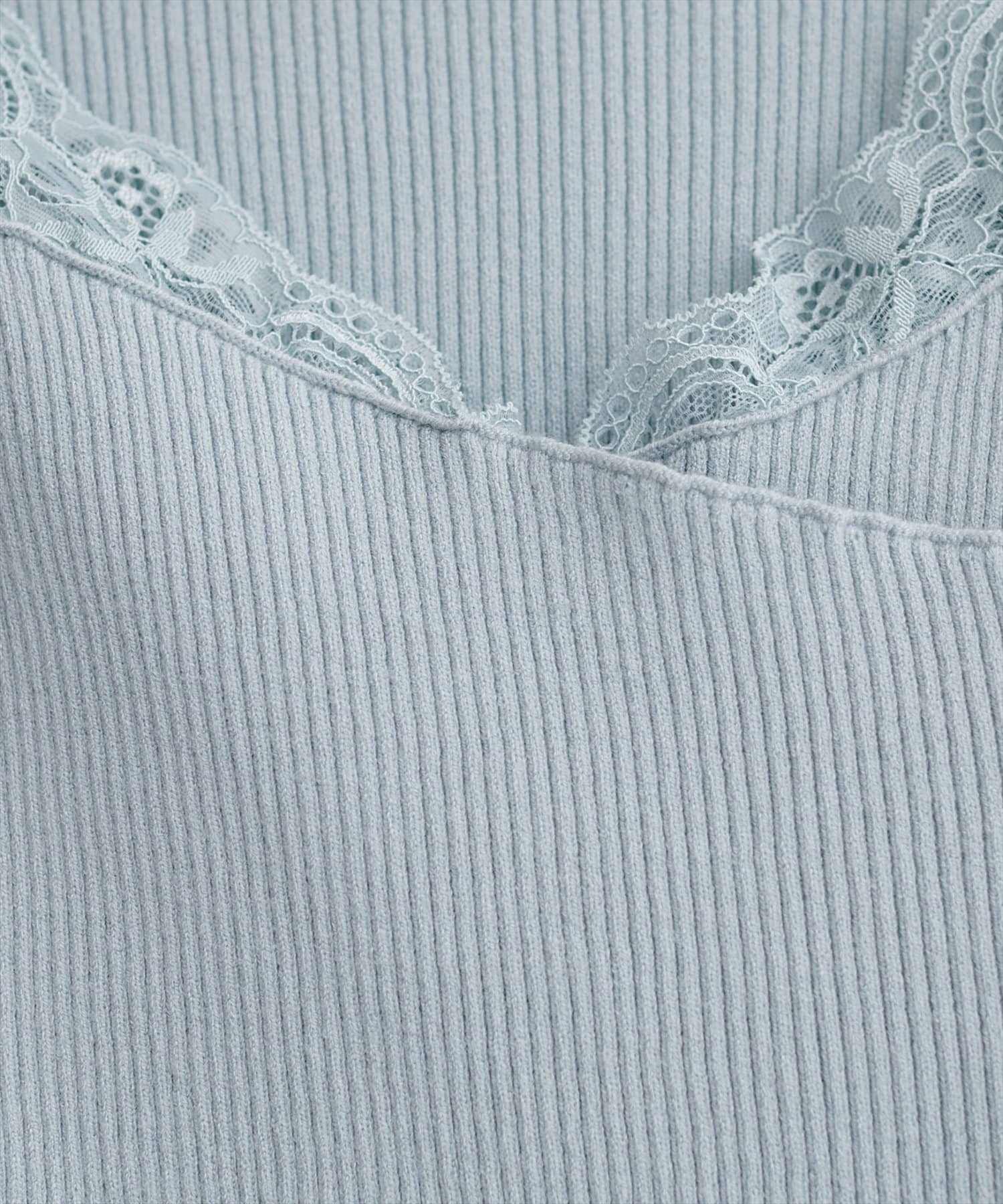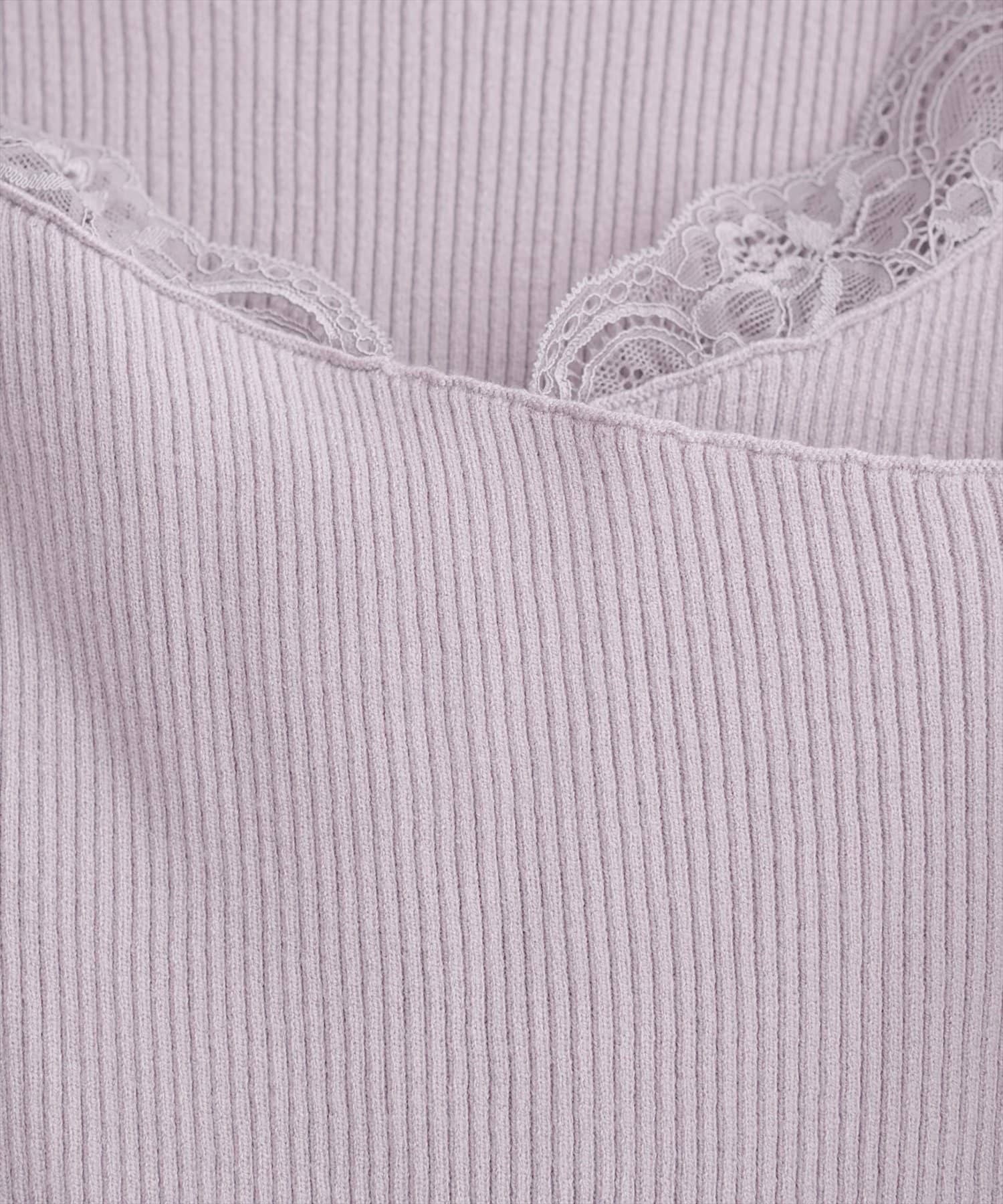 アシメレースネックリブニットプルオーバー