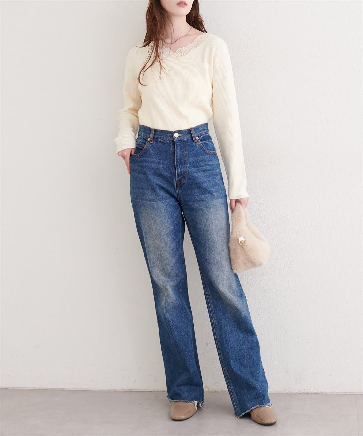 普段使いには、デニムやワイドパンツと合わせてカジュアルに着こなすのがおすすめです。