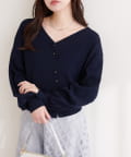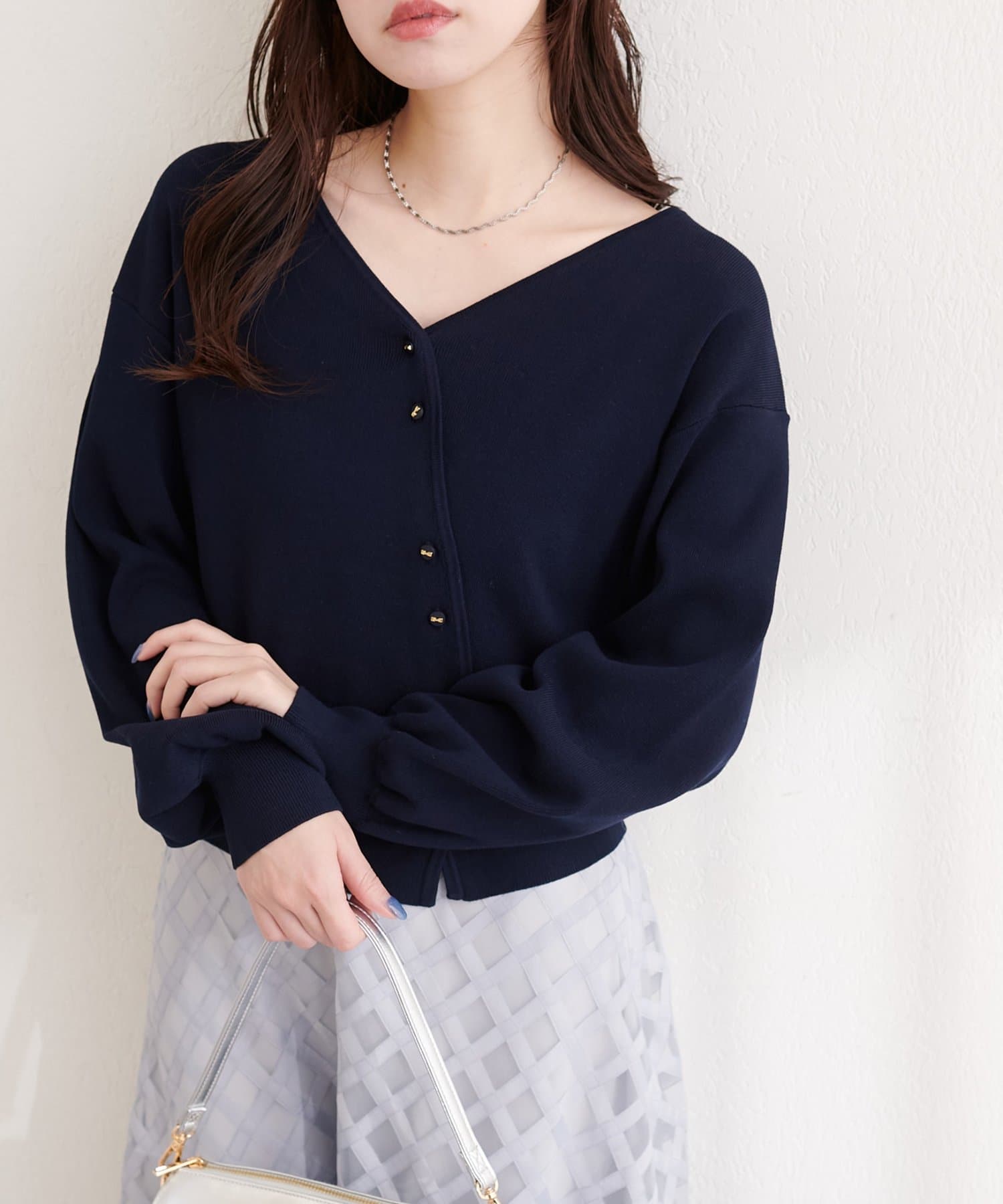 フロントにあしらわれたアシンメトリーなボタンデザインがポイントのカーディガン。
