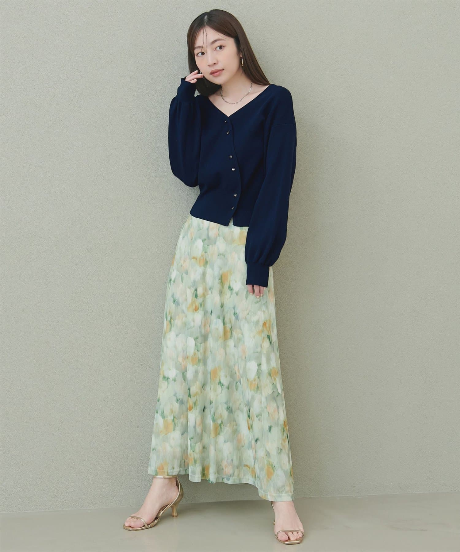 袖は、ふんわりとしたボリュームスリーブで手首を華奢に見せつつ、気になる二の腕をカバーしてくれるのも嬉しいポイント。