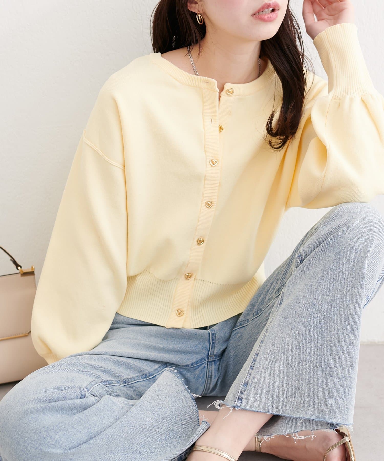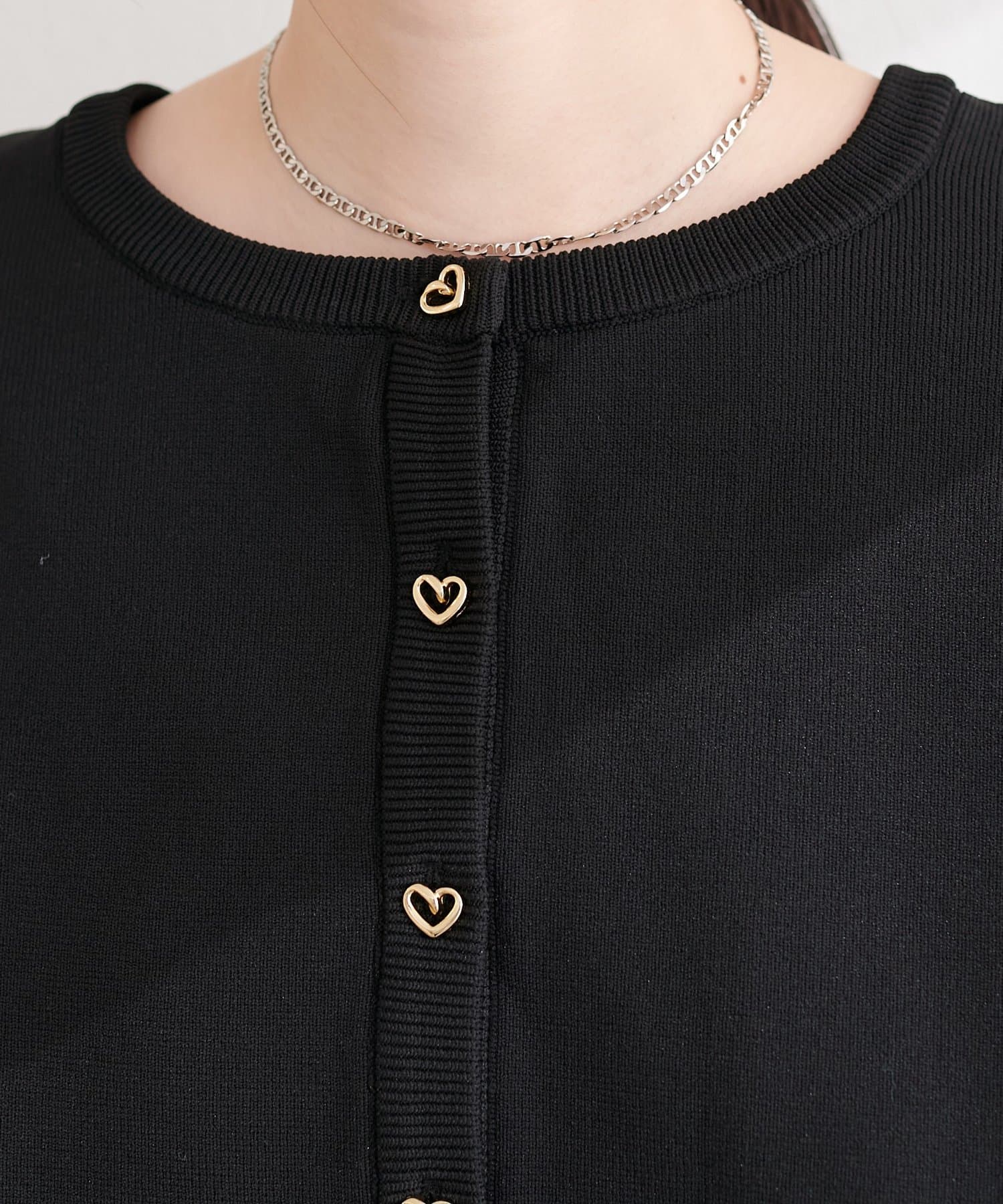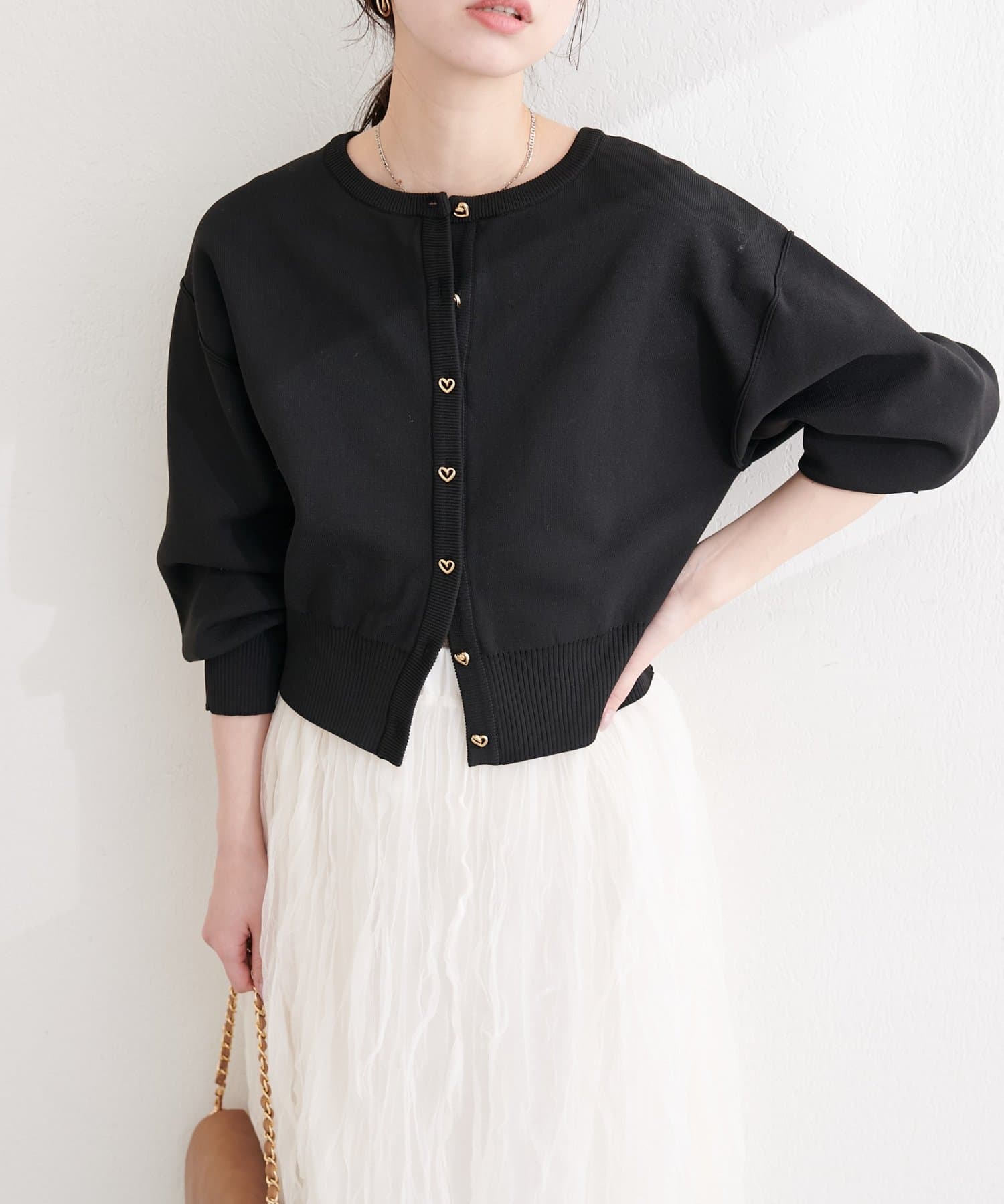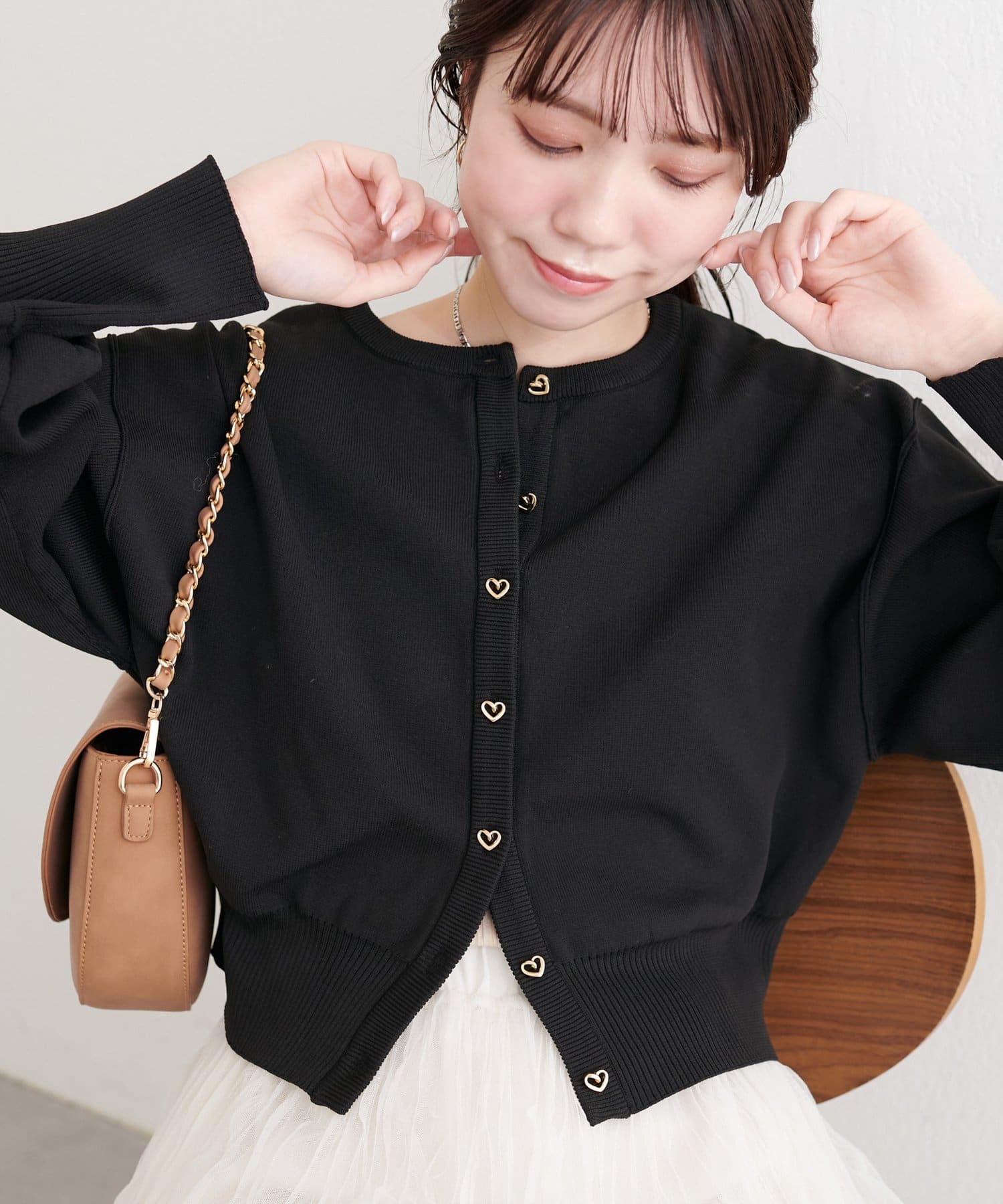 フロントに並んだちびハートのボタンが愛らしいカーディガン。