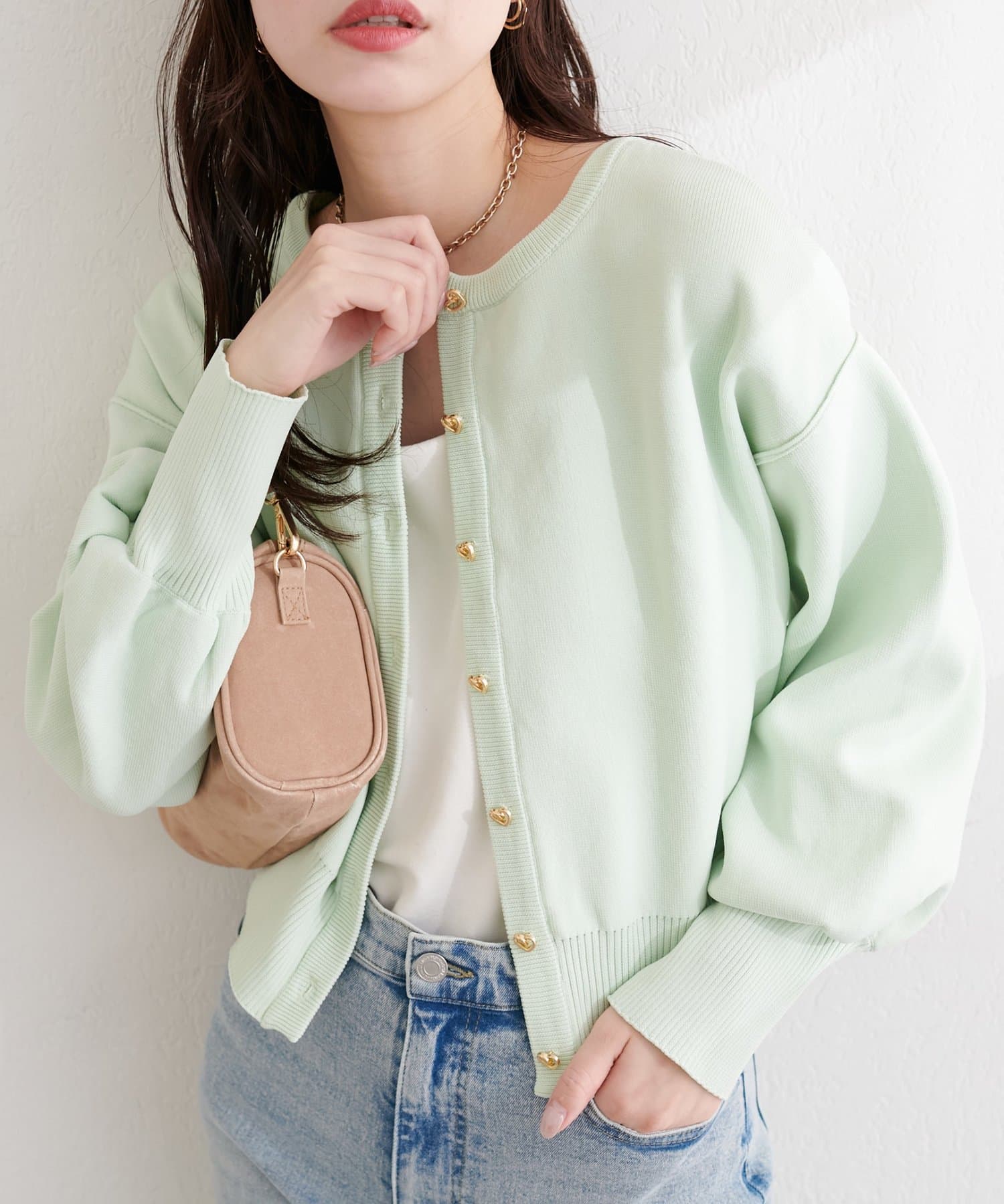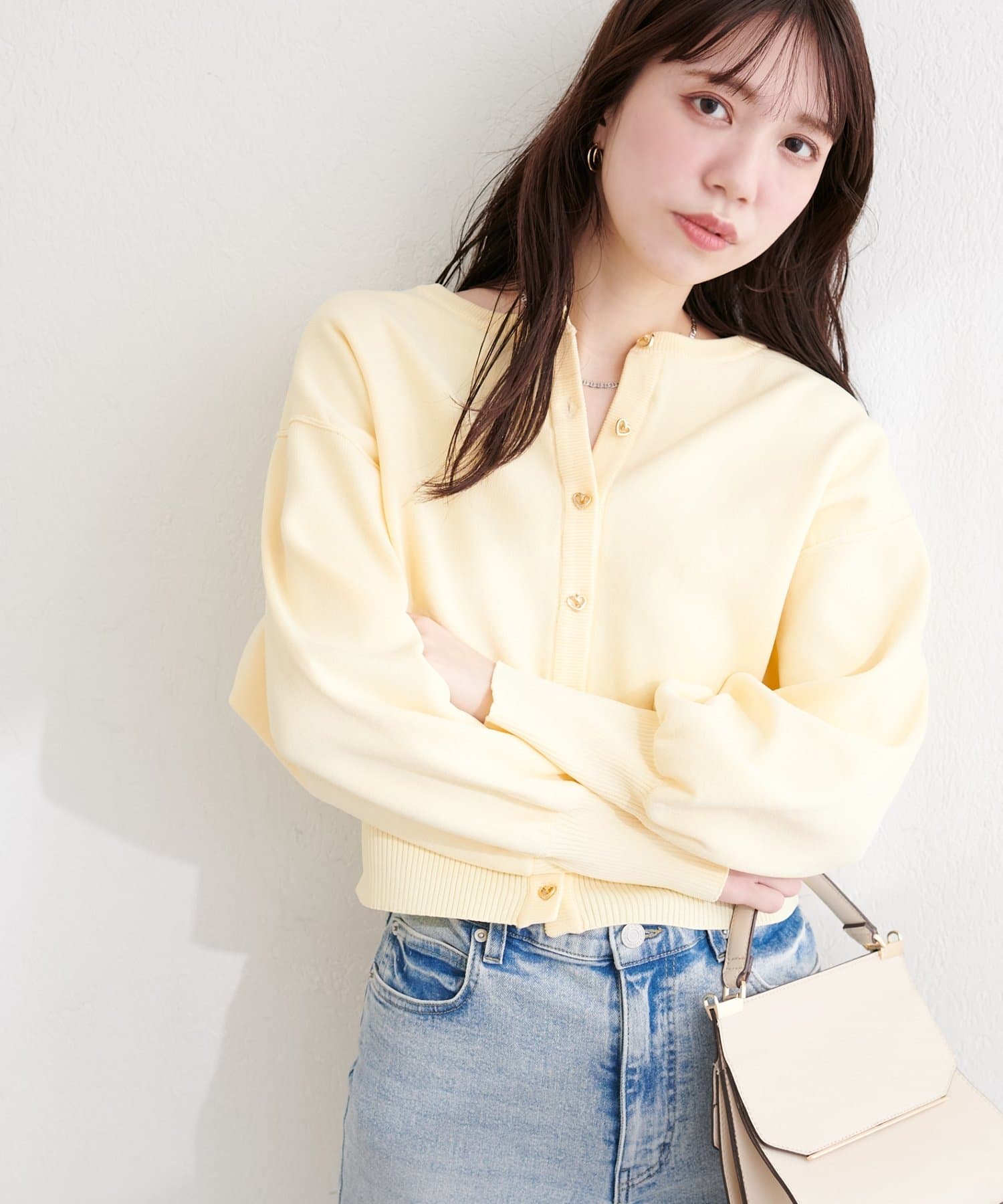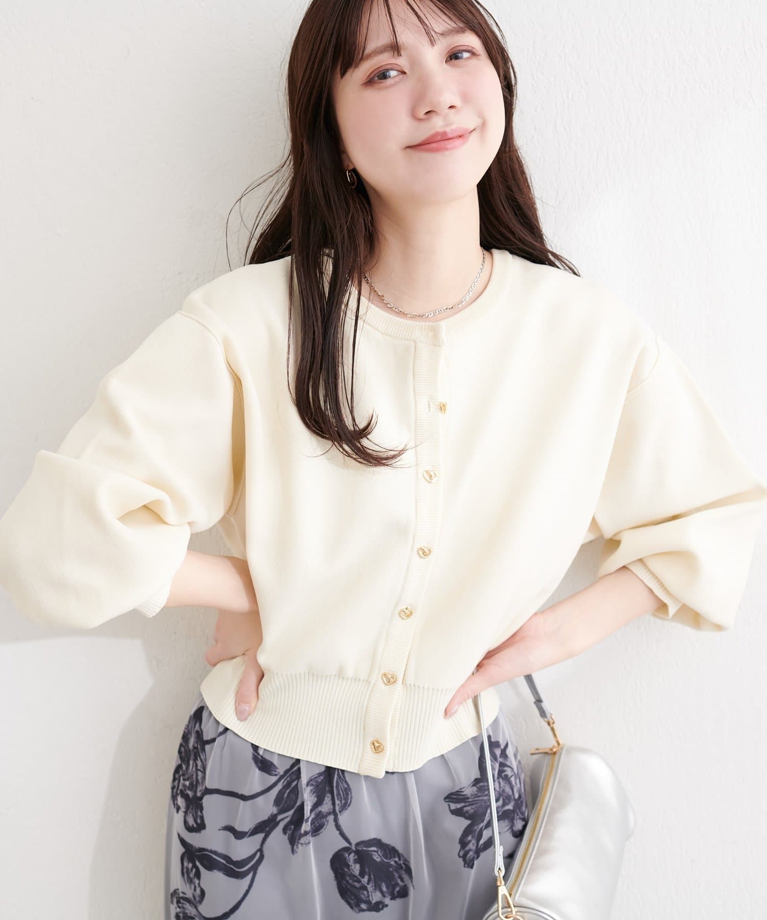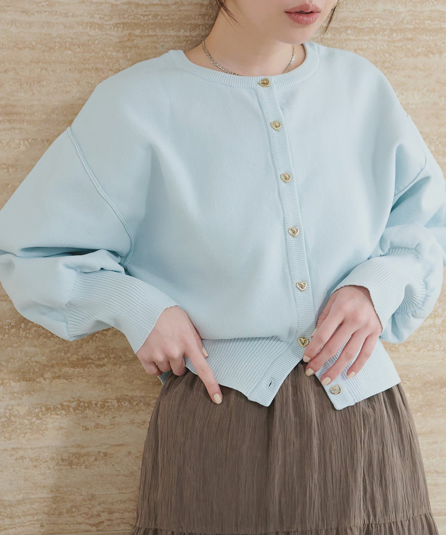 フロントに並んだちびハートのボタンが愛らしいカーディガン。